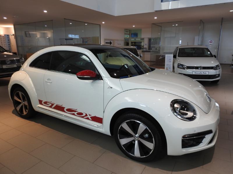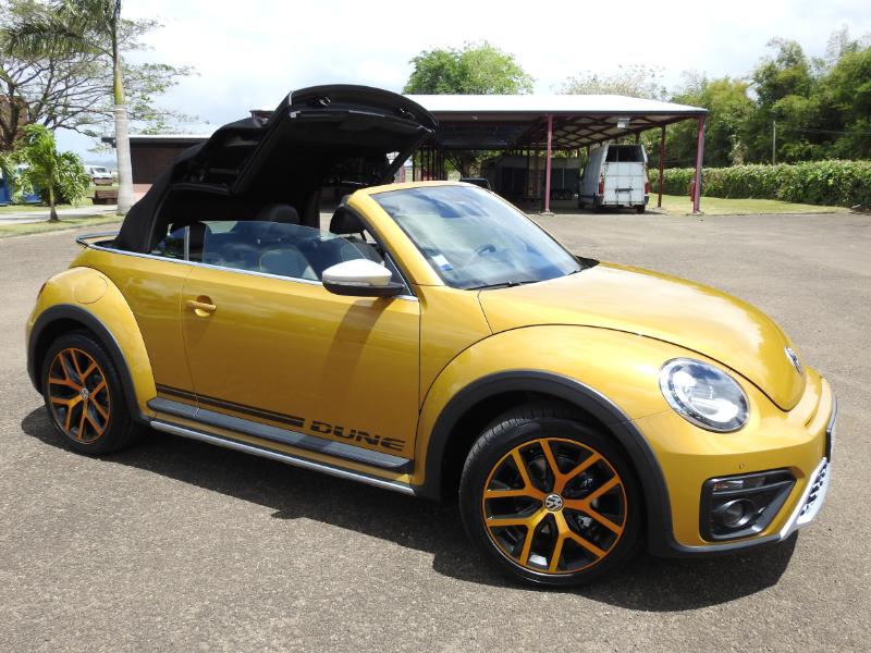 Prise en main ce matin chez Volkswagen Martinique, entre les gouttes, de la nouvelle Coccinelle 'Cox' en version 'Dune' et qui, par son look imaginatif, transcende la personnalisation automobile... Véritable cabriolet confortable au quotidien, son atout principal est la balade cheveux aux vents et sa popularité depuis quelques décennies. Son look populaire et exclusif pour cette version 'Dune' est un plus indéniable. Le charme de la Beetle inte...