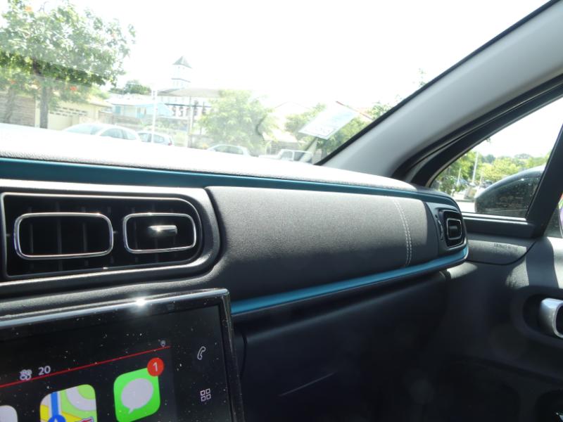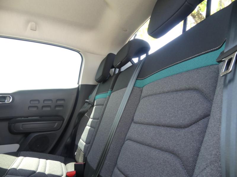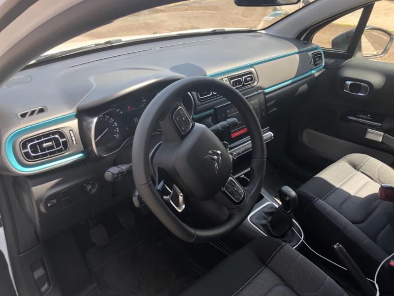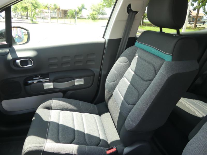 Citroën joue sur ce qui fait la réputation de ses modèles et donc aussi sur de nouvelles possibilités de personnalisation (97 combinaisons désormais !), deux nouveaux coloris (Spring Blue et Rouge Elixir) et deux jeux de jantes inédits comme je vous l’écrivais. Ensuite, cette nouvelle C3 accueille plusieurs décors intérieurs, dont un placage ton bois clair sur la planche de bord. Mais c’est surtout le système « Advanced Comfort » qui fait la différence, issu des C4 Cactus et C5 Aircross. Comprenant des sièges plus moelleux qui passent de 5 à 15 mm d’aipaisseur mais aussi un maintien latéral renforcé (mais pas la suspension à butées hydrauliques), il peut se compléter par un accoudoir central en option. Une inédite aide au stationnement avant complète le tout.