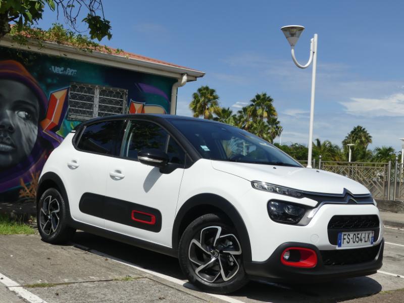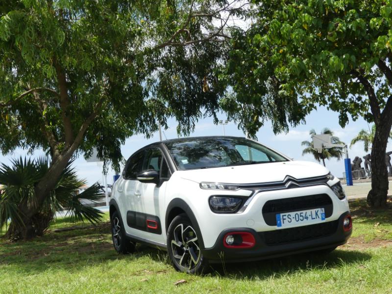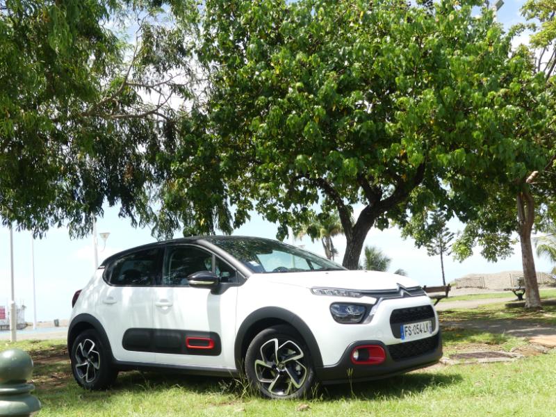 Retour chez Sodiva Citroën après la conférence de presse que nous vous avons proposé mardi dernier à l’occasion du 5ème rallye Ho Hio Hen avec l’ASA TROPIC que vous pouvez retrouver ici… Après la très belle réussite de la nouvelle C3 près de 750.000 exemplaires ont été écoulés depuis le lancement de la troisième génération à l’automne 2016 et elle figure à la quatrième place des ventes dans l’Hexagone au premier semestre 2020, selon les chiffres publiés par le CCFA (Comité des constructeurs français d’automobiles). La voici re-liftée à la fois pour continuer son chemin stylistique et collé aux nouvelles tendances du segment pour également aller grappiller des parts de marché à la 208 et autre Clio, les deux citadines qui lui contestent encore le haut du podium… Départ de chez Citroën Martinique…