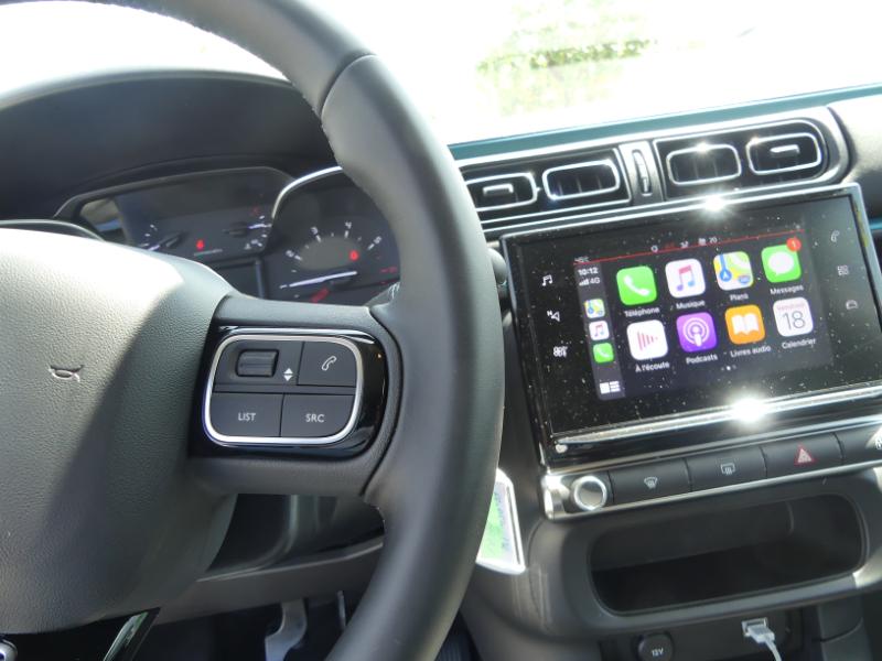 La gamme des moteurs est inchangée sur la nouvelle C3. Un seul diesel (BlueHDi 100) reste au catalogue pour les gros rouleurs et les sociétés. En essence, l’entrée de gamme est assurée par le PureTech 82ch (Notre essai...). Pour une vraie polyvalence, le PureTech 110 me semble encore plus adapté à notre île. Il est disponible avec la boîte de vitesses mécanique passée à six rapports, notre essai, (Une nouveauté de plus…), ou la boîte automatique EAT6. Ce trois cylindres 1.2 turbo est bien connu sur les modèles PSA. Il apporte de la souplesse à la C3, surtout quand il est en liaison avec la boîte EAT6 qui change ses rapports avec douceur et à-propos.