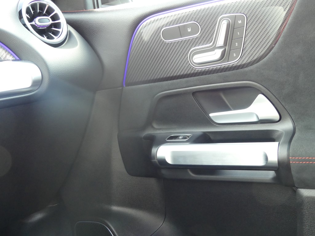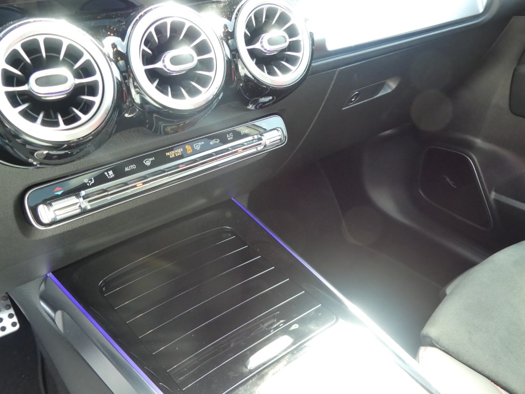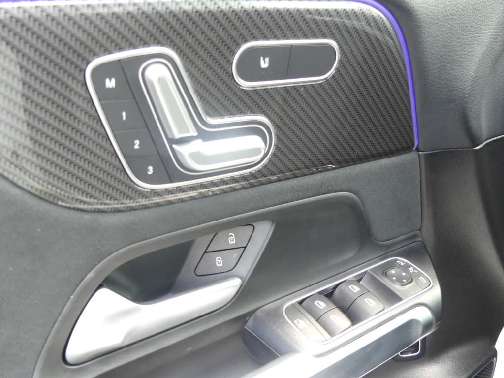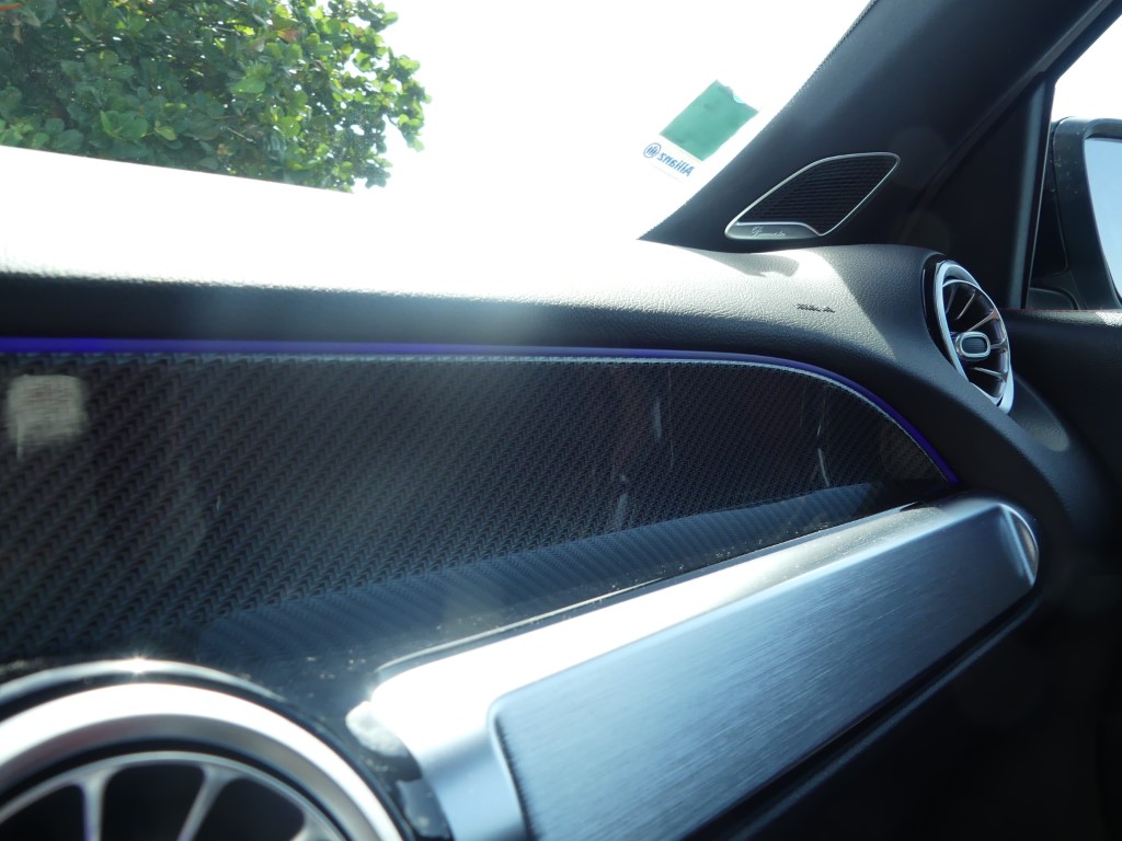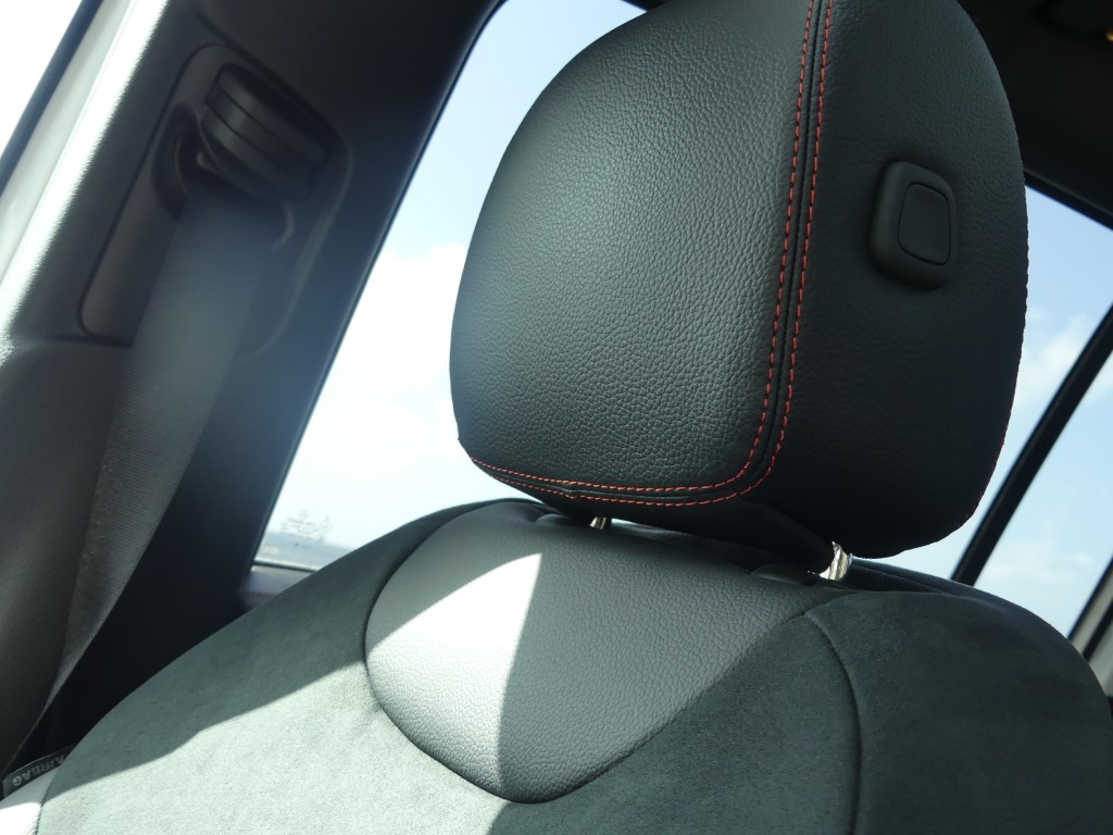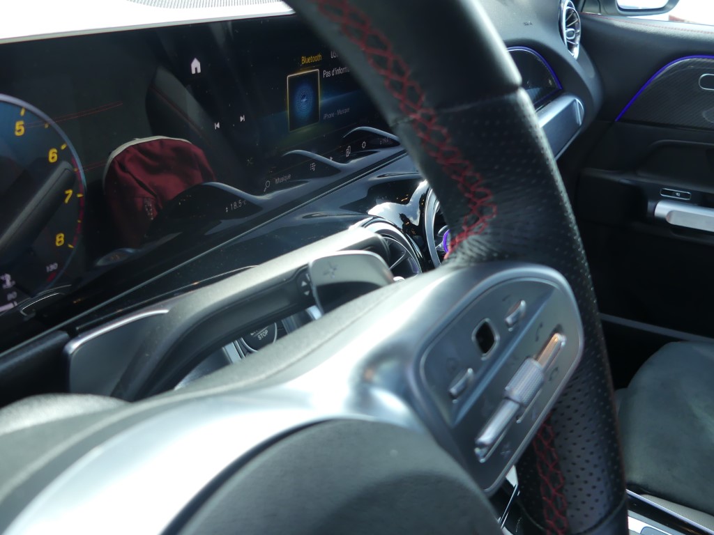 Avec l’AMG Line, le GLB est équipé du plus haut niveau de finition. On a ainsi droit à des placages en aluminium mais aussi en carbone. Les sièges en cuir et Alcantara apportent assurément de la sportivité à cet habitacle tout comme le volant badgé AMG. Mais le point le plus important de ce GLB se trouve à l’arrière. En effet, on y trouve deux places supplémentaires en option. Grâce à une banquette fractionnable 60/40 et coulissante sur 14 cm, on accède étroitement aux places arrières. Rassurez-vous, une personne de taille moyenne pourra s’y glisser après quelques contorsions. Mais ne nous le cachons pas, les enfants prendront un malin plaisir à s’y rendre. Notez que même si nous le classons parmi les compacts, le GLB fait tout de même pour rappel 4,63 mètres de long, ce qui n’est pas rien. Pour vous donner une référence, c’est à peine plus court qu’un Mercedes GLC. Mais c’est cette longueur, et l’empattement de 2,83 mètres, qui permet de dégager un habitacle qui nous a surpris par sa générosité. Il y a d’abord la hauteur générale du véhicule, qui donne une ambiance aérée et lumineuse à bord. En configuration 5 places, l’espace aux jambes offert par la banquette arrière est très au-dessus de la moyenne...