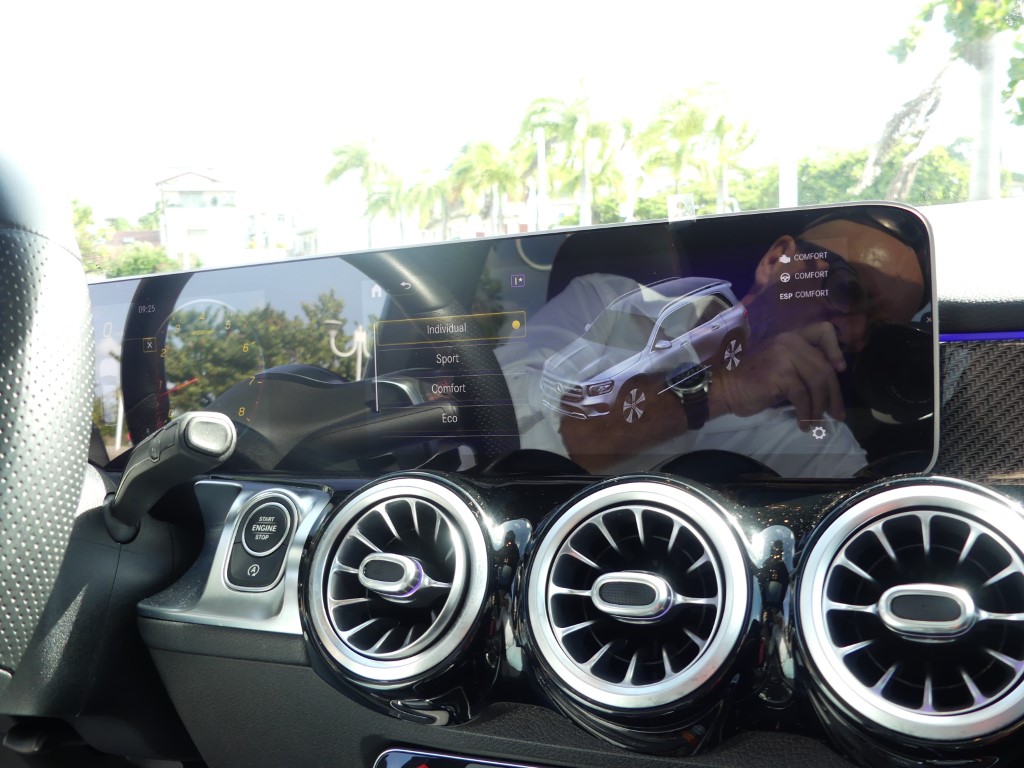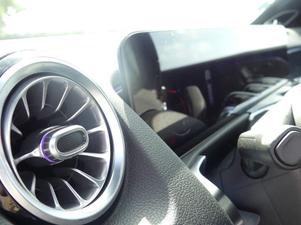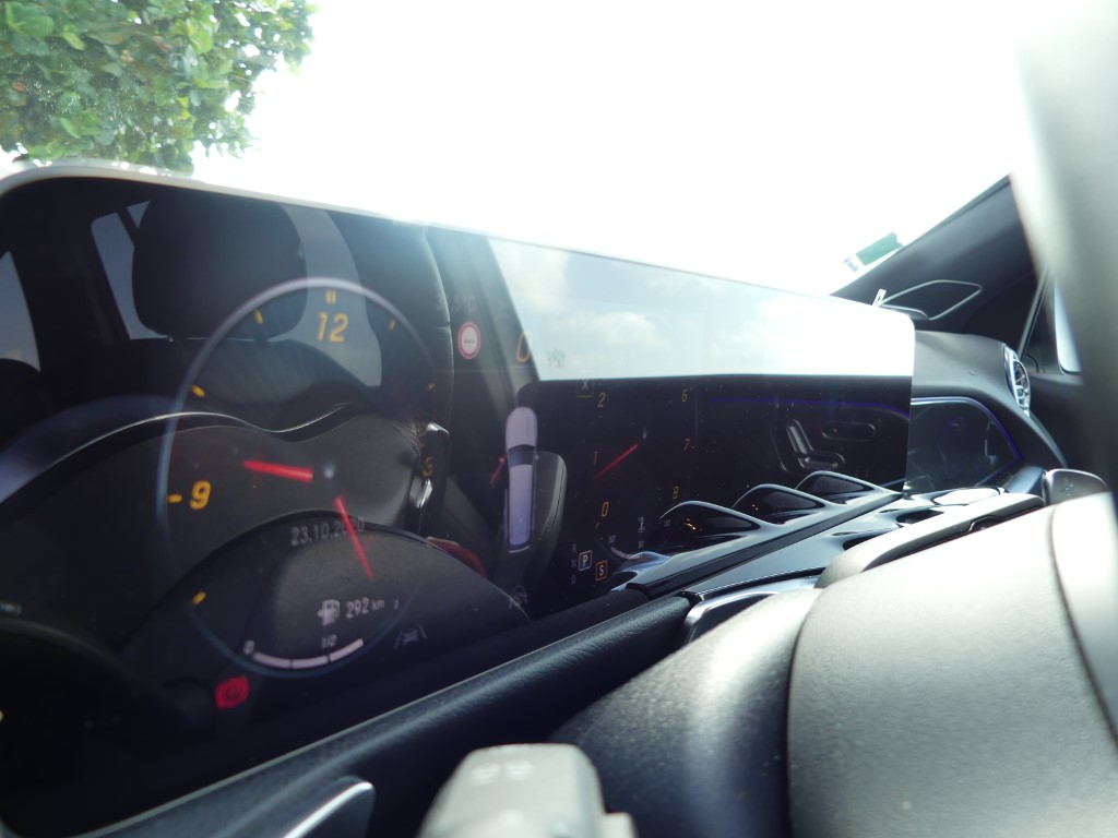 Comme pour tous nos derniers essais Mercedes, vous ne serez pas dépaysés. A bord, on est bien en terre connue. On retrouve la même présentation que sur le GLA, (Notre essai ici…), et rappelant la Classe A. La fameuse dalle numérique qui se compose de deux parties, une pour le conducteur et l’autre pour l’info-divertissement MBUX. Seul l’écran de droite est tactile et suffisamment fluide pour le rendre intuitif. En même temps, le système utilisé est probablement l’un des meilleurs sur le marché actuel.
