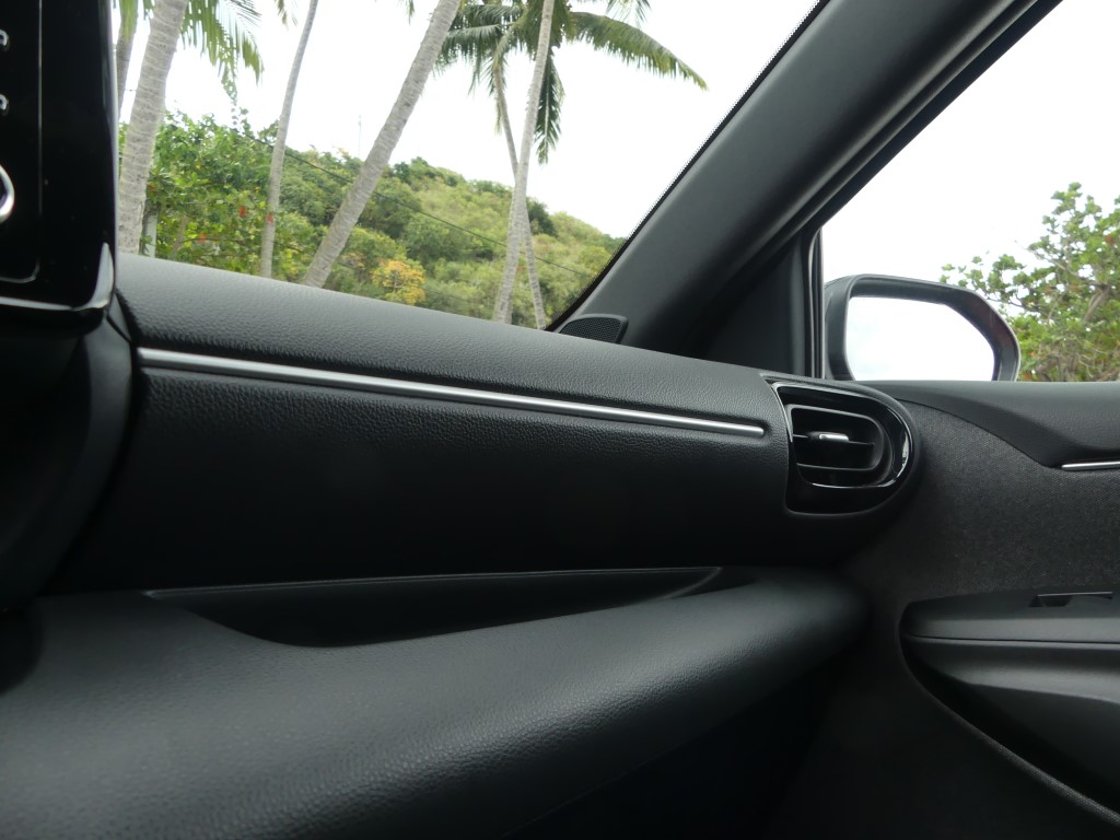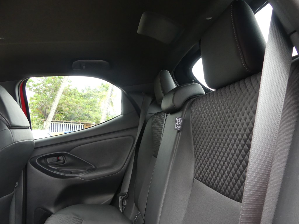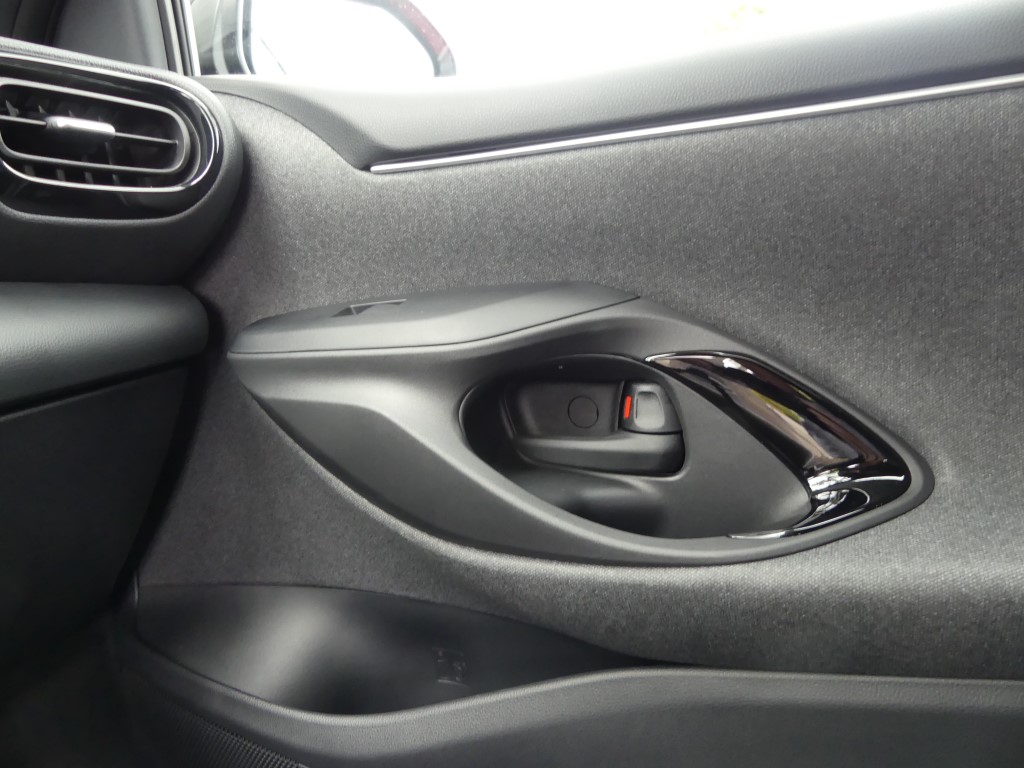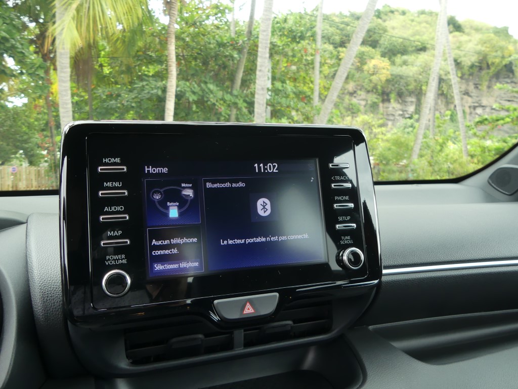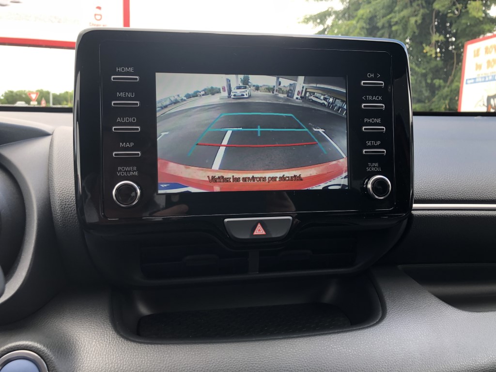 A bord, pas de surprise. On retrouve la Yaris que nous connaissions. Avec l'écran du GPS un peu tourné sur la droite favorisant l’accès au passager avant, l'habitabilité est toujours aussi bonne c’est une de ses forces. Pas trop large et un peu haute, la Yaris accueille facilement 4 adultes, et par rapport à une Clio ou d'autres modèles récents, cette auto jouit d'une visibilité arrière plus que correcte. Toutes les commandes sont bien accessibles, les cadrans bien lisibles, et la garniture de la portière permet le rangement d'une grande bouteille d'eau. Ce qui confirme les origines européennes de l'auto (Je rappelle que la Yaris est fabriquée en France, mais tout le monde doit le savoir, tant Toyota a communiqué sur ce sujet). Chose à souligner enfin, puisque ce choix devient rare, la Yaris est livrable en 3 ou 5 portes.