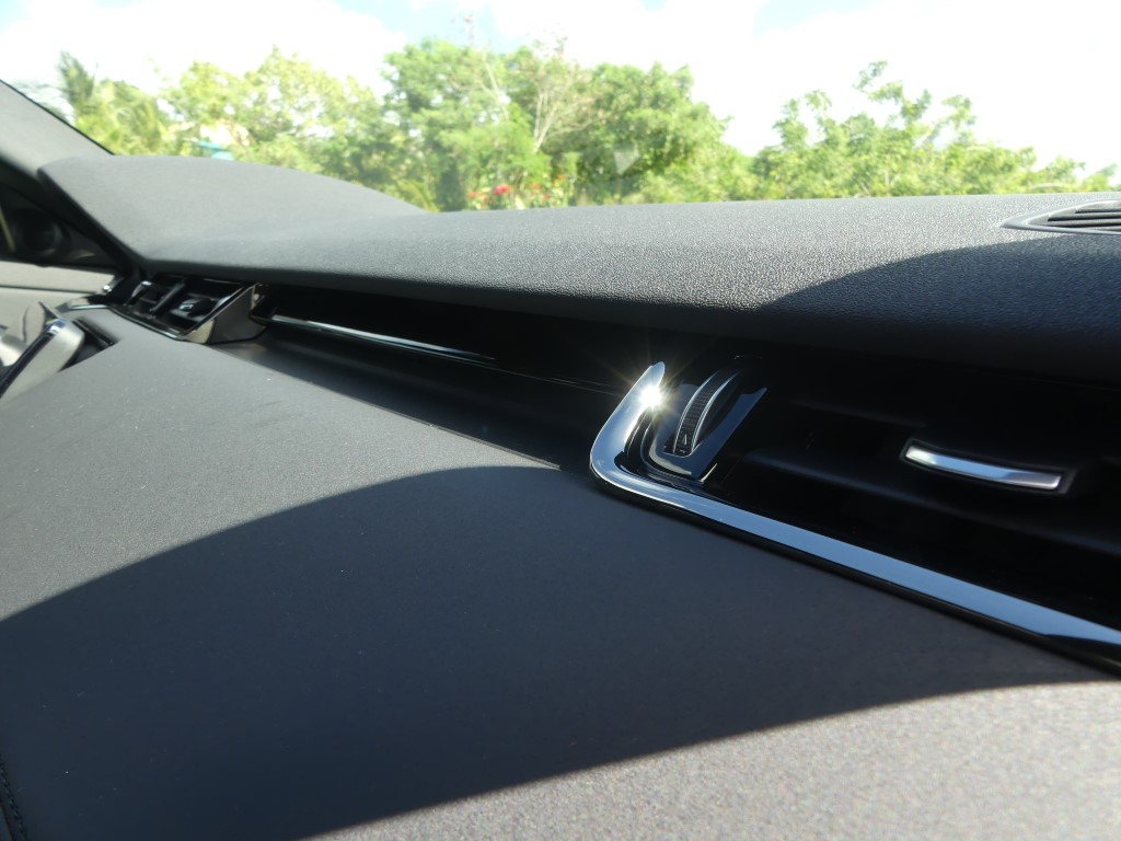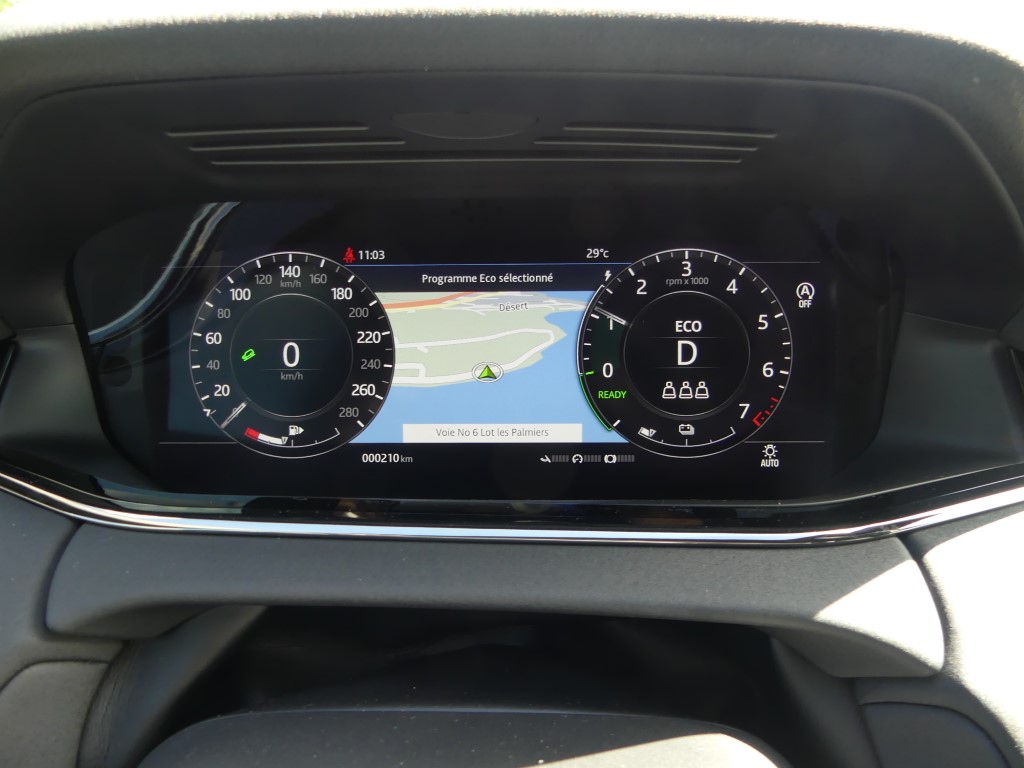 À l’intérieur, l’habitacle a clairement été influencée par le Velar, avec un tableau de bord digital de 12,3 pouces, l’option d’affichage tête haute et une paire d’écrans d’infodivertissement de 10 pouces (appelés Touch Pro Duo) sur les versions haut de gamme. Le résultat final est une voiture qui a sensiblement moins de boutons physiques qu’auparavant – une réflexion, dit McGovern, sur la façon dont l’approche réductionniste du style extérieur peut être transférée dans l’environnement du passager sans nuire à sa convivialité. La configuration de l’infotrainment établi de nouvelles normes pour Jaguar Land Rover – et pas seulement parce qu’Android Auto et Apple CarPlay sont tous deux disponibles. Le système comporte des paramètres intelligents, qui utilisent des technologies d’intelligence artificielle pour surveiller les préférences du conducteur et pour apprendre les positions assises, les choix de musique et les configurations de contrôle de la température préférés.
