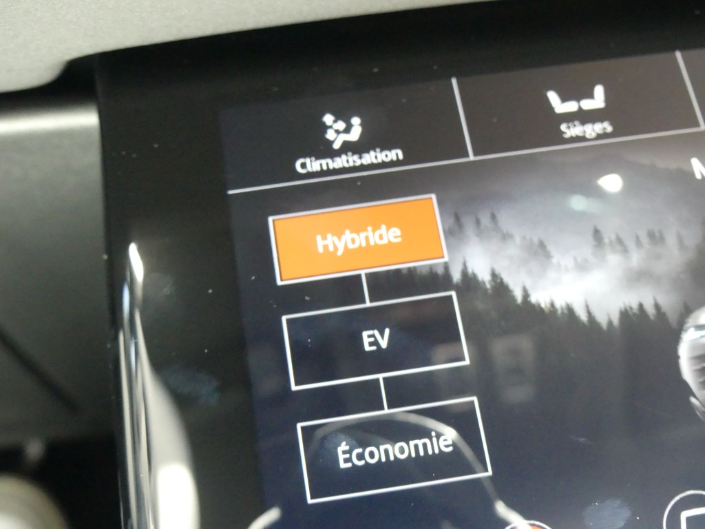 1. mode  HYBRIDE (mode par défaut) – la voiture combine automatiquement l’action du moteur électrique et celle du moteur essence. Le réglage s’opère en fonction des conditions de circulation et du niveau de charge de la batterie. Programmer une destination sur le système de navigation permet au Predictive Energy Optimisation (PEO) d’utiliser les informations GPS pour optimiser l’efficacité et le confort du trajet prévu.