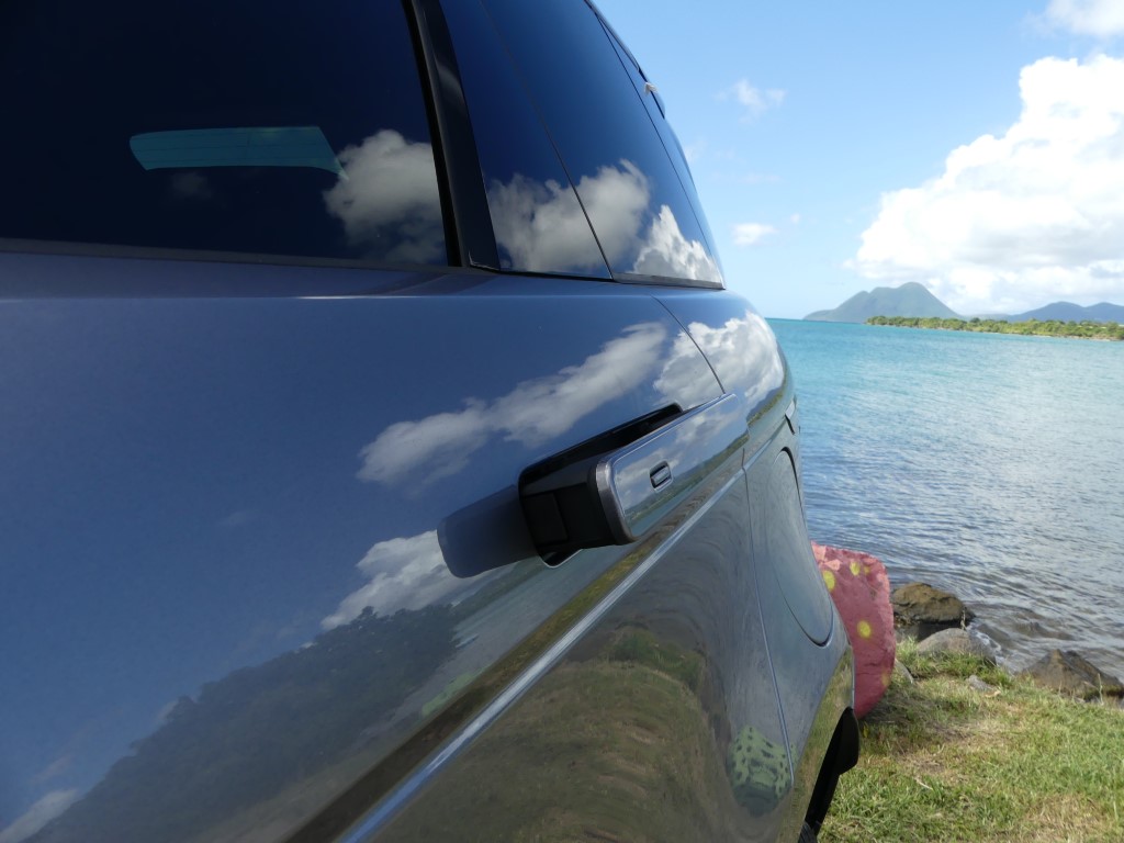 Concrètement, quand on tourne autour de ce nouveau SUV seconde génération on s’aperçoit que tout a bien été retravaillé. Les lignes sont adoucies et modernisées et l’ensemble se rapproche bien globalement d’un Velar ici en Vidéo. Subtilement, la montée en gamme se fait et ce nouvel Evoque gagne en qualité perçue et en modernité, en qualité d'insonorité, tout en conservant les caractéristiques stylistiques qui ont participé au succès de sa première génération comme par exemple le fameux toit flottant. Pour moi la lunette arrière est toujours aussi... rétréci, et de fait, vous ne voyez pas toujours les occupants des voitures qui vous suivent... Bon, un des rares défauts à mon goût du modèle qui plaît tant à nos infirmières et autres professions libérales sur notre île, mais pas que...