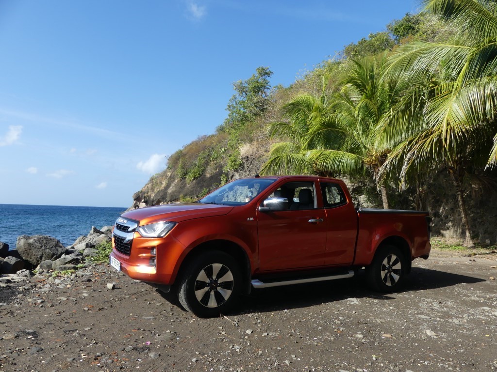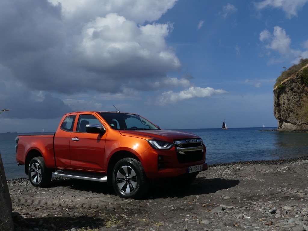 Il ne fait aucun doute que le nouveau D-Max 2021 d’Isuzu progresse fortement en tout-terrain par rapport à son prédécesseur…  Il s’adapte sur nos îles à des terrains parfois boueux aux devers scabreux et glissant de façon remarquable. Une grande partie de cette amélioration vient radicalement de l'ajout d'un différentiel arrière verrouillable (qui est proposé de série sur toute la gamme 4x4). Rappelons sa garde au sol de 240 mm son angle d'attaque 30,5°, son angle ventral 22,9° et son angle de fuite 24,2° ce qui le place comme un très bon de sa catégorie… Les maraîchers n’auront sûrement plus peur de rien en arpentant leurs terrains pentus du Morne-Vert au Gros-Morne… De plus il passe dans 800 mm d'eau sans soucis... Les gens du BTP, même en mode traction, devraient y trouver leur compte également… Quand à Monsieur ou Madame tout-le-monde après s’être épaté sois-même sur les capacités de franchissement du modèle pourront avec le D-Max pousser plus loin les aventures offroad ou les ballades caillouteuses jusqu’au point de rendez-vous pour une journée de Surf…