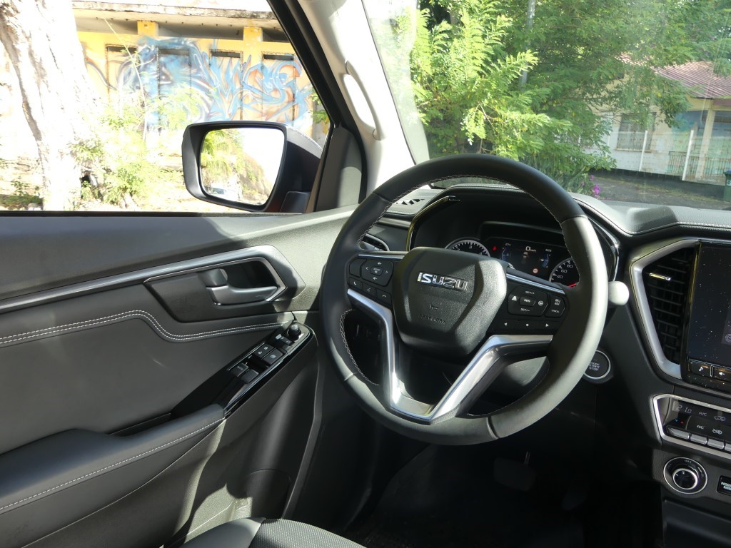 Un autre point intéressant est la direction, le D-Max dispose désormais d’une direction assistée électriquement. Le système hydraulique malgré sa fiabilité et sa résistance est remplacé par cette aide au pilotage électrique pour à la fois améliorer le confort du pilote en offroad mais aussi gagner largement en aisance de conduite sur notre rocade ou notre autoroute… Fini les bleus a la tête si vous crapahutez à travers des ornières et des trous. Et plus de pouces cassés non plus. Le D-Max assure grave il est surement le Pro des Pros, c’est notre avis…