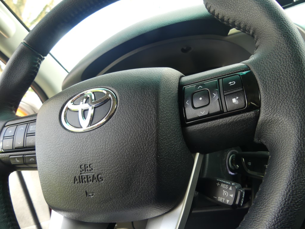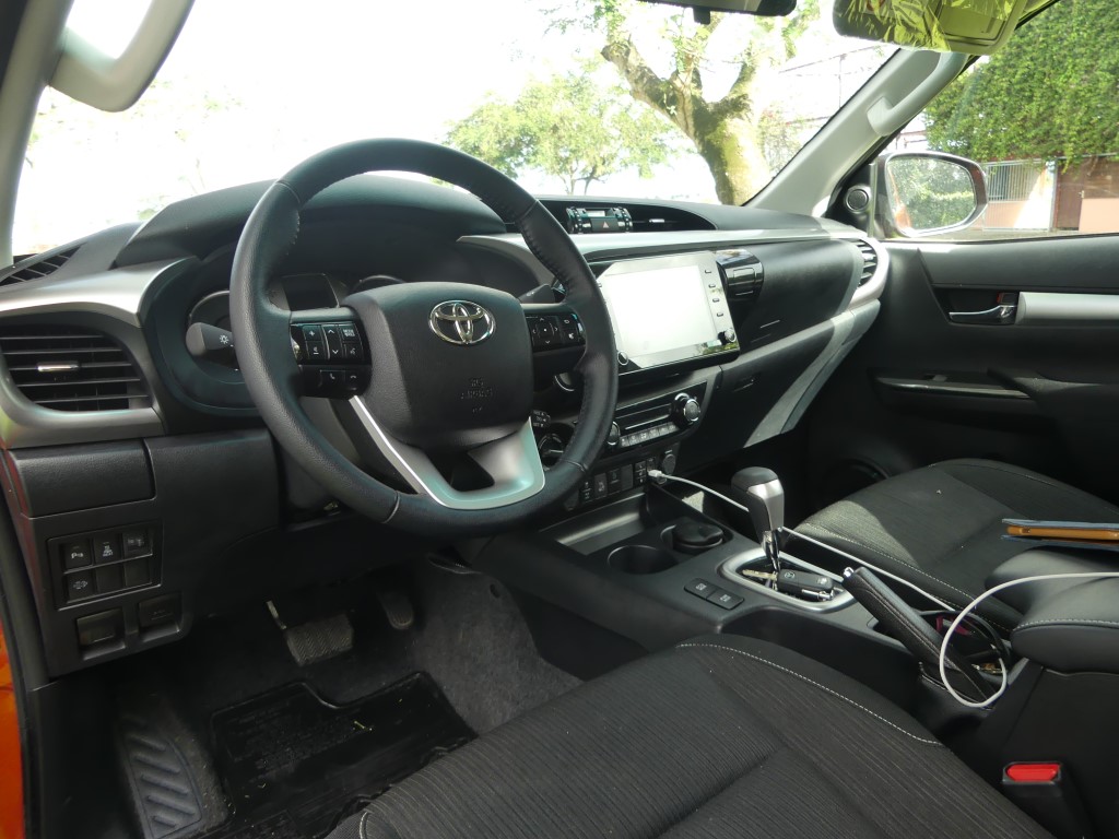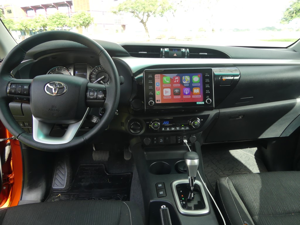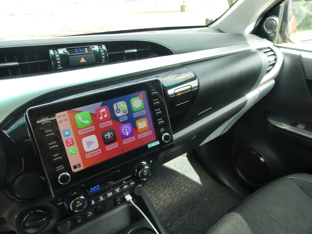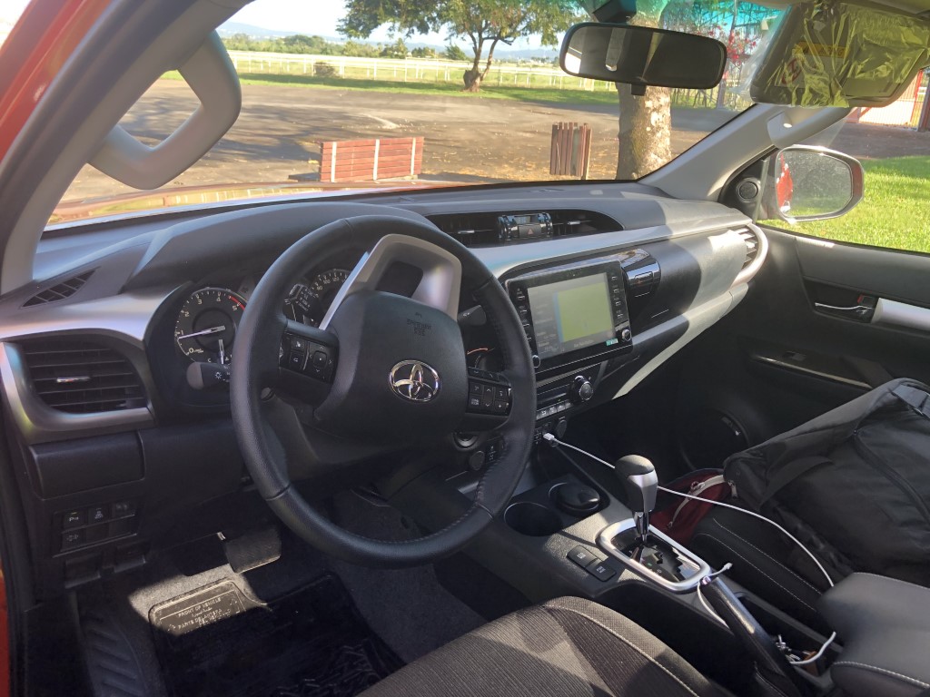 Côté aides à la conduite le Nouveau Hilux mise sur le confort et le confort de pilotage avec assurément : 7 airbags, l’extinction différé des feux, l’antidémarrage électronique, le blocage de différentiel AR, L’ABS, l’assistant de démarrage en côte, le contrôle de stabilité on l’a vu, le TSC ou le contrôle anti-louvoiement, le contrôle de motricité, le contrôle de motricité en descente, le contrôle de tangage et de rebond, l’assistance au freinage d’urgence, le régulateur de vitesse, les 3 modes de conduites Normal, Eco et Power une sorte de booster pour gagner en couple et puissance à l’instant… Sans oublier la caméra de recul… Qui dit mieux ?