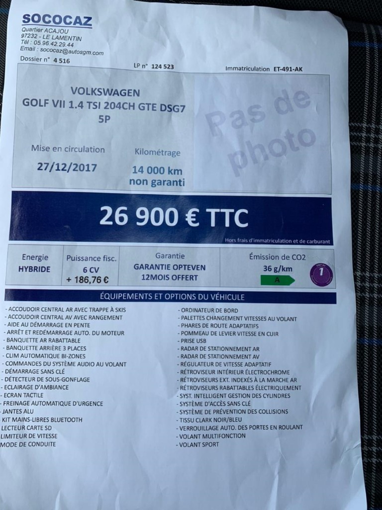 A SAISIR VW GOLF 7 1.4l TSI 204ch GTE DESG7