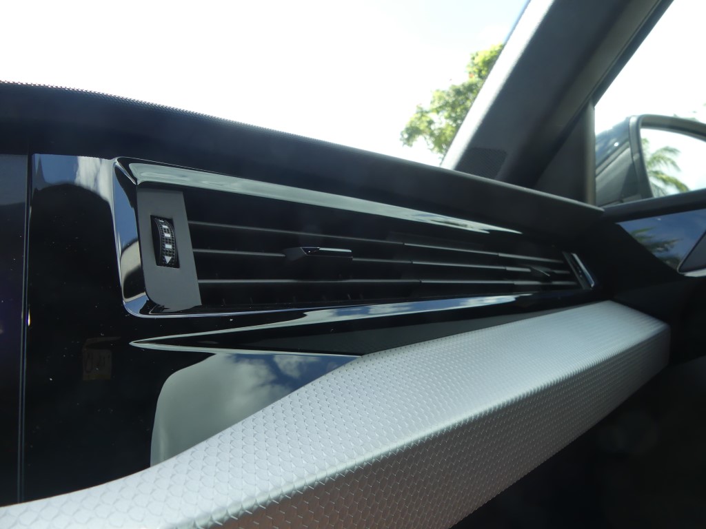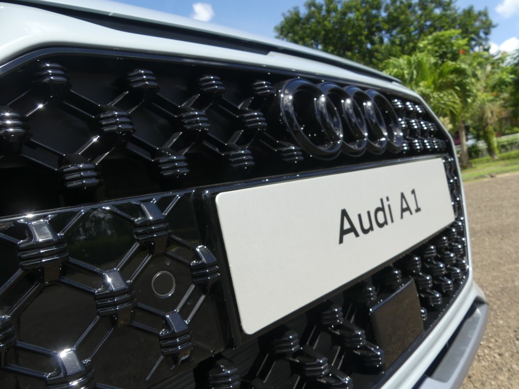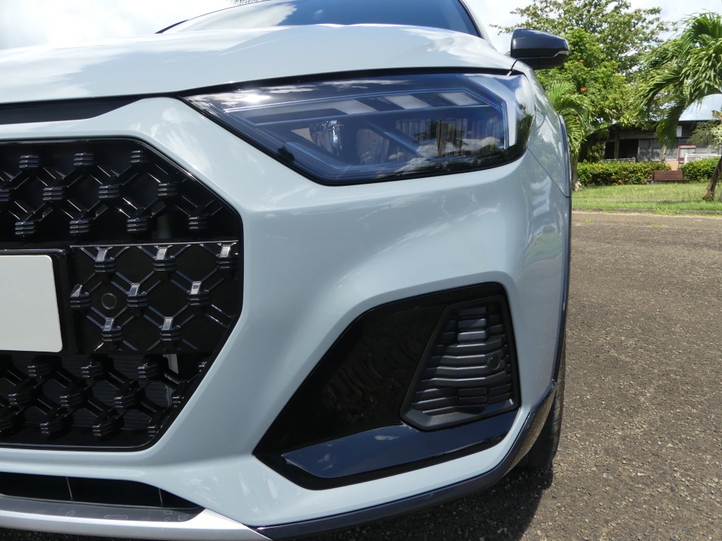 La prise d’air située entre la calandre (avec une grille au maillage spécifique) et le capot est séparée en deux partie, et non en trois comme sur l’A1 Sportback classique, et la citadine à l’allure champêtre dispose d’une protection avant façon aluminium satiné qui est essentiellement là pour le look. Les passages de roues sont habillés d’une protection noire brillante qui n’est pas sans nous rappeler celle que l’on trouve sur la nouvelle Peugeot 208.