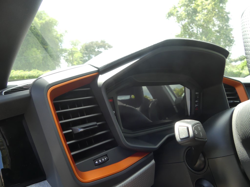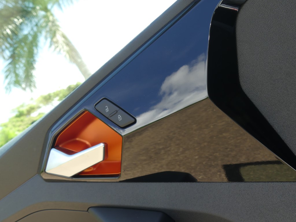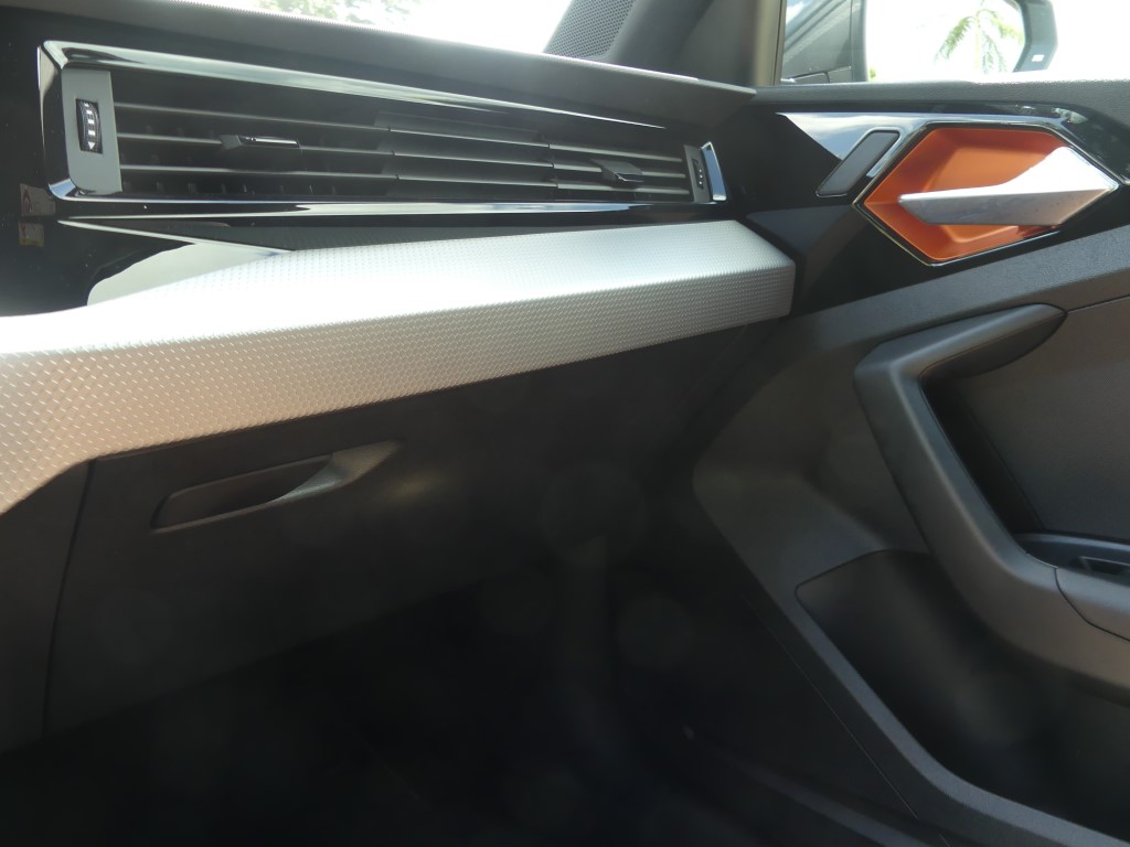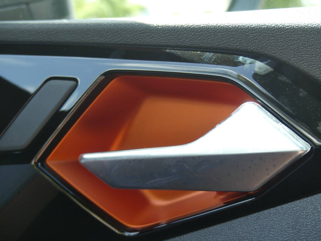 Vous trouviez l’A1 trop basse et trop citadine ? Audi vous a entendu et a sorti le modèle country voir offroad pour sa petite citadine. En Martinique c’est une vraie petite tendance : oui le marché est de plus en plus envahit par les SUV et autres crossovers dont la cote de popularité ne faiblit pas, aussi la marque allemande préférée des martiniquaises à jouée sur les bases de l’A1 pour en faire une baroudeuse des villes. Un peu de garde au sol surélevée par-ci (+ 40 mm), des boucliers différents par là et en un tour de passe-passe, voilà l’A1 devenue citycarver. Et pour être sincère, le coup de baguette des ingénieurs est plutôt réussi. La petite orange (4,05 m de long) a ce qu’il faut d’agressivité et de personnalité pour facilement sortir du lot, sans pour autant en faire trop et verser dans l’ostentatoire. Les sabots de protection en inox sur le bas des pare-chocs renforcent le côté off-road, bien que l’A1 ne soit pas du tout faite pour poser ses roues ailleurs que sur le bitume. C’est d’ailleurs dans son nom, citycarver, que l’on peut traduire grossièrement par « sculpteuse de ville ».