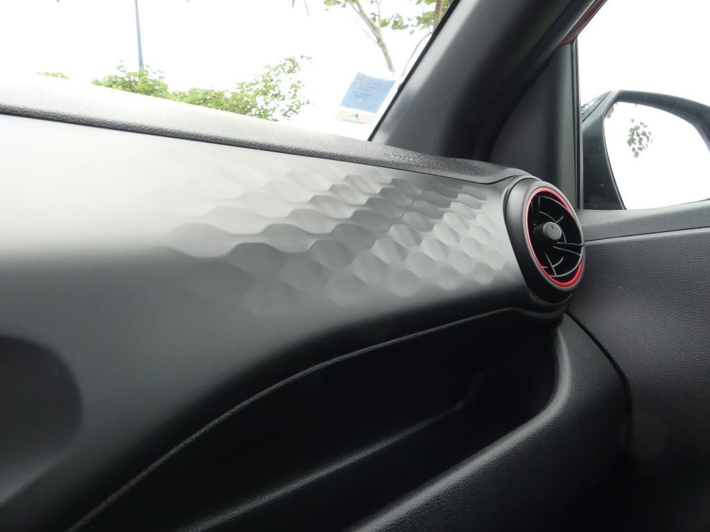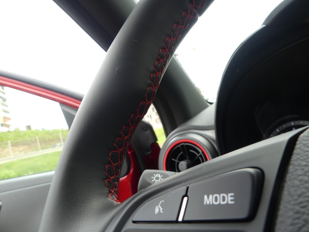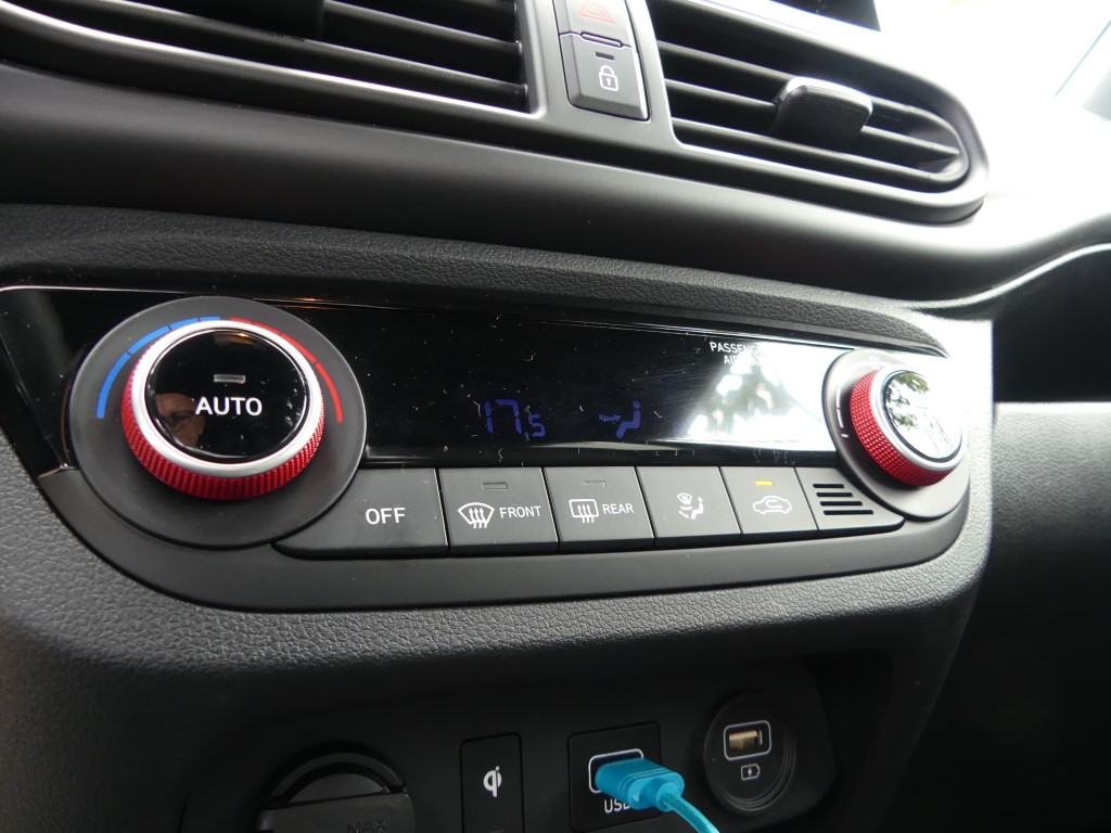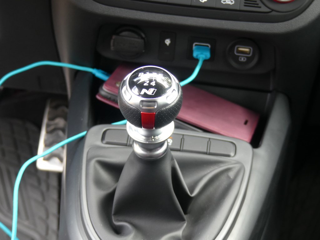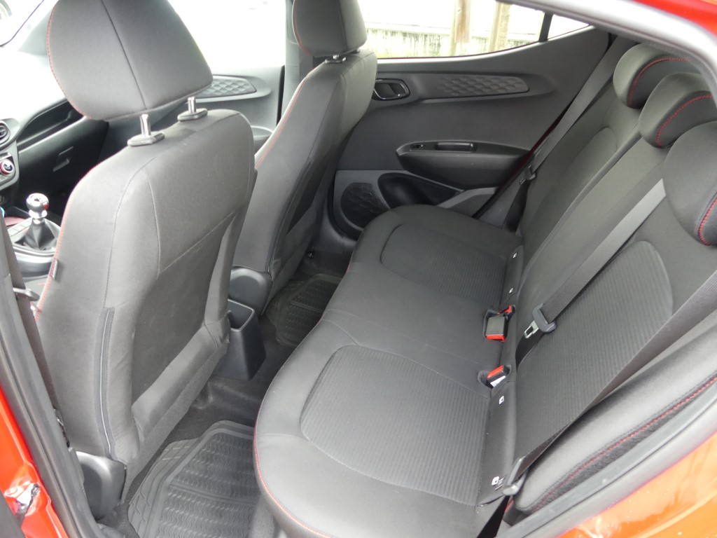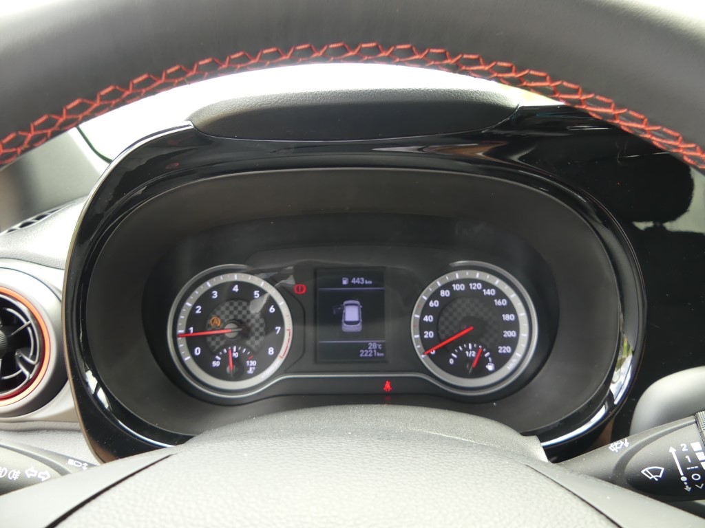 A l’intérieur, la nouvelle Hyundai i10 N Line garde presque le même habitacle que son sosie docile. Une fois à bord, on remarque tout de suite la dominance du rouge qui d’ailleurs encourage l’allure sportive de l’i10 N Line. A savoir des sièges en tissu N Line avec surpiqûres rouges, un volant et une boite à vitesse badgées N, et n’oublions pas les grilles de ventilation entourées de rouge. Finalement, la petite sportive neuve garde la plupart des options que le reste de la gamme i10. À savoir un écran tactile de 8 pouces, une climatisation manuelle, l’aide au stationnement ainsi qu’une camera de recul, le pack SmartSense qui comprend l’assistance active au maintien de voie ainsi qu’un détecteur de fatigue du conducteur.