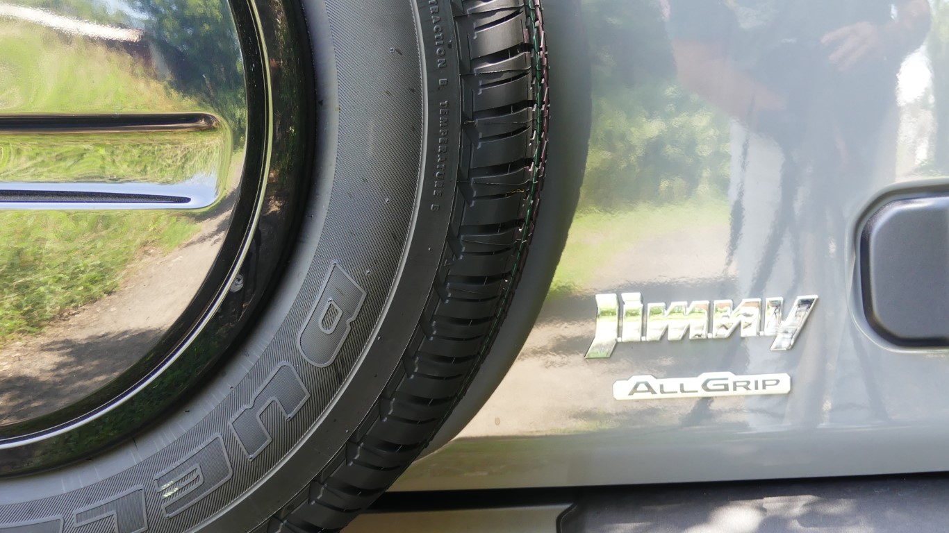 L’arrière, lui, est spécialement carré avec une porte qui s’ouvre vers le côté et qui donne accès à un petit coffre d’à peine 85 litres sauf à baisser un ou deux des sièges passagers… Oui le Jimny peut recevoir quatre adultes de tailles moyennes mais c’est au choix… Deux adultes et un grand coffre de 830 litres avec les deux sièges arrières rabattus ou quatre adultes et 85 litres de capacité soit presque rien… Cette face arrière reçoit la roue de secours impossible à loger ailleurs, mais le tout devient très esthétique et confère à notre Jimny un peu plus encore, une allure d’aventurier…