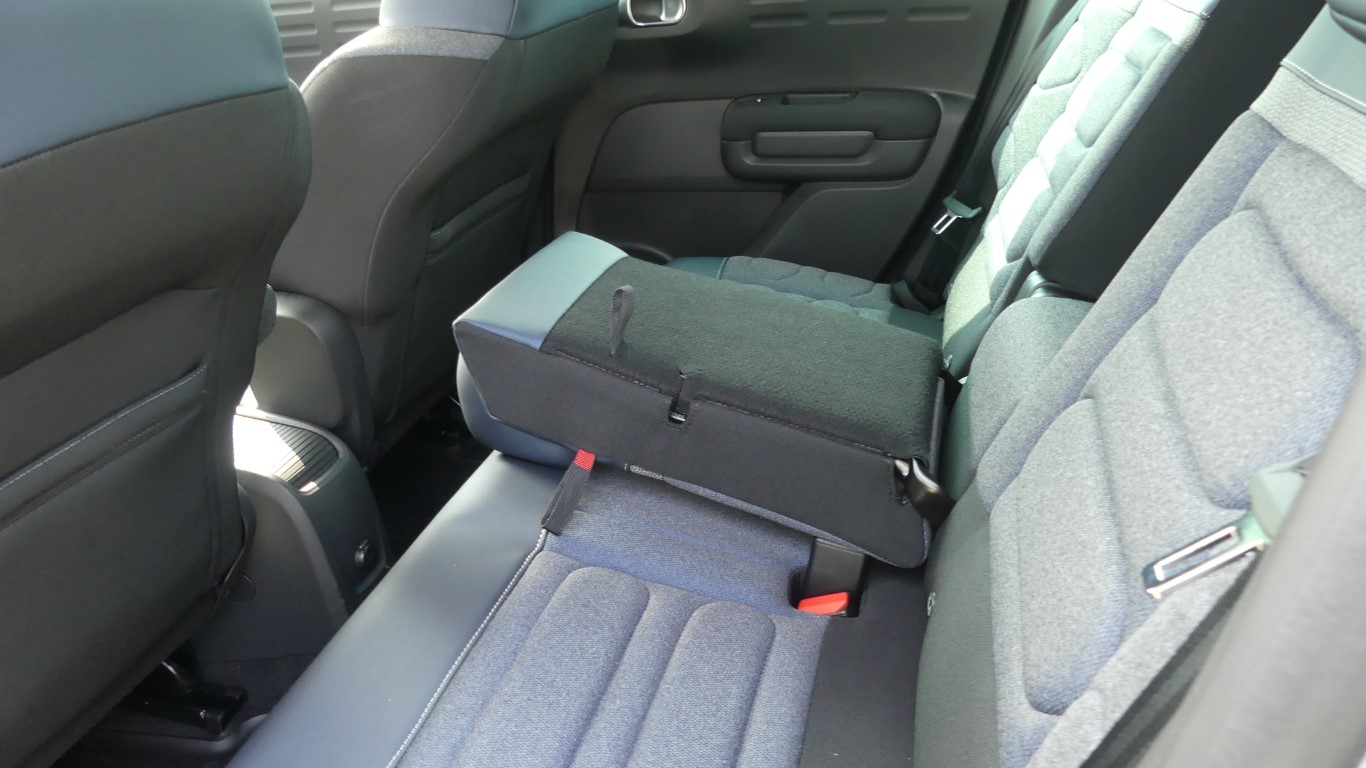 Outre les ambiances intérieures, le restylage du C3 Aircross s’accompagne de quelques nouveautés à bord : ainsi, l’écran tactile passe de 7 pouces à 9 pouces et la console centrale est revue grâce à un frein à mains affiné. Il permet de dégager l’espace pour deux porte-gobelets (ceux-ci disparaissaient auparavant avec l’option charge à induction), tandis qu’un grand rangement fermé apparaît sous l’accoudoir. En revanche, les porte-gobelets arrière disparaissent de l’accoudoir central, Citroën n’a pas oublié de faire quelques économies !La banquette arrière coulissante reste de série sur la seule version Shine Pack et reste optionnelle sur la série Shine.Les passagers arrière profitent toujours d’un espace plutôt généreux, sauf en largeur. La banquette coulisse toujours, mais uniquement sur les versions hautes. En fonction de sa position, la contenance du coffre varie de 410 à 520 litres, et atteint 1 289 litres avec la banquette arrière rabattue.