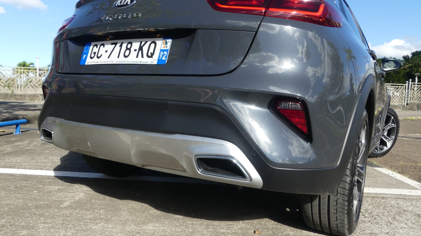Un look qui le rend plutôt original sur le segment, . En fait, malgré que le XCeed reprenne les codes du design Kia, il n’y que les portes qui soient reprises telles quelles de la Ceed. Tout le reste à donc été développé pour lui, de la proue à la poupe. L’avant arbore la familière calandre Tiger Nose de la marque mais le pare-choc est totalement nouveau. Il intègre un sabot de protection en partie basse tandis que deux barrettes chromées viennent relier la prise d’air centrale et les deux blocs antibrouillards sur les côtés. Des protections en plastique noir courent tout le long de l’auto et soulignent les passages de roues, pour renforcer l’aspect baroudeur. L’arrière joue sur le même tableau avec deux sorties d’échappements intégrées dans un autre sabot de protection couleur alu.