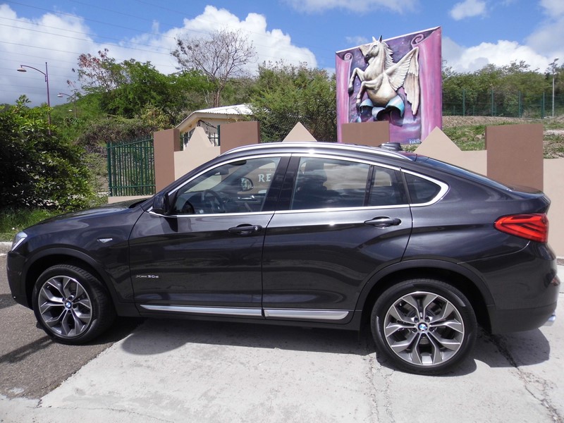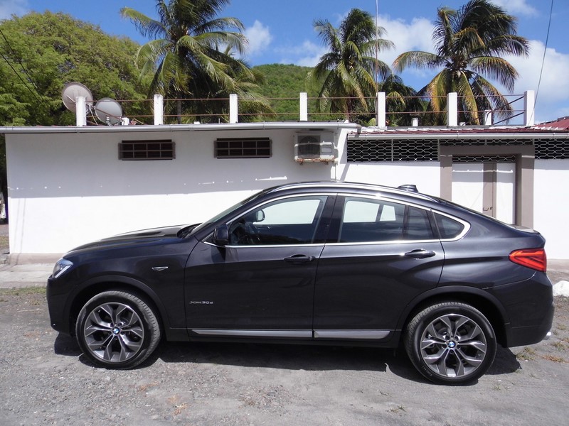 X4 3.0 d258 cv : Le S.A.C qui charme et envoute!!! En prenant en main chezBMW Martinique le X4 nous sommes tout d’abord époustouflés par la beauté du véhicule… Dans une gamme large et étendue chez BMW, X6, X5et X3 nous voulions comprendre les raisons d’un modèle X4… Selon BMW, nombreux sont les clients qui apprécient le X6sans pour autant assumer son style et son gabarit. C’est donc en pensant à eux que les bavarois ont dessiné le X4. Basé sur le X3 (dont il récupère la parti avant, embouti des portes compris), il reprend la chute de toit de son grand frère, ce qui conduit le constructeur à la qualifier de "Sports Activity Coupé". Derrière ce terme marketing un brin abscons se cache en fait un X3 à l’allure plus sportive, actuellement sans semblable sur le marché. Si l’intérieur reprend celui du X3comme à son habitude BMW avec ses SUVpropose avant tout une vraie élégance extérieure avec des lignes digne des plus belles mains des meilleurs designers… Pour les passagers avant et arrière l’univers BMW laisse place au confort et à l’élégance pour chacun… Le plaisir du pilote est donc partagé et l’espace parfaitement confortable… La planche de bord est accessible et fonctionnel elle à tout d’une BM cette coupée… Nous sommes dans le Haut de Gamme c’est très clair…BMW X4 xDrive 3.0 D : La force et l'élégance !!!