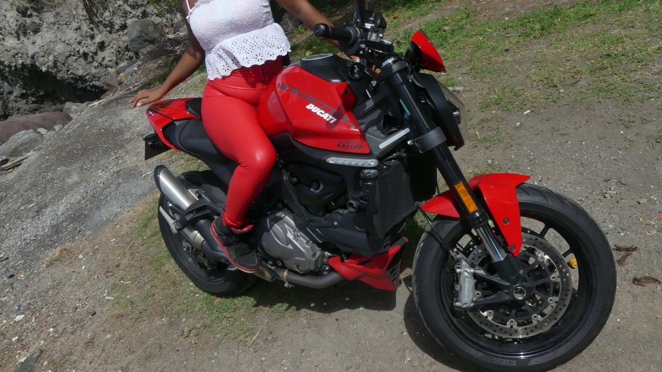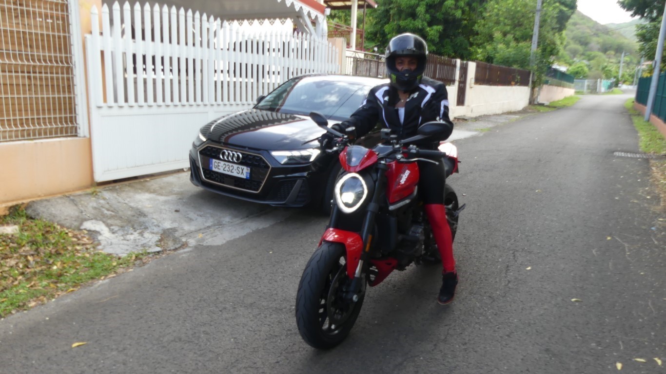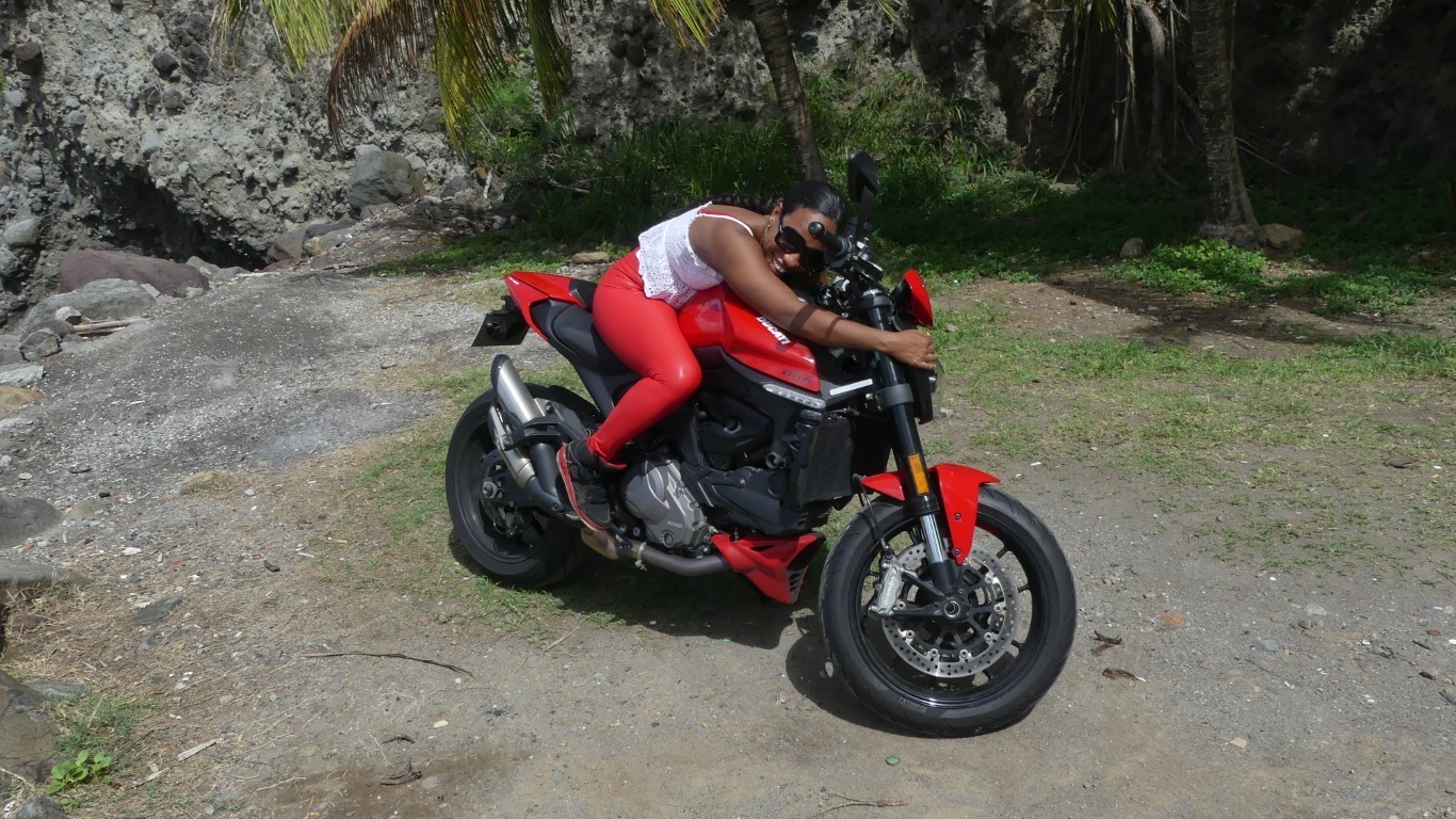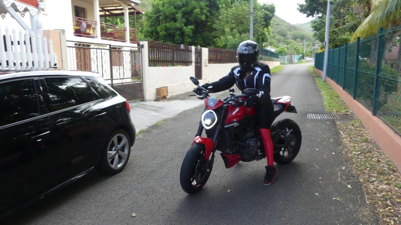 En gros un jouet des villes qui ne rechignera pas à grimper les hauts mornes de Martinique de façon sportive voir agressive selon vos souhaits en jouant avec ses 3 modes de conduite : Urban, Touring et Sport.  Ils jouent sur la cartographie, mais aussi sur le traction control et l’ABS. Sachant qu’il est possible de changer de mode en roulant ! Ducati n’a pas lésiné puisqu’il est possible de rentrer dans les cartographies pour les configurer plus finement. Les plus téméraires déconnecteront l’anti-wheeling ou réaliseront un démarrage canon en usant du Launch Control. Allé et si on demandait à Claire Boulogne ce qu'elle en pense elle de sa moto ??? Entendez-la dans notre essai vidéo ci-dessus...