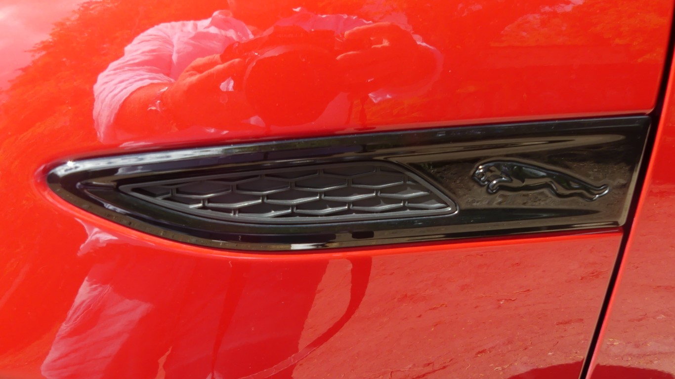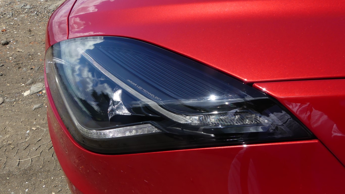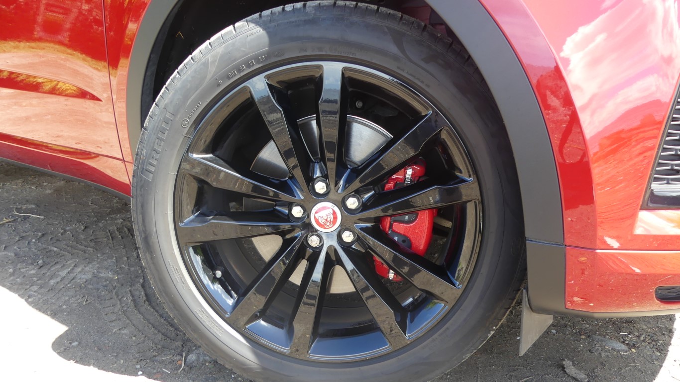 Le style extérieur de ce E-Pace ne déroge pas à la règle, et vous saurez rapidement reconnaître en le voyant arrivé dans vos rétros que c’est un Jaguar : sa largeur de presque 2 mètres, son capot plongeant, sa signature lumineuse avant avec ses phares à LED Premium, et dans cette très classe livrée Firenze Red et son Pack Design Black, qui fait passer la ‘graaande’ calandre au noir glossy, vous ne pourrez rater le Growler rouge, l’emblème Jaguar… Sur notre version du jour, son aspect sportif sera rehaussé par ses jolies jantes optionnelles de 20 pouces, au travers duquel ont aperçoit ses étriers de freins rouges, qui peuvent dégrader quelque peu le confort routier sur des portions pas totalement lisses, ou parsemées de défauts, telles que nous en connaissons dans certains quartiers de nos communes… Mais rien de bien alarmant, tant l’habitacle est accueillant… D’ailleurs, je vous y invite : prenons place…
