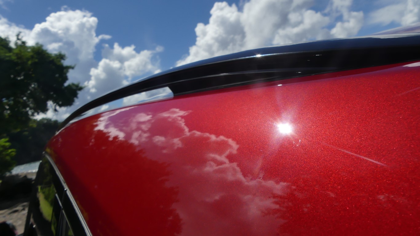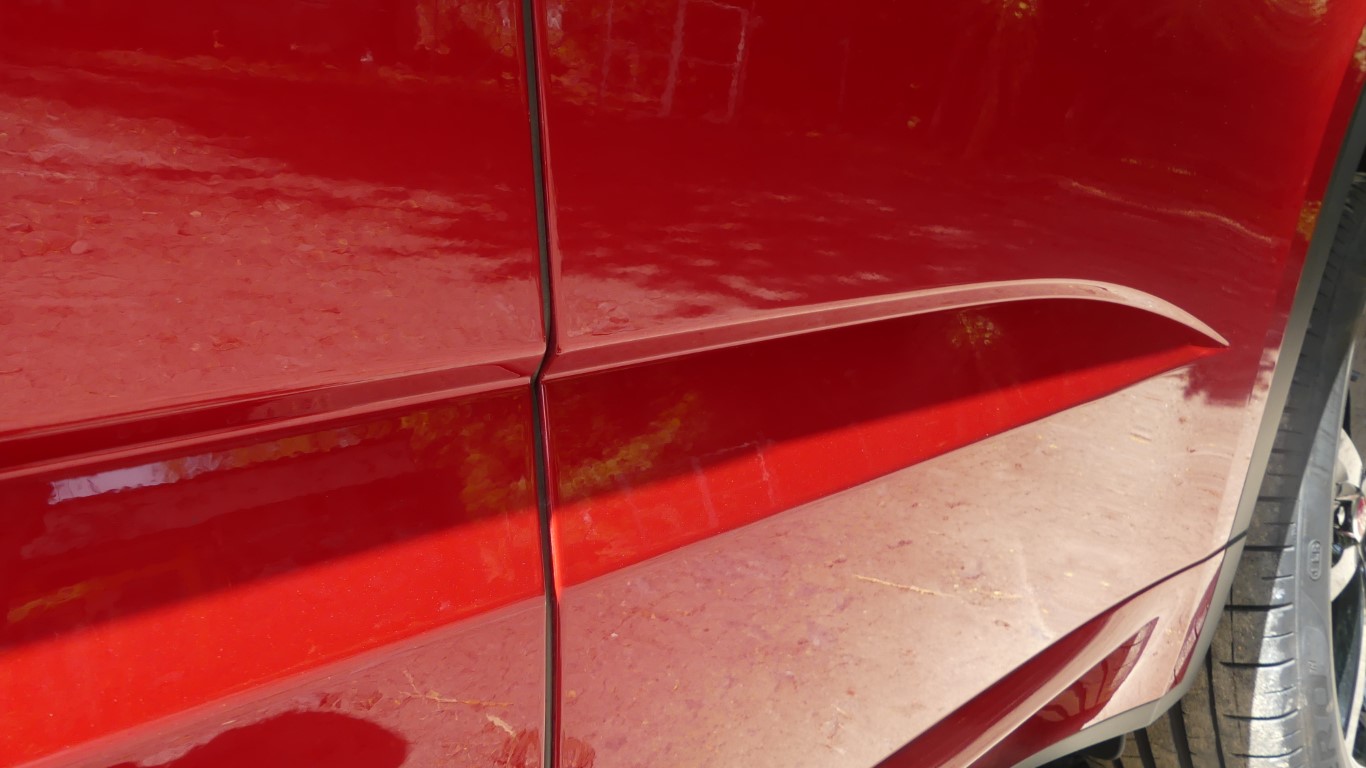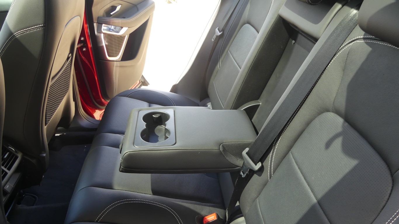 Le style extérieur de ce E-Pace ne déroge pas à la règle, et vous saurez rapidement reconnaître en le voyant arrivé dans vos rétros que c’est un Jaguar : sa largeur de presque 2 mètres, son capot plongeant, sa signature lumineuse avant avec ses phares à LED Premium, et dans cette très classe livrée Firenze Red et son Pack Design Black, qui fait passer la ‘graaande’ calandre au noir glossy, vous ne pourrez rater le Growler rouge, l’emblème Jaguar… Sur notre version du jour, son aspect sportif sera rehaussé par ses jolies jantes optionnelles de 20 pouces, au travers duquel ont aperçoit ses étriers de freins rouges, qui peuvent dégrader quelque peu le confort routier sur des portions pas totalement lisses, ou parsemées de défauts, telles que nous en connaissons dans certains quartiers de nos communes… Mais rien de bien alarmant, tant l’habitacle est accueillant… D’ailleurs, je vous y invite : prenons place…