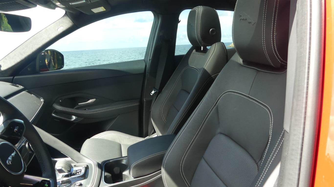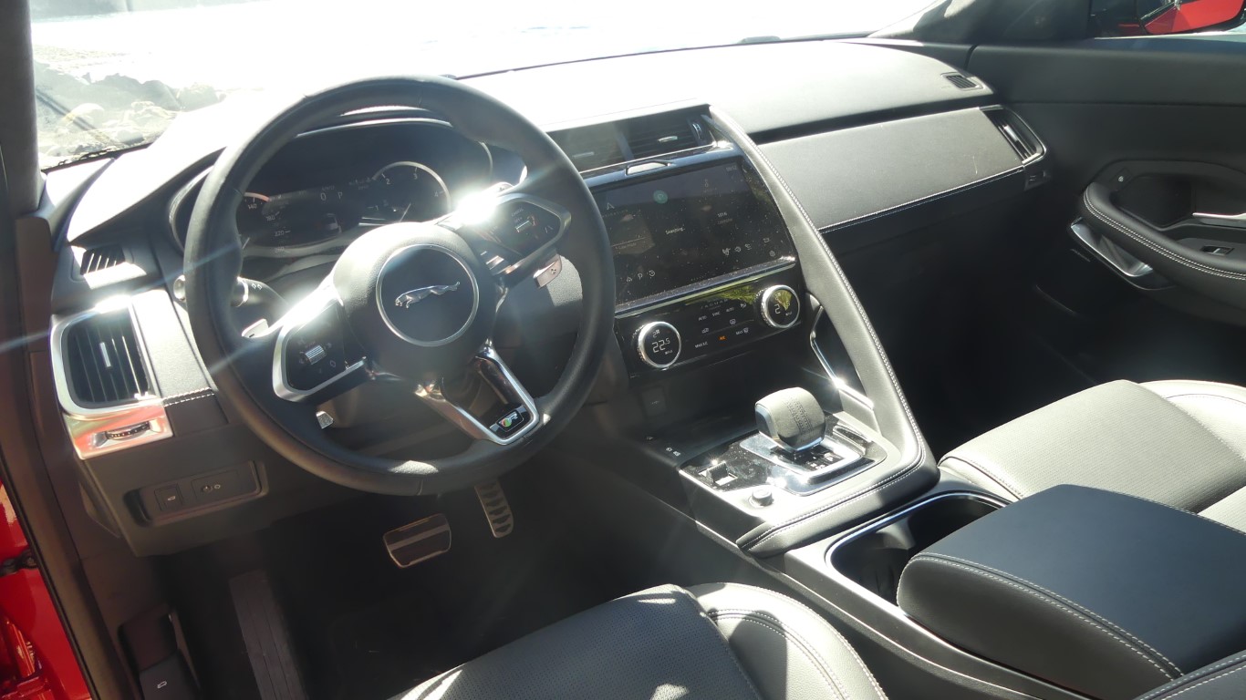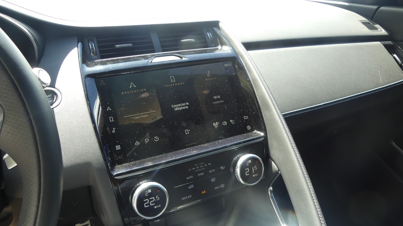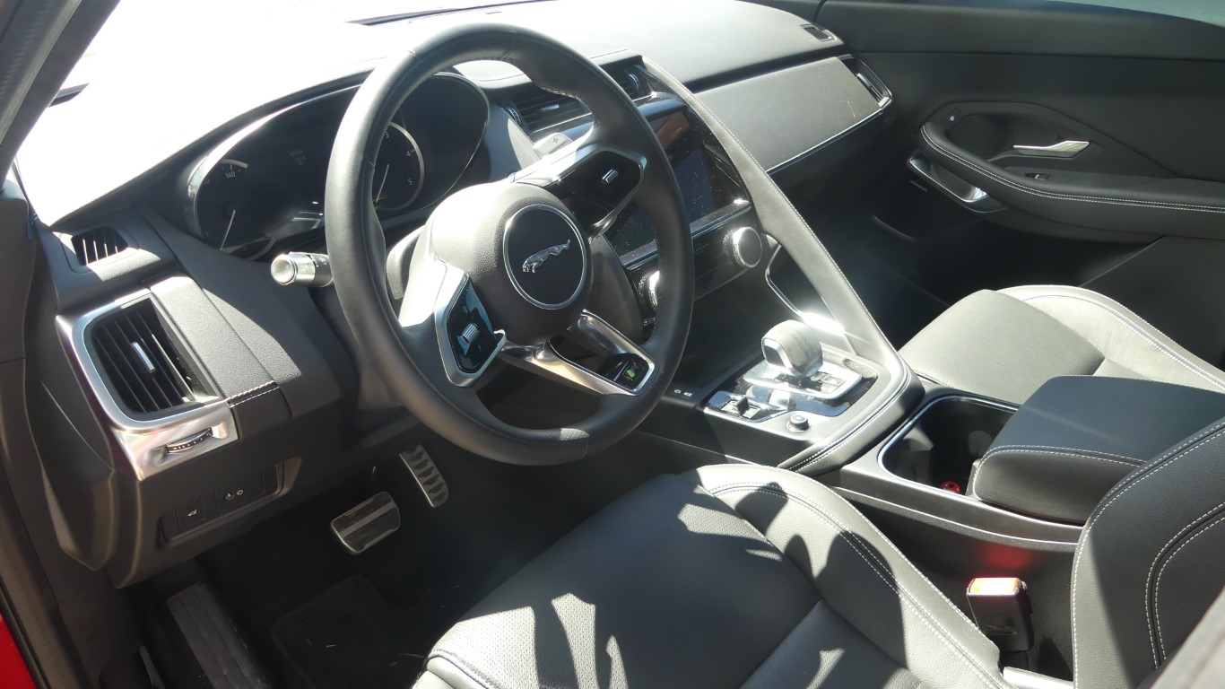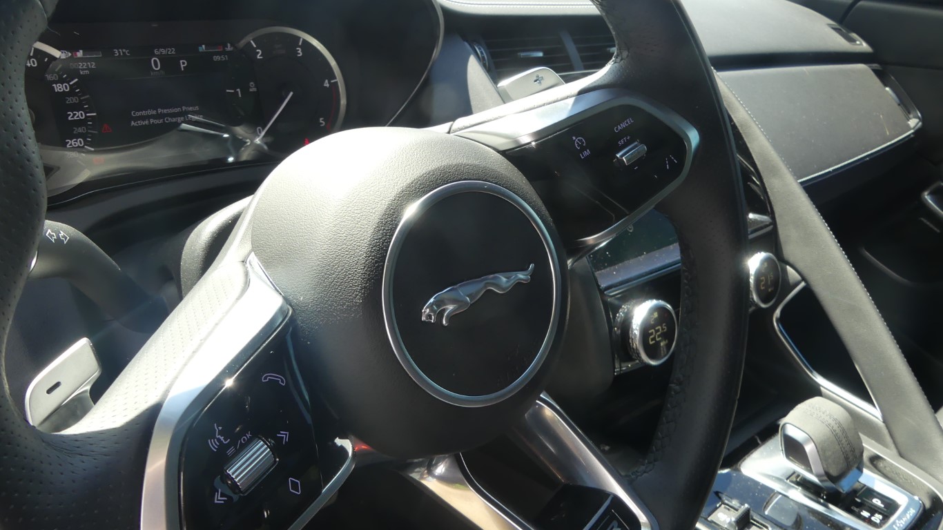 Une JAGUAR, même en SUV, c’est une ambiance particulière ressentie dès l’ouverture de la portière : les seuils de porte avant métallique avec leur inscription lumineuse, l’habitacle tendu de cuir, le volant épais avec en son centre ce félin bondissant qui vous invite à le suivre, ce petit sélecteur de vitesses si caractérisque, ces sièges sports… on s’y installe avec plaisir. Et une fois en route, l’agilité de cet animal n’est pas prise en défaut, grâce à ses diverses aides à la conduite, le tout commandé par un système d’info-divertissement complet et pilotable depuis son écran tactile de 11,4 pouces... Son coffre d’un volume de 494L est raisonnable quoique d’un peu en retrait par rapport à ses cousins concurrents de gabarit similaires. Mais sa banquette arrière rabattable dégagera assez d’espace en cas de chargement exceptionnel. Le reste de sa dotation intérieure est semblable au modèle P300e essayé il y a quelques semaines auparavant par Jean-Marc WOLLSCHIED, et que vous pourrez retrouver dans la liste des essais de notre site.