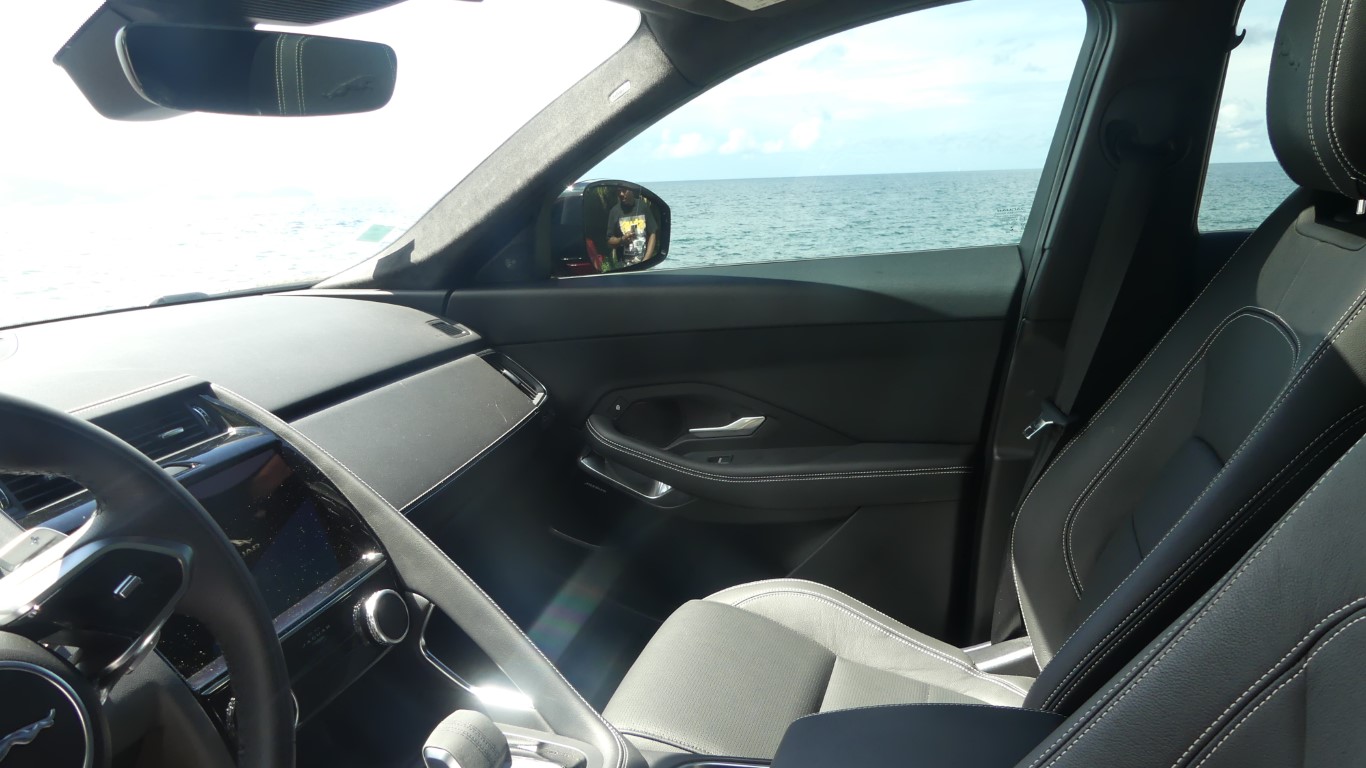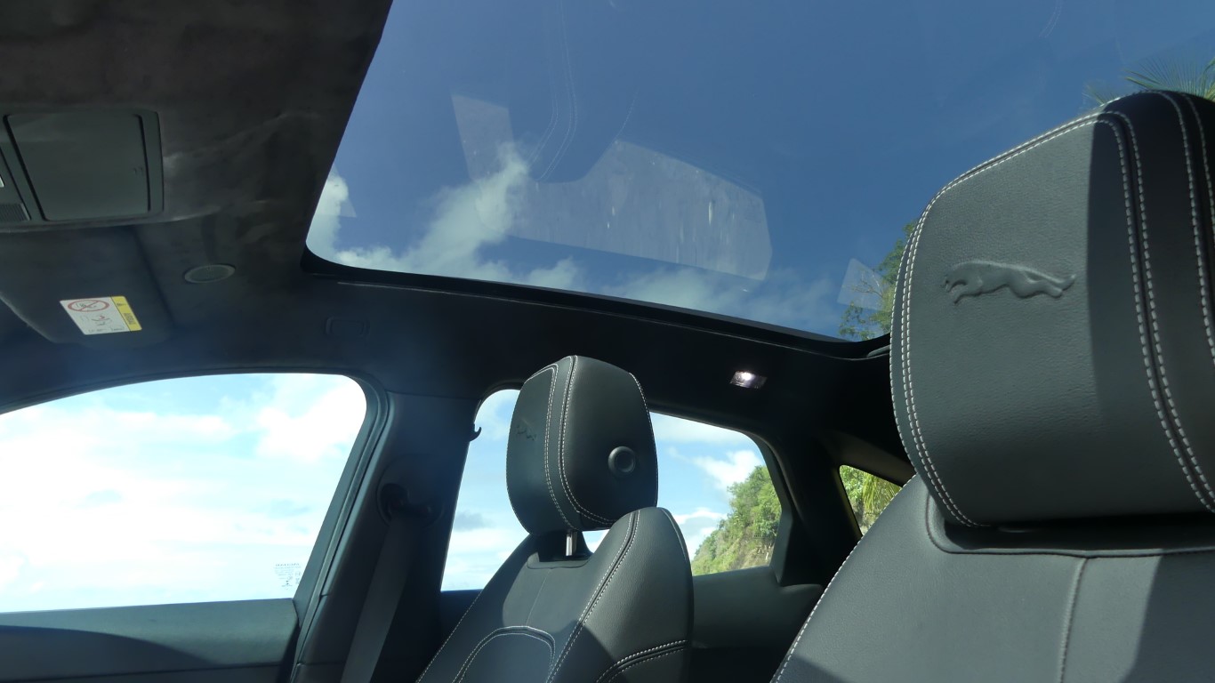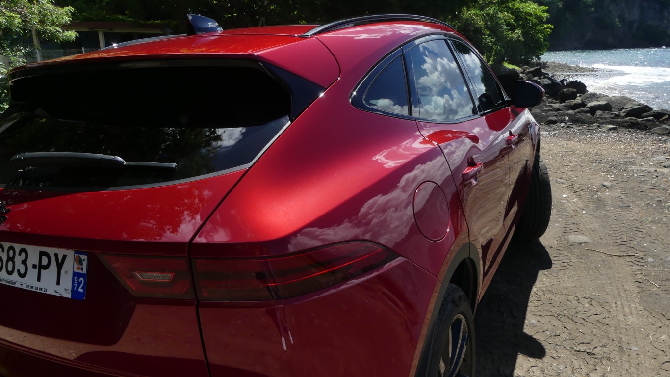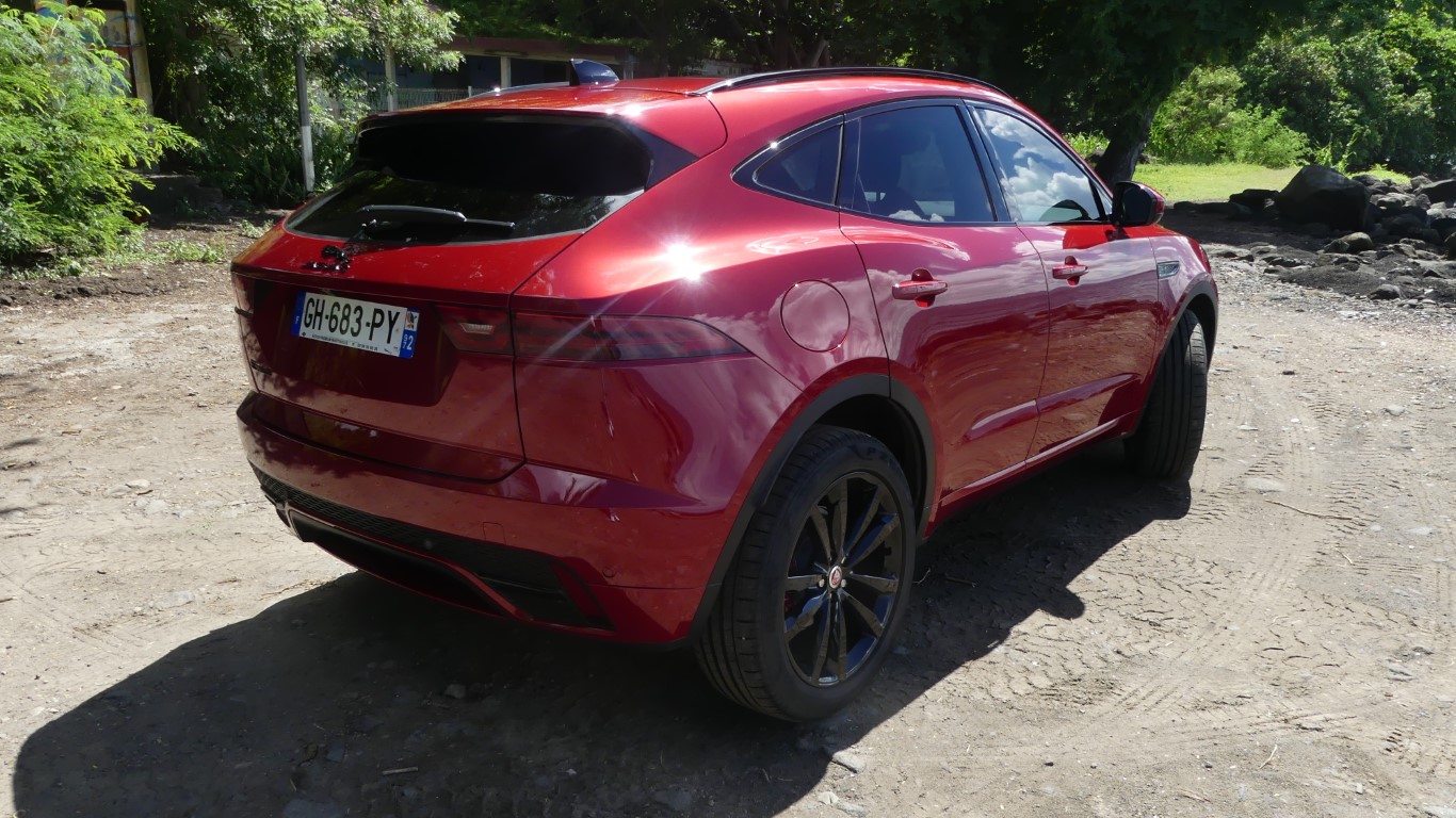 Ce E-Pace dans sa version 2.0L diesel n’est pas dénué de sens, bien au contraire ; d’ailleurs, la marque JAGUAR le dit bien elle-même, en le conseillant aux automobilistes parcourant de nombreux kilomètres, et qui font régulièrement la navette par l’autoroute, ce qui est le cas de bons nombres d’entre nous sur notre île. De plus, la technologie hybride MHEV est idéale dans des conditions de circulation dense et d’arrêt-démarrage. Et nous savons bien que celles-ci sont quasi-quotidiennes sur nos tronçons si souvent empruntés ! J’ai été séduit par le style de notre modèle d’essai d’aujourd’hui : son habitabilité m’est apparue très convenable en tant que conducteur, et bien que n’ayant pas eu de passagers à l’arrière, je suis certain que ceux-ci auraient été très à l’aise, pour peu qu’ils ne soient pas beaucoup plus grand que moi. Les gabarits de plus d’1M80 préféreront sans doute le F-Pace, plus long de 35cm, et donc logiquement plus habitable. Son châssis est sain, sécurisant, et malgré son poids de presque de 2 tonnes (1952 kilos précisément), ses 163 chevaux sont en définitive suffisant au quotidien, même avec des passagers.