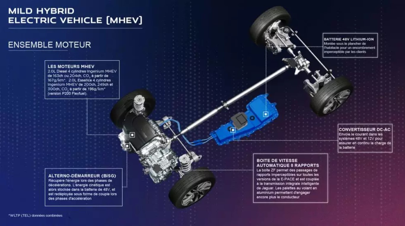 Le JAGUAR E-Pace 2.0L Diesel MHEV, conforme aux normes européennes EURO 6 en vigueur depuis septembre 2015, reste l’un des plus efficients, grâce notamment à la technologies qui l’équipe : le SCR selon Jaguar (la technologie de réduction catalytique sélective), que nous connaissons plus communément sous l’acronyme FAP, inauguré en 2016, réduit jusqu’à 90% les niveaux d’oxyde d’azote (les fameux NOx, ces fumées noires nauséabondes des diesels d’antan) émis par le système d’échappement, bien entendu sous réserve d’adjonction régulière d’AdBlue…
