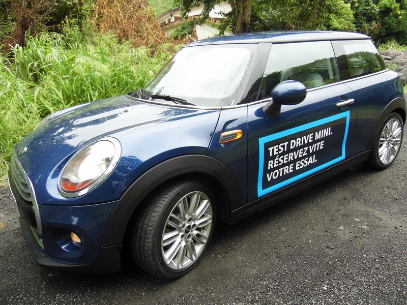 j’ai toujours l’impression que John Lennonva me taper sur l’épaule et me dire «Go my friend!!!» En sortant de chez BCAM en Martinique au volant de la mythique COOPERj’ai la ferme intention de tester cette 3ème génération de Mini sur routes mixtes et mesurer particulièrement la suspension pilotée annoncée à grands renforts de positives intentions du constructeur… Parce que le marché européen le suppliait, Mini n’a pas hésité à lancer une version mazoutée de sa petite citadine. C’était il y a plus de dix ans déjà… Depuis, bien des moteurs se sont succédés sous le capot de la petite puce anglo-allemande, dont des unités d’origine PSA et Toyota. Mais depuis quelques années, BMWse satisfait de ses propres moteurs. Et le tout dernier a quelque chose de particulier… Quand la précédente Mini Cooper D s’en remettait à un 4 cylindres diesel de 1,6 l, la nouvelle venue inaugure un moteur flambant neuf! Mais stupeur! Sous le capot, on ne compte que 3 cylindres, pour une cylindrée de 1,5 l. On vous rassure, question performances, cela ne change pas grand-chose, car il y a toujours 116 chevaux et 270 Nm sous le capot! Thank you dear… Nous voici sur les routes qui mènent à Saint-Pierre et au passage des bourgs nous reconnaissons que la frimousse de la Mini Cooper produit son charme sur une population mixte… A l’arrêt nos bonnes gens n’hésitent pas à venir frotter des yeux notre gros jouet et chacun y va de: «C’est la voiture de mes rêves…» Je regrette subitement de ne pas être vendeur itinérant de BCAM Martinique…. Côté intérieur tout y est!!!! C’est juste joli et pratique avec un coffre qui gagne 50 litres et des passagers arrière 2 cm… Elle fleur bon le brin de folie et la classe discrète notre Mini Cooper Diesel tant sur le choix des matériaux que sur la qualité des finissions… Je dirai, comme d’hab… Oui la suspension active pilotée apporte un vrai plus en mode ‘Sport’ même si toute fois en mode normal j’ai eu du mal à faire la différence… Elle virevolte donc gaiement d’un virage à l’autre, avec peut-être un peu moins d’entrain au niveau des roues arrière. Toujours est-il que l’on prend un grand plaisir à la balancer d’une courbe à l’autre, avec son train avant précis. Et sans être secoué! C’est là l’autre bonne nouvelle. Il faudra cependant composer avec une direction a bien saisir. Côté consommation, Mini annonce son bolide à un spectaculaire 3,5 l/100 km de moyenne, soit des émissions de CO2 de 92 g/km. Si c’est votre patron qui vous l’offre, votre «Avantage Toute Nature» vous dira merci! Disons que dans la vraie vie, de la route de la Traceen passant par la rocade et la sinueuse route du nord, il faudra plutôt tabler sur une moyenne tournant aux alentours de 4 à 4,5 l/100 km, voire un peu plus si vous aimez profiter de temps à autres des ressources du moteur. En bref: Plus aboutie et plus homogène, la nouvelle Mini Cooper D prend son rôle très au sérieux. Confort et performances en hausse, consommation en baisse: elle abat des cartes maîtresses pour réussir sur ce segment! Son côté ludique, elle le peaufine également, quitte à en rajouter des louches dans l’habitacle avec un design semblant parfois échappé de «Mario Kart»… Un bien bel ensemble néanmoins, coquet et amusant, pour les démarqués de la routine et du design beauf… Nous chez www.grantomobil.fr on aime!!! Prenez rendez-vous ici pour un essai gratuit de votre future Mini Cooper !!! - moteur diesel trois cylindres avec turbocompresseur MINI TwinPower (turbocompresseur à géométrie variable, injection directe à rampe commune, pression d’injection maximum: 2 000 bars)