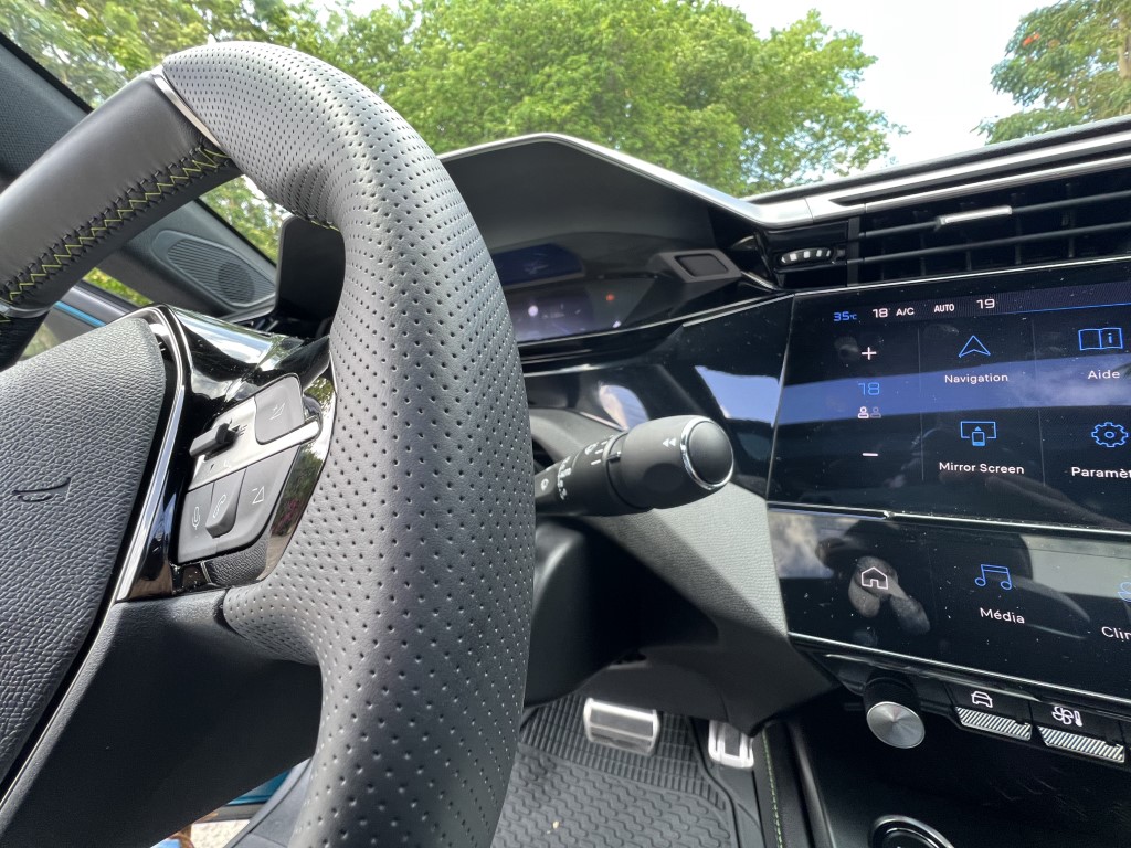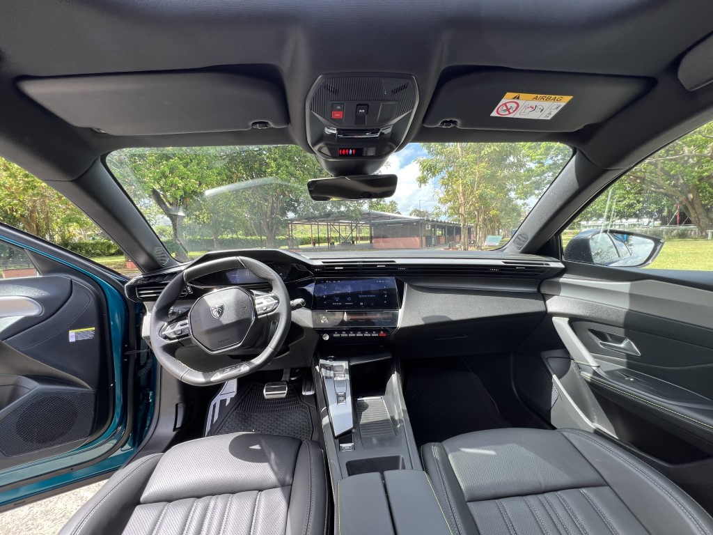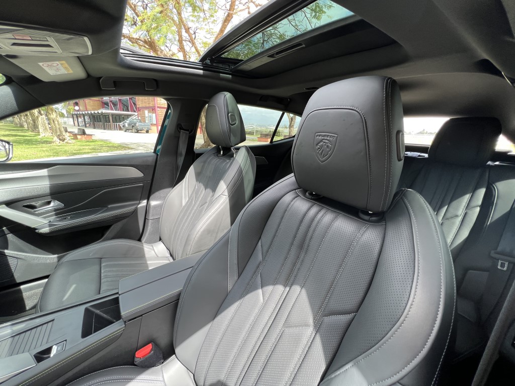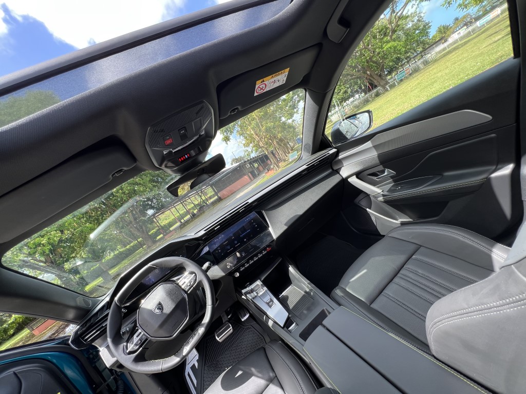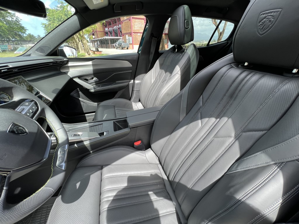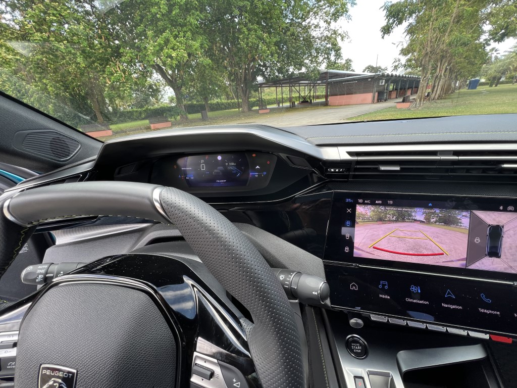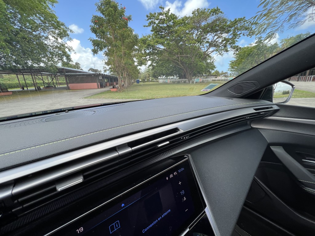Sous le capot, l'offre est en revanche restreinte, avec une motorisation essence et deux hybrides rechargeables seulement. La première offre repose sur le 1.2 Puretech 130 ch couplé à la boîte automatique EAT8 à huit rapports, seule proposition de transmission pour l’ensemble de la gamme. Les PHEV imitent la petite sœur 308 et autres Citroën avec un moteur thermique 1.6 Puretech (150 ch ou 180 ch) couplé à un moteur électrique avant synchrone à aimants permanents délivrant une puissance de 81 kW (110 ch) et un couple de 320 Nm ; l'ensemble développant 180 ch ou 225 ch notre essai ce matin en Martinique. Le tout est alimenté par une batterie d’une capacité de 12,4 kWh dont l’autonomie en pur électrique est annoncée à 62 km. Grâce sa batterie, la 408 annonce une autonomie en 100 % électrique d'environ 64 km pour une consommation en cycle mixte WLPT de 1,2 l avec des émissions de CO2 de 26 g/km. Pour notre essai, sur un trajet de mixte, nous avons établie une consommation de 6.0 l/100 km pour une vitesse moyenne de 80 km/h. Pas mal du tout pour une voiture affichant pourtant sur la balance un bon 1 706 kg .