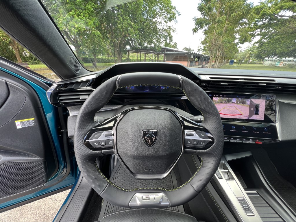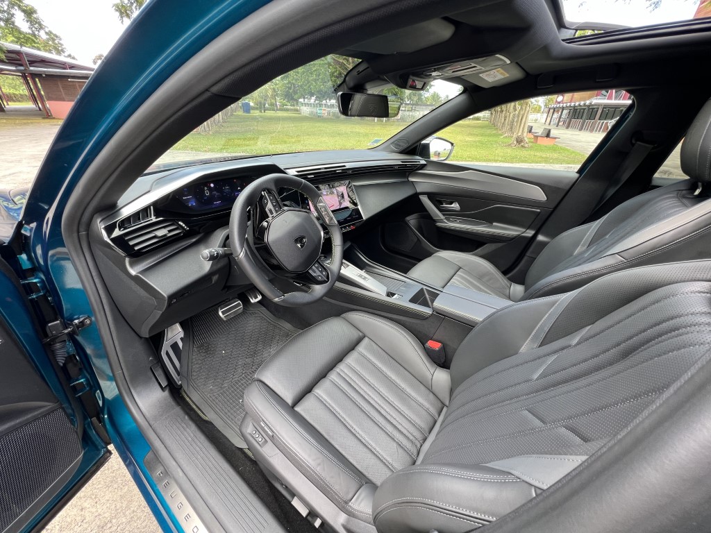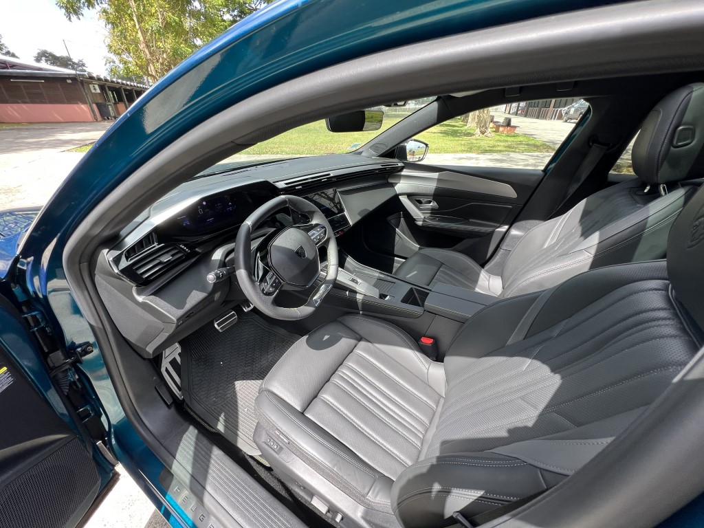 A l’intérieur de l’habitacle, le PEUGEOT i-Cockpit® fait partie des marqueurs forts de la marque au lion. Son volant compact regroupe les commandes du système multimédia et de certaines aides à la conduite. Situé à hauteur des yeux juste au-dessus du volant, le nouveau combiné digital intègre une dalle numérique 10 pouces. En finition GT, le combiné est disponible en technologie 3D. Entièrement paramétrable et personnalisable, ce combiné numérique possède plusieurs modes. La construction de la planche de bord repose sur une architecture « high-vent », qui place les aérateurs en position haute, juste en face de la tête des occupants, favorisant ainsi leur confort thermique. Cette architecture permet aussi à l’écran tactile central de 10 pouces, implanté légèrement plus bas que le combiné digital situé quant à lui directement sous le regard du conducteur, de se rapprocher de sa main. Le système propose des i-toggles entièrement configurables disposés sous l’écran. Particulièrement enveloppants, les sièges avant ont obtenu le label AGR, attribué par une association allemande indépendante d’experts de l’ergonomie et de la santé du dos. Ce label récompense à la fois l’ergonomie et l’amplitude de réglages des sièges avant.