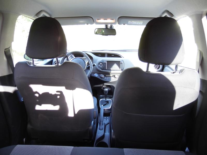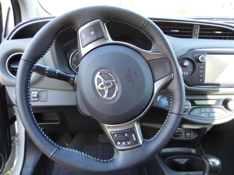 apparaît toujours aussi pertinente en ville. Sans révolutionner la précédente mouture, cette cuvée 2014 apporte tout de même quelques améliorations en termes d’autonomie électrique et de liaisons au sol. Une pression sur la touche « Start » et les premiers tours de roues s’opèrent comme une voiture électrique. On apprécie son silence et sa douceur de fonctionnement, même lorsquele quatre cylindres essence 1,5 litres de 75 ch intervient discrètement (la puissance cumulée peut alors atteindre 100 ch). La réactivité de l’ensemble suffit amplement en ville, même si le jeu est de solliciter le moteur thermique le moins possible… ce qui n’est pas toujours aisé avec 25 ch « seulement » en mode électrique. En adoptant une conduite coulée, le système hybride compose avec les deux moteurs : les transitions sont douces et le régime moteur minimisé. Côté confort, les suspensions retravaillées en matière de filtration ménagent mieux les occupants. La direction électrique, d’une souplesse exemplaire, favorise la maniabilité dans les manœuvres. Je dois reconnaître que nous prenons un grand plaisir à piloter notre Yaris qui inspire à une grande sécurité avec une insonorisation parfaitement réussi par le constructeur nippon… J’ai la bonne impression de participer au volant de ma Toyota à limiter ma présence en stations et de surcroît participé également à réduire la pollution de notre belle île… Ce sont des critères important pour la clientèle hybride deCCIE Toyota et nous devons les féliciter… Trois ans après l’apparition de la troisième génération, la citadine de Toyota fait donc peau neuve avec des ingrédients efficaces : un design plus agressif, des lignes tendues, des optiques redessinées et une nouvelle calandre en « X » laYaris y ajoute quelques touches de chromes sur les finitions haut de gamme pour gagner en élégance. Plaire au premier regard et au plus grand nombre, telle est sa devise ! Bien sûr, la reconduction de la motorisation « full hybride », apparue en 2012, sonne comme une évidence puisqu’elle constitue la meilleure vente d’hybride en France… et représente 45 % des ventes de Yaris (le Diesel D-4D ne représente « que » 17 %). Un succès sans précédent, propre à la marque japonaise. Ou plutôt franco-japonaise puisque la Yaris est assemblée en France, à l’usine de Valenciennes. Les signes distinctifs de cette version hybride s’avèrent plus dissimulés qu’auparavant puisque les autres versions essence et Diesel reprennent le même design, à l’exception du logo bleuté sur la calandre et quelques monogrammes. Côté intérieur La Toyota Yaris 3 gagne un espace non négligeable pour les jambes de ses passagers, alors qu'avec 286 litres, le coffre est en mesure d'accueillir suffisamment de bagages. C'est donc l'un des points forts de cette Toyota. La Yaris démontre une très belle habitabilité. Elle reste compacte a l'extérieur et se montre suffisamment logeable à bord.Toyota YARIS : Hybride et pertinente !!!