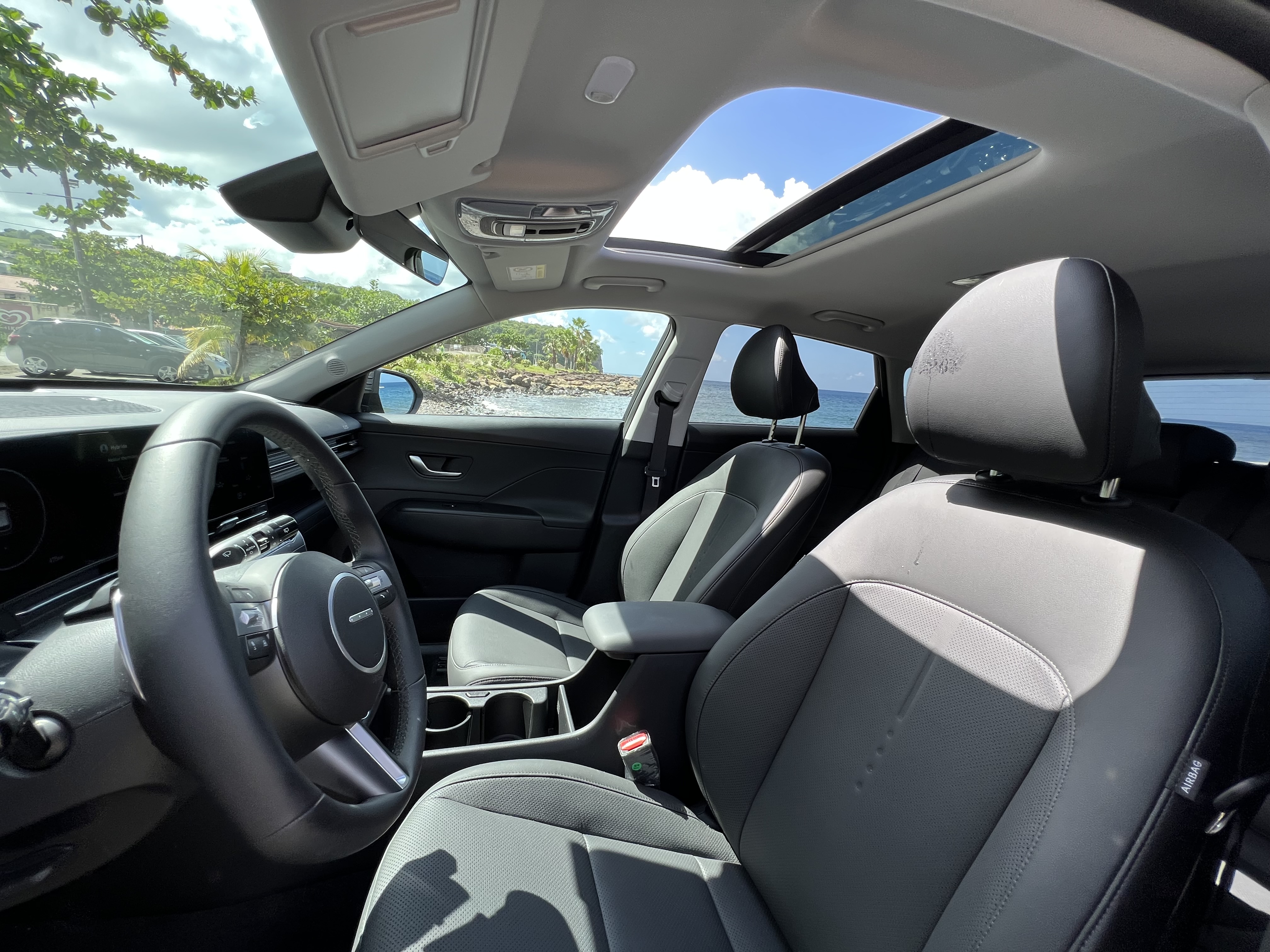 Ce nouveau Kona 2 se distingue aussi par ses technologies de dernière génération à l’image de la grande dalle digitale intégrant un double écran de 12,3 pouces, l’un pour le tableau de bord et l’autre pour l’info-divertissement. Sur l’aspect pratique, le Kona 2 dispose également d’un hayon électrique, facilitant ainsi les chargements dans le coffre et ce d’autant que son fonctionnement est personnalisable puisque le conducteur pourra choisir la vitesse d’ouverture ainsi que la hauteur. Le nouveau Hyundaï se dote également de nombreuses aides à la conduite de dernière génération dont le maintien actif dans la voie ou encore le régulateur adaptatif couplé avec la navigation et le système d’aide active à la conduite sur autoroute.