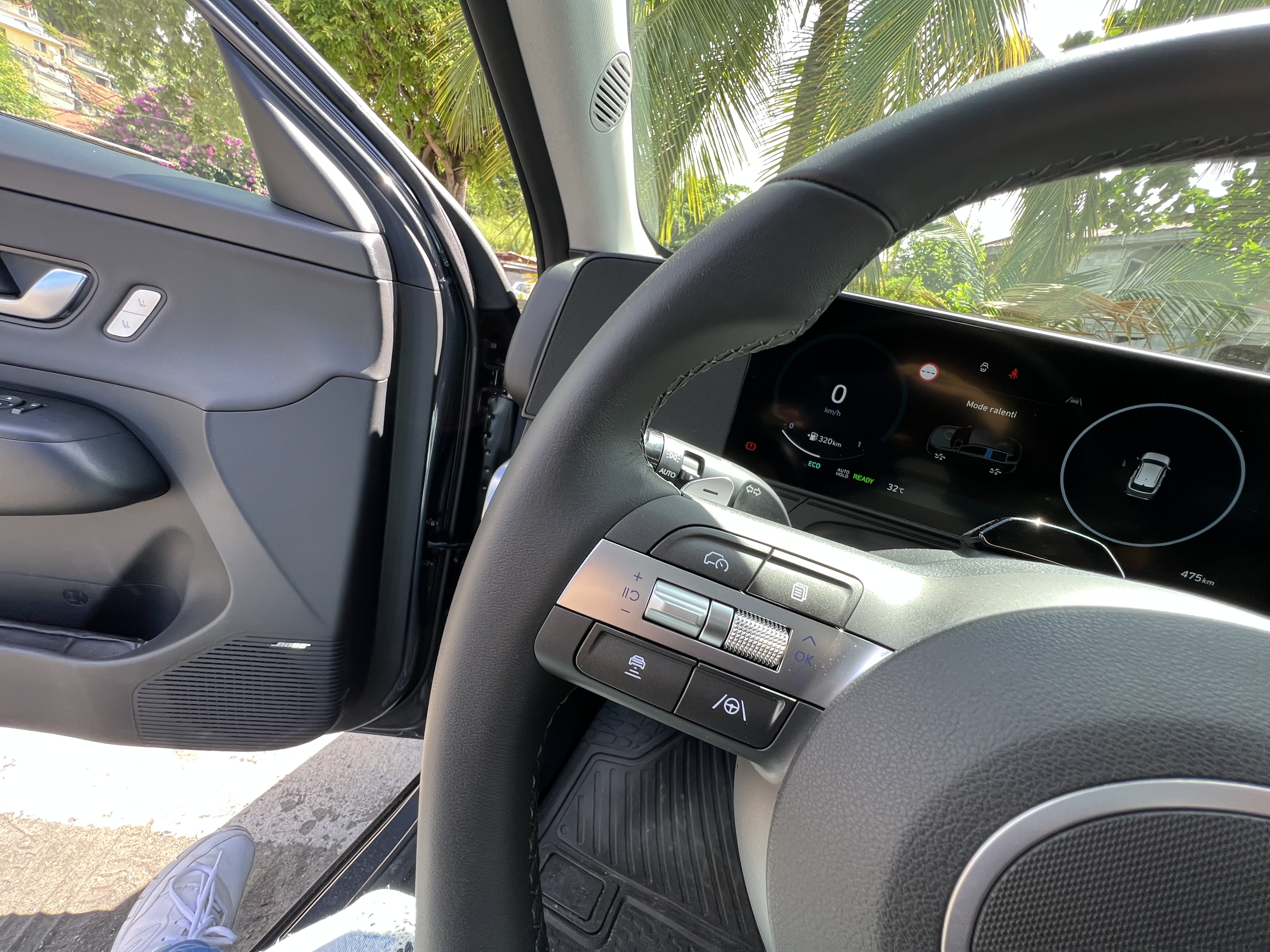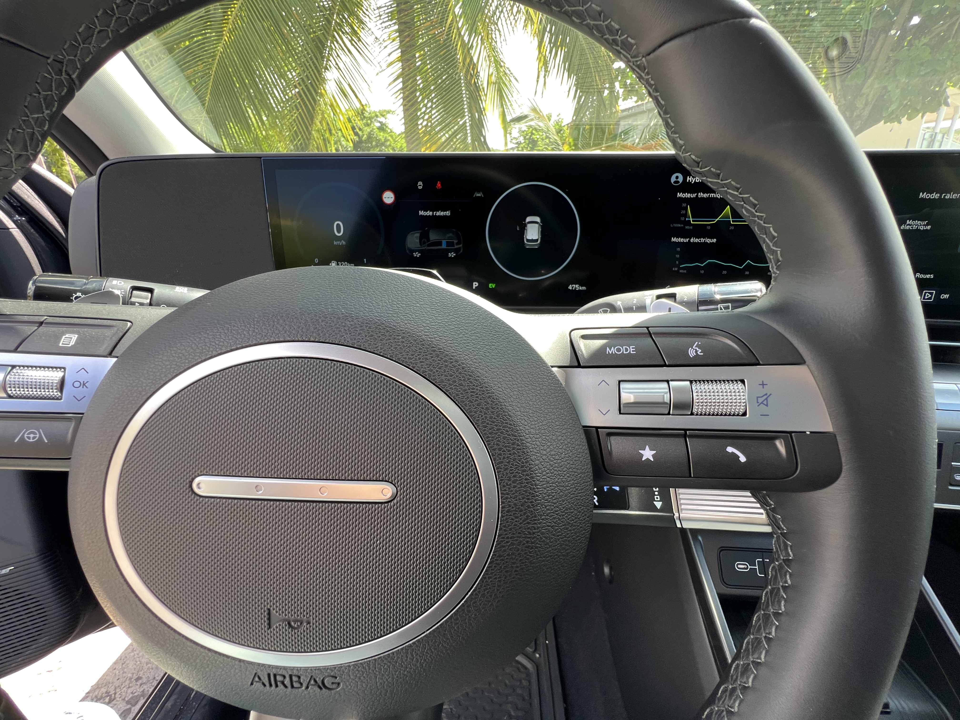 Pour supplanter encore un peu ses concurrentes, Hyundai se devait aussi de revoir l’équipement de son modèle à la hausse. On retrouve ainsi les feux de jour et de position à LED, le détecteur de fatigue, la reconnaissance des panneaux et la climatisation bizone en série dès les premiers niveaux de finition … Et sur notre version Executive, on peut ajouter à cette liste la caméra 360°, les sièges cuirs et ventilés ainsi que l’affichage caméra des angles morts.