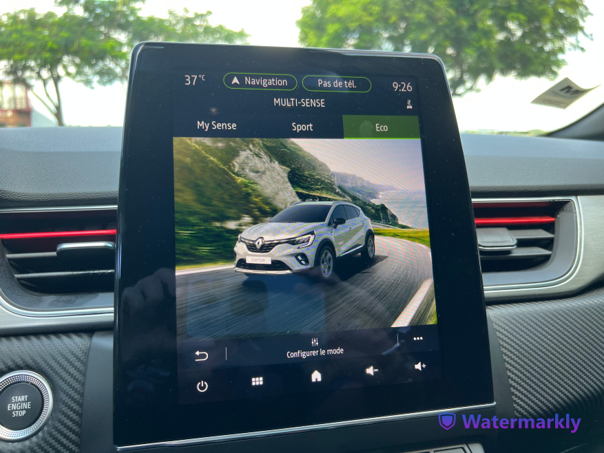 L’intérieur du Renault Captur propose le confort des standards des SUV urbain moderne. Les ingénieurs de Renault ont particulièrement soigné l’accueil avec une belle qualité du mobilier. Si le plastique est encore un peu trop présent, il faut noter les efforts de la marque au losange pour améliorer le rendu final de l’habitacle. Par rapport à la première génération de Captur, les efforts sont à la hauteur de ce que peuvent attendre la clientèle Martiniquaise très souvent exigeante. L’écran central de 9,2 pouces apporte une touche supplémentaire qualitative alors que les compteurs numériques finissent le ‘One Touch’ à la française. Les boutons physiques sont également assez nombreux, ce qui conforte l’ambiance ressentie.