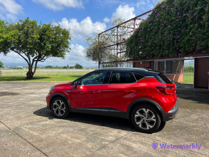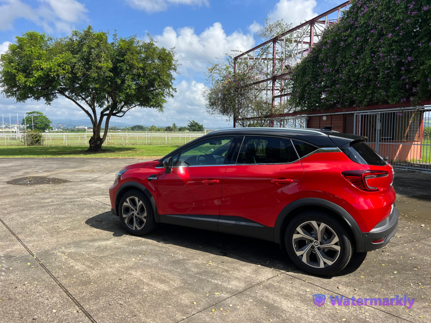 Notre modèle de ce matin en Martinique bénéficie du 1.3 TCe 140 chevaux essence : cette motorisation apporte un moteur 4-cylindres et une micro-hybridation. La boîte manuelle à 6 rapports est imposée mais on note une consommation de seulement 5,8 litres aux 100 kilomètres pour de bonnes performances… Le Captur s’anime également d’un 1.3 TCe 160 chevaux essence : la plus puissante motorisation se distingue par sa boîte de vitesses automatique EDC à 7 rapports. Les performances sont en hausse tout en échappant au malus. C’est le modèle à choisir pour les parents sportifs ; du E-Tech 145 hybride : cette version hybride de 145 chevaux permet de rouler conjointement à l’essence et à l’électrique. La batterie se recharge en roulant. La consommation descend alors à 5 litres aux 100 kilomètres en cycle mixte ; et enfin du E-Tech Plug-In 160 hybride rechargeable : enfin, cette version hybride rechargeable permet de rouler en mode 100 % électrique pendant 50 kilomètres tout en maintenant une consommation mixte de seulement 1,3 litre aux 100 kilomètres.