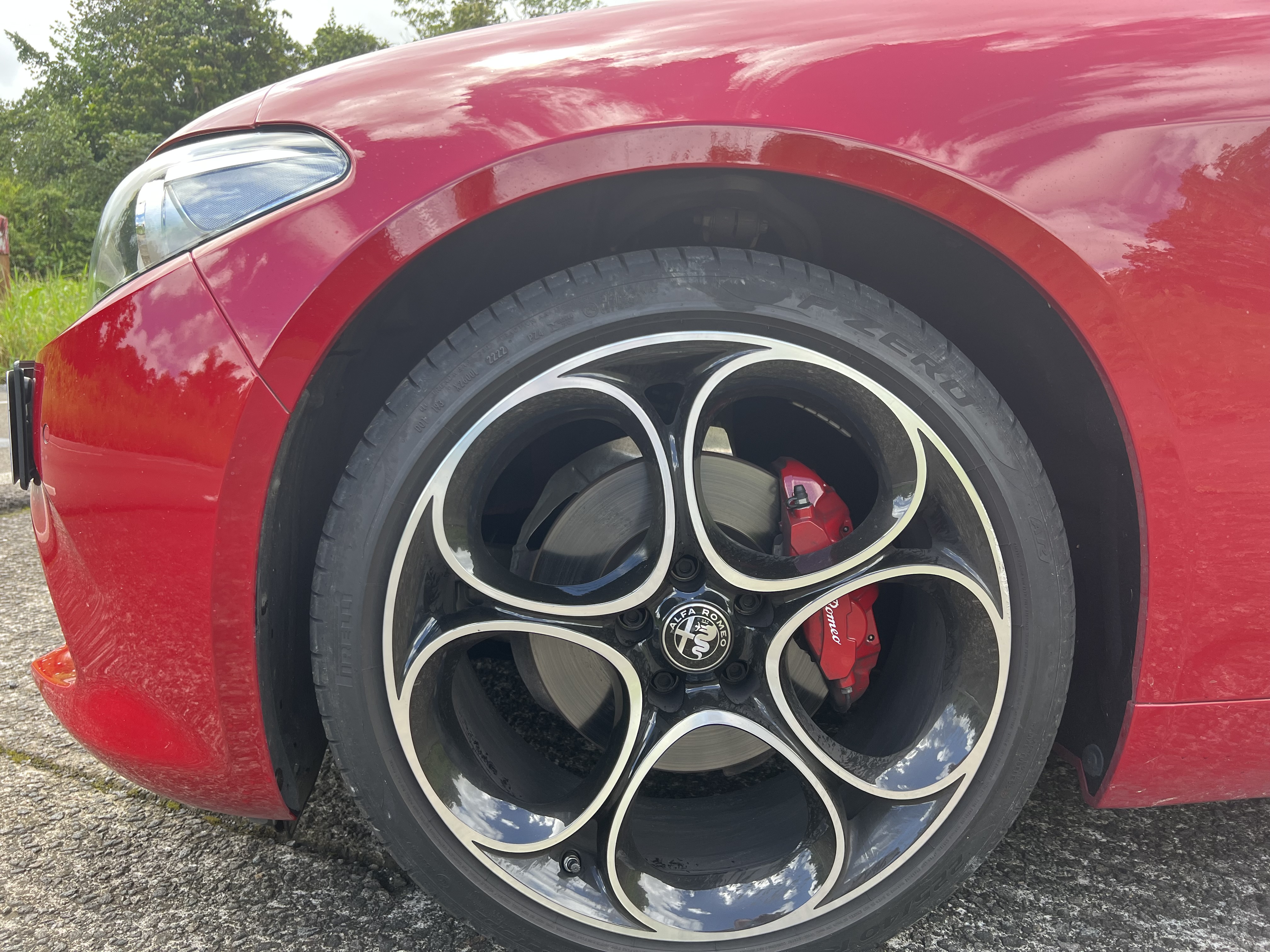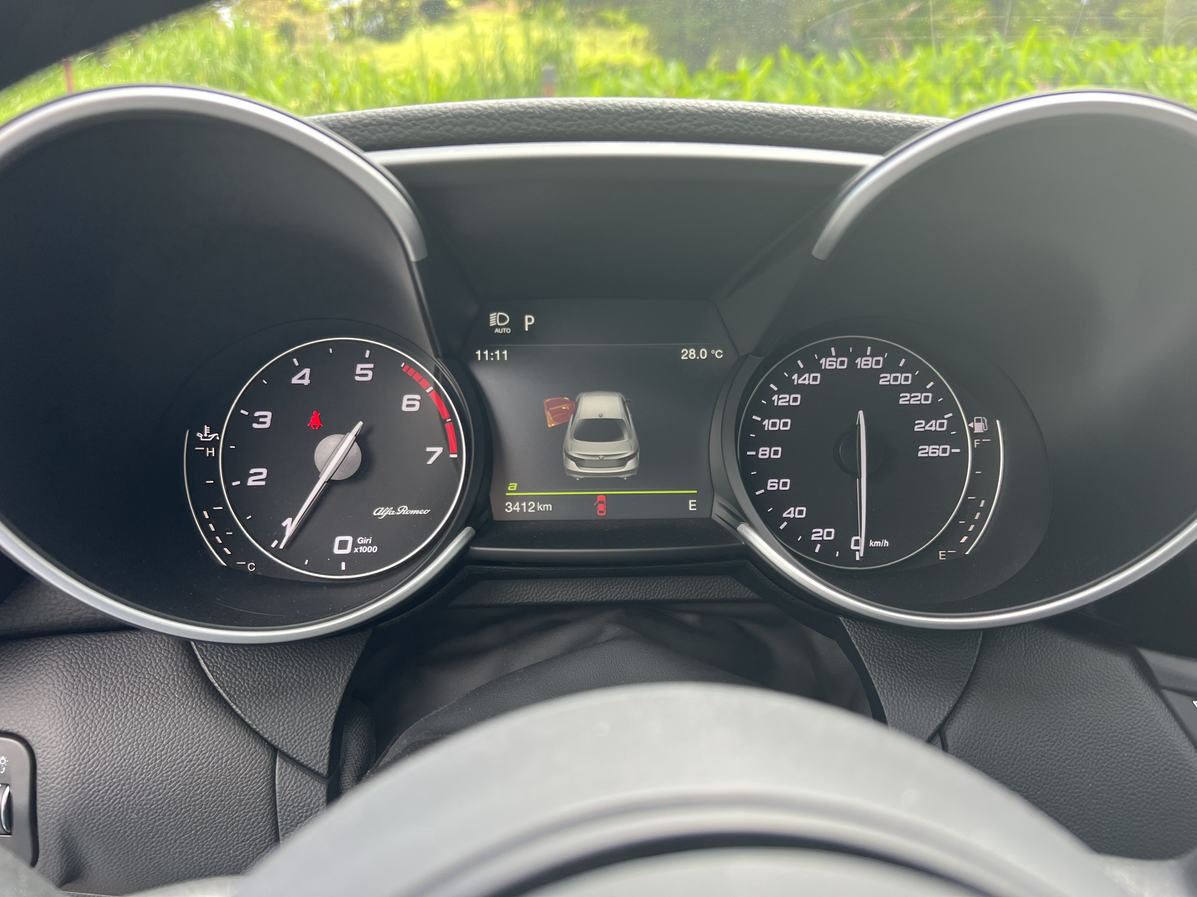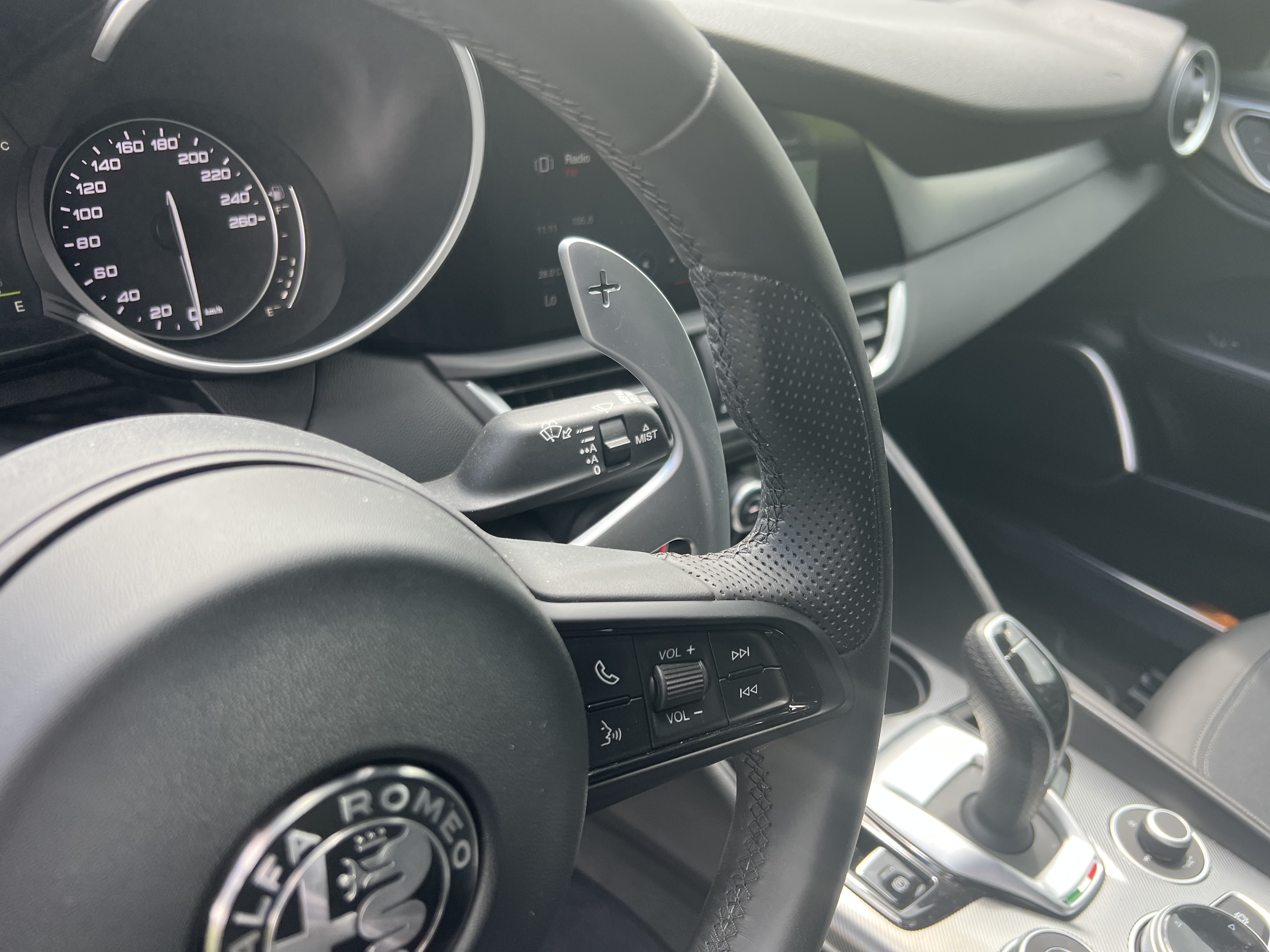 Sur nos routes La Giulia accélère fort, très très fort. Ses reprises sont également surprenantes. Il faut dire que la boîte ZF (même fournisseur que BMW) est d'une efficacité redoutable. Les rapports s'enchaînent super bien étagés et proprement, sans à-coups ni hésitations. Avec 8 vitesses, le moteur est toujours en sollicitation optimale. L'option palettes au volant est de fait une quasi-obligation pour des sensations explosives sur la route de la Trace par exemple. Elles délicieusement accessibles, c'est un régal de les utiliser en conduite plus agressive. L'Alfa Roméo Giulia est une des premières voitures à utiliser l'innovant système de freinage Continal dit « by wire ». L'utilisateur ne freine pas directement, il est « assisté » par une pompe haute pression qui alimente les étriers en suivant les informations d'un capteur lié à la pédale de freins. Un module électro-hydraulique s'occupe de la manœuvre en déclenchant une pression de freinage très précise sur chaque roue. Je retiens le freinage sûr et puissant à la hauteur des accélérations…