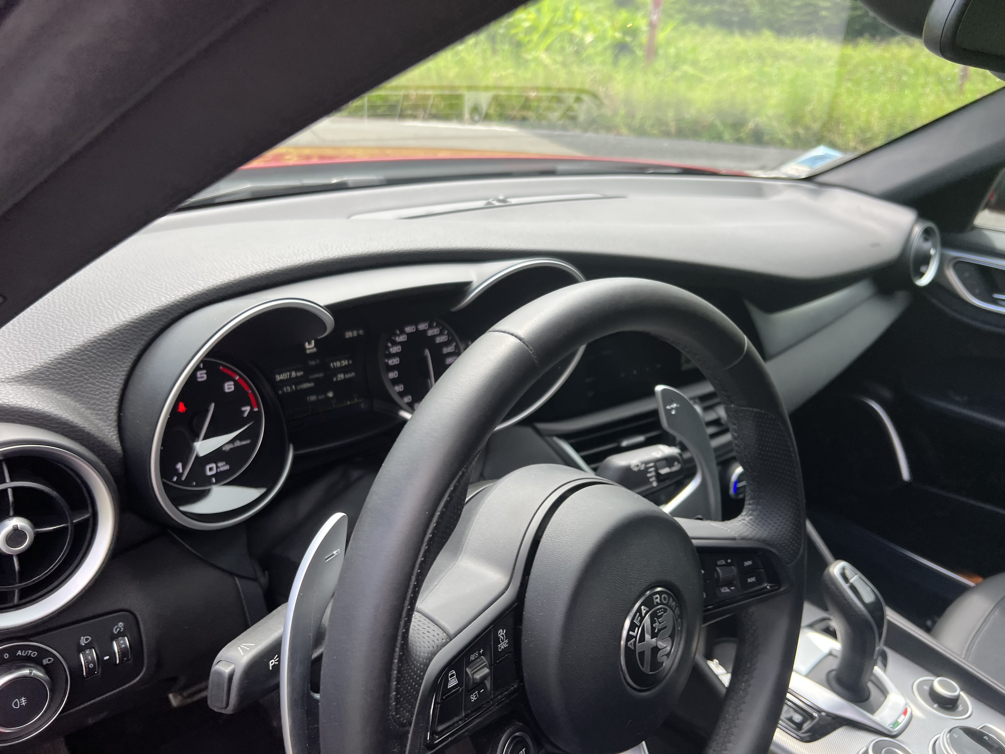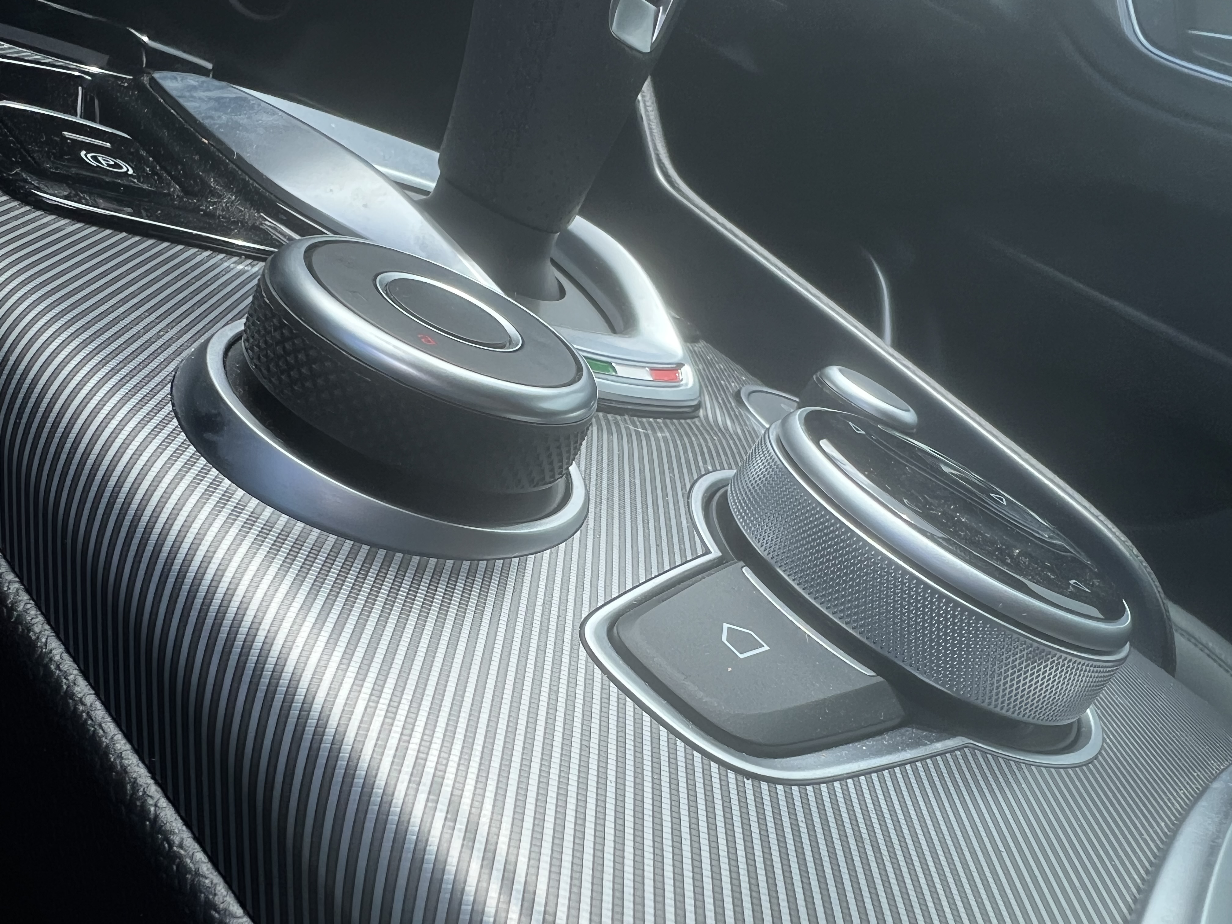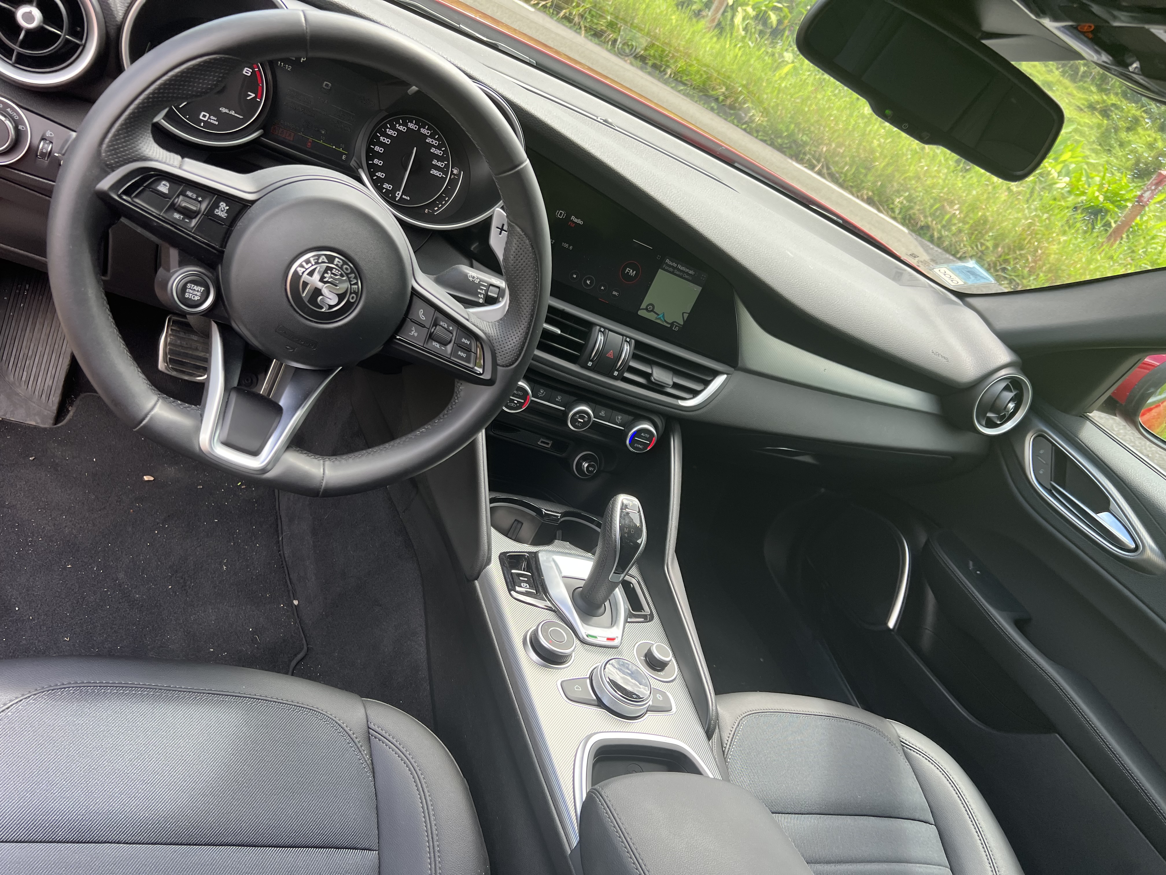 À l’intérieur, là aussi, là encore Alfa amène ses touches et innove. L’objectif est de séduire le client potentiel, lassé par les tons gris ou beiges de la concurrence. Dans la Giulia, la planche de bord peut se parer d'un brun tabac ou d'un rouge en partie basse. Assortis avec la sellerie. Le dessin est agréable. Et si la qualité des matériaux et des assemblages n'égale pas ce qui se fait chez Audi ou BMW, on n'est bien plus raffiné que le mobilier de Mercedes et sa Classe C. Cela sent le Premium sportif avec un effet cocon et une sensation de sécurité un peu comme dans son salon le soir après le job… La console centrale a été repensée pour intégrer un rangement supplémentaire, la « molette à tout faire » est toujours là et le grand écran 8.8 pouces, bénéficiant d'une interface média inédite tactile. Plus moderne, plus complet, il mériterait toutefois une meilleure intuitivité.