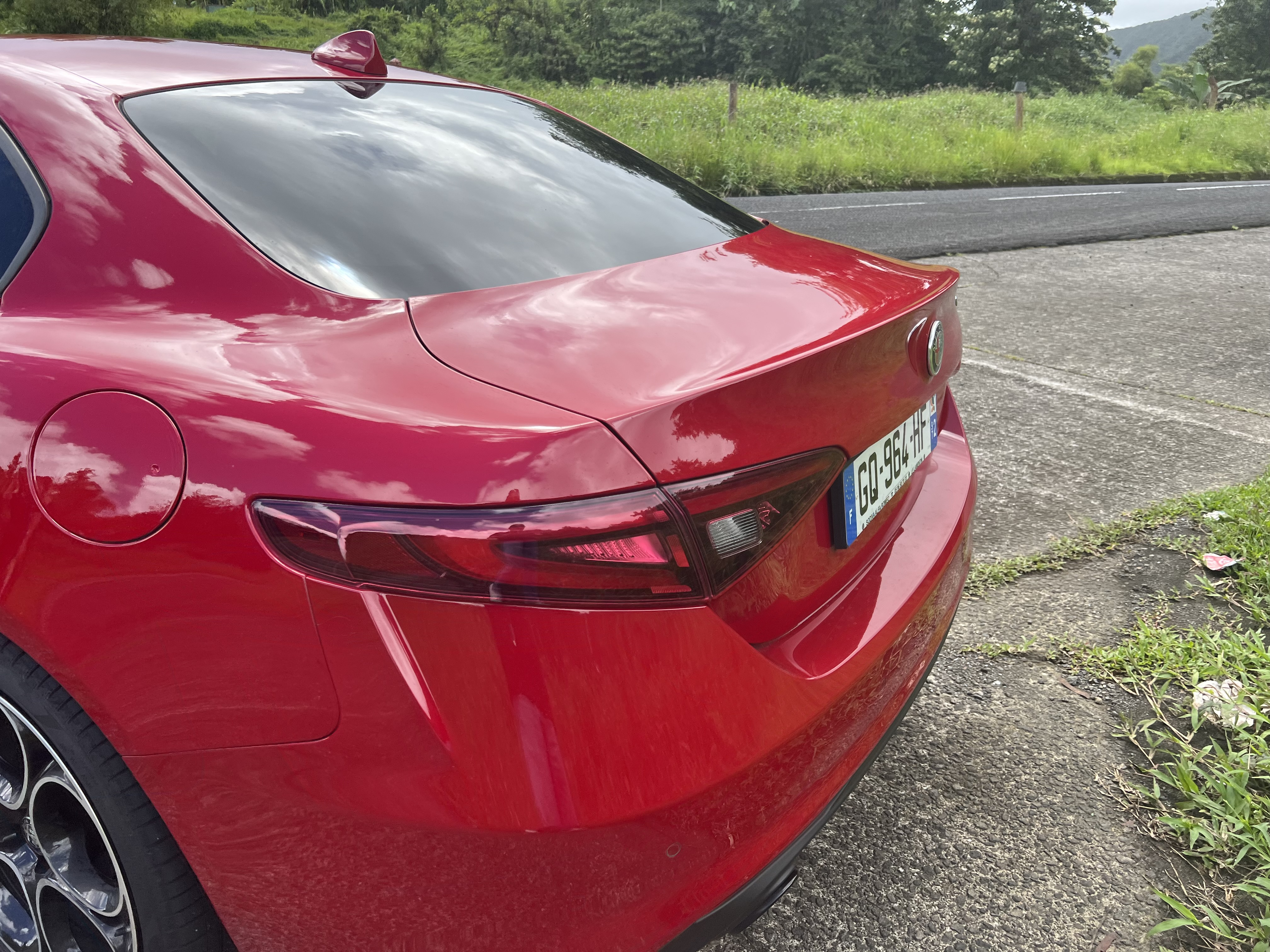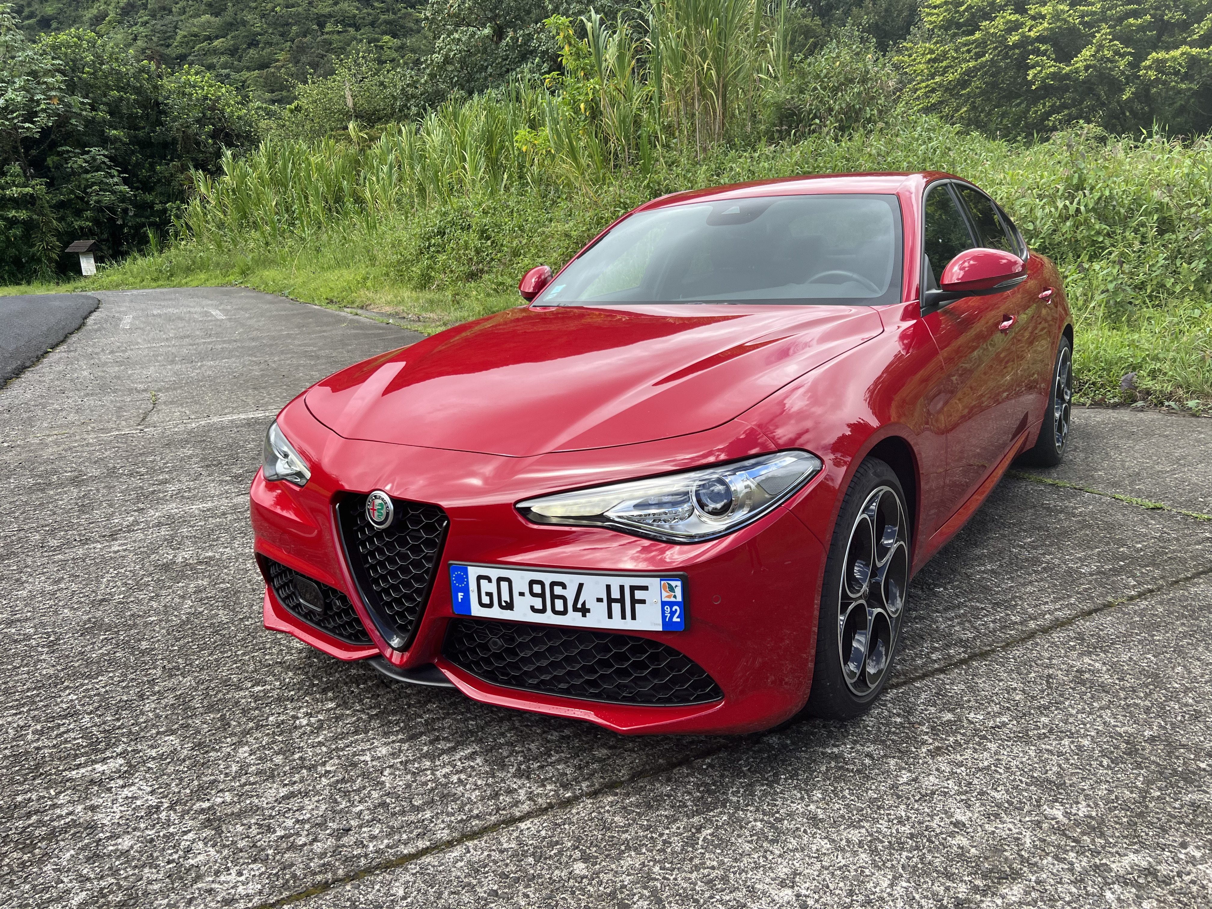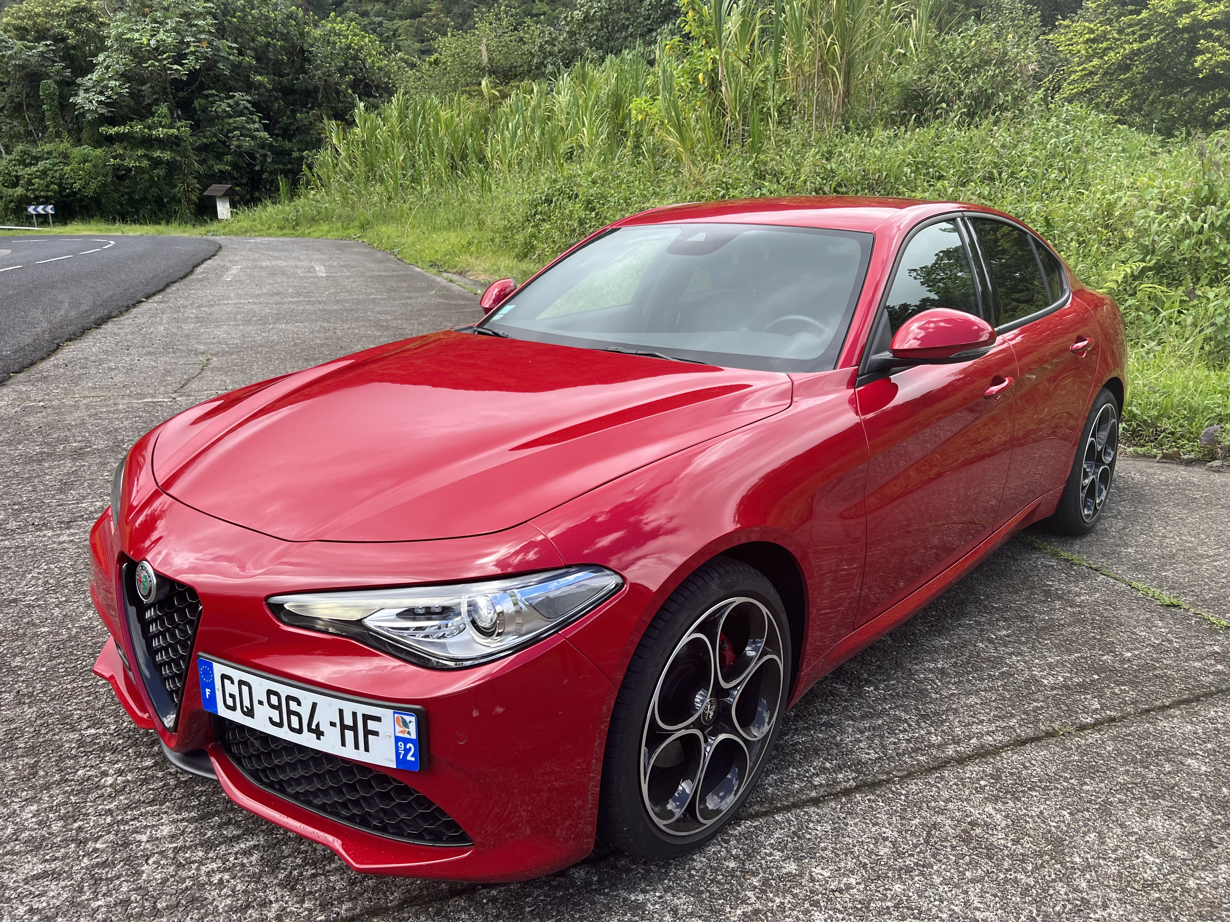 - Auréolée de multiples titres honorifiques, elle a conquis immédiatement le cœur des alfistes mais aussi de la presse internationale avant celui des clients. En ligne de mire, les premium allemandes (BMW Série 3, Mercedes Classe C et Audi A4), notamment par le biais des gestionnaires de flottes d'entreprises. Pourtant, outre la démoniaque Quadrifoglio de 280ch, on ne peut pas dire que l'offre de moteurs soit grandissime. La seule alternative proposée au V6 repose sur un 4 cylindres décliné en deux niveaux de puissance. S'agissant ici de la motorisation essence de base, c'est celle qui offre le plus large panel dans l'hexagone et en Martinique ses 4 finitions : SUPER ; SPRINT ; GIUILIA TI ! GIUILIA VELOCE…