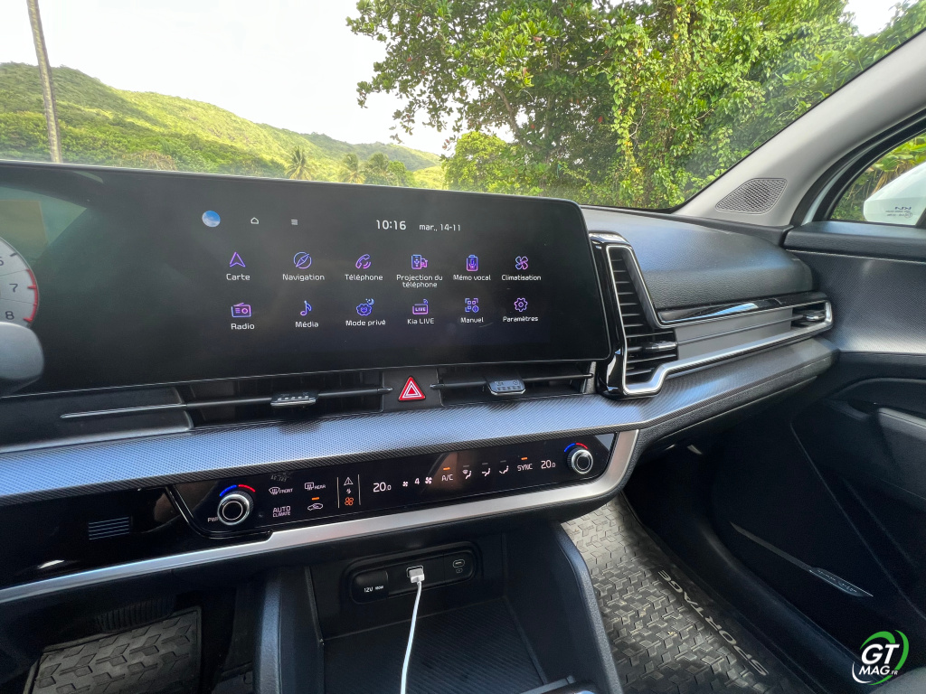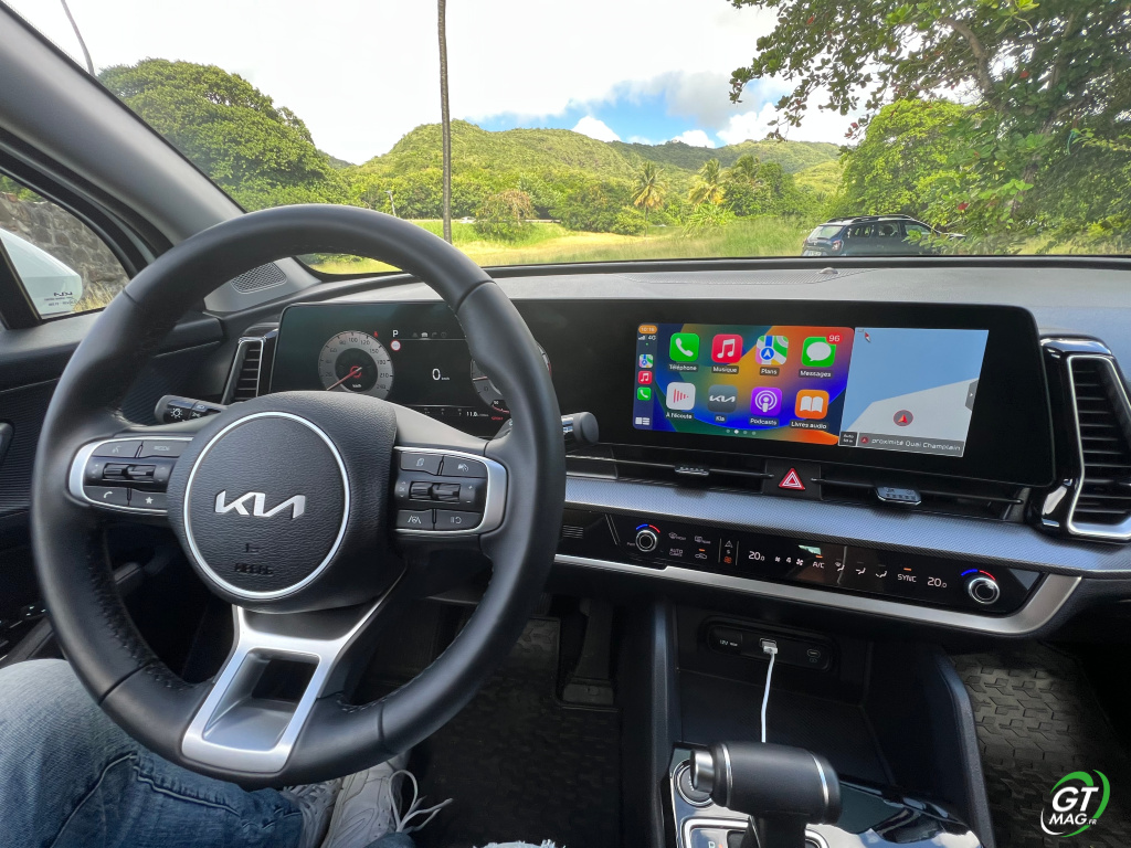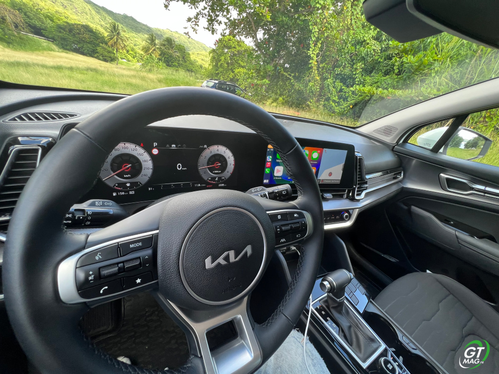 Kia monte en gamme avec son Sportage et l’habitacle semble pensé dans les moindres détails. L’atmosphère intérieure est plutôt accueillante. Les deux écrans de 12″ juxtaposés (selon les modèles) au sein d’une même dalle, la forme des aérateurs et la belle console centrale aux multiples commandes en sont les parfaits exemples. La qualité des matériaux est au rendez-vous même si on aurait apprécié un plastique plus élaboré pour les zones de contact de la console centrale situées précisément au niveau des jambes. Forcé de constater bien agréablement que les designers et les ingénieurs de chez Kia ont fait des efforts notables en matière de finition et d’assemblage. Oui, le Kia Sportage en version ACTIVE en Martinique est un SUV qui est beau de l'intérieur, de l'extérieur et que l'on a envie de conduire. Les finitions proposées : Motion, Active notre essai, Design, GT Line, ou encore GT Line Premium...