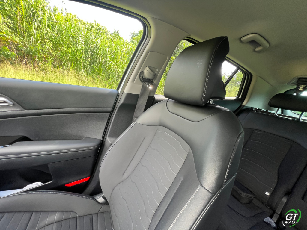 La finition Active que j'essaye pour vous propose, en plus de la finition Motion, l’aide au maintien dans la file (LKA), la reconnaissance des panneaux de limitation de vitesse (ILSW), la gestion intelligente des feux de route (HBA), l’alerte de vigilance du conducteur (DAW). Côté design extérieur, cette finition propose les feux arrière à LED, les projecteurs antibrouillard avant, les jantes en alliage 17 pouces, les rails de toit finition aluminium satiné, les rétroviseurs extérieurs avec répétiteurs de clignotants, la grille de calandre noir laqué, le volant et pommeau de levier de vitesses gainés cuir, des inserts finition aluminium satiné et un support lombaire conducteur à réglage électrique. L’habitacle quant à lui se dote de la climatisation automatique bi-zone, d’un écran tactile 7’’, de radars de parking arrière, d’un rétroviseur intérieur anti-éblouissement, d’un capteur de pluie, de rétroviseurs extérieurs rabattables électriquement, d’un frein de parking électrique (DCT7 uniquement)....