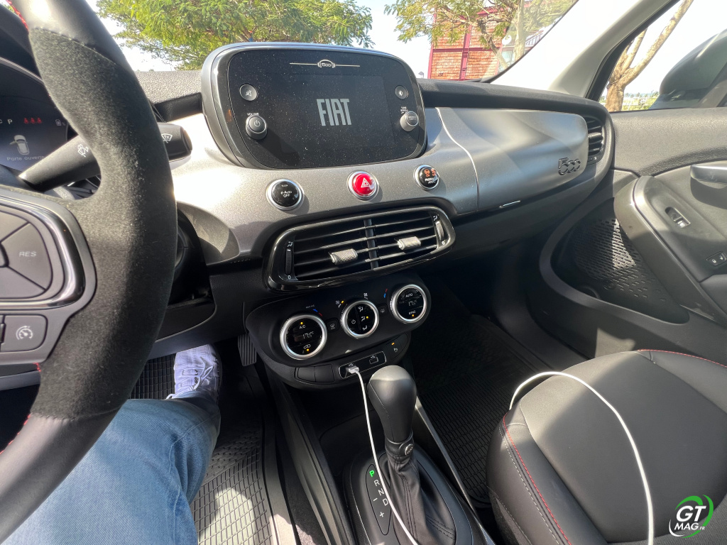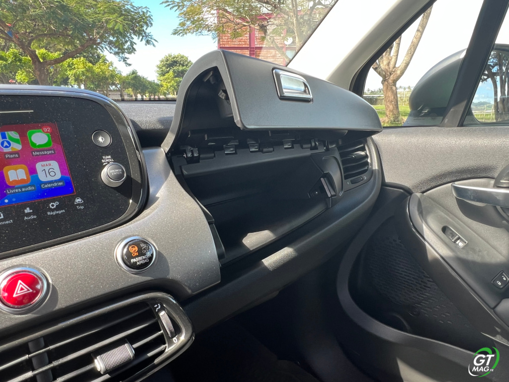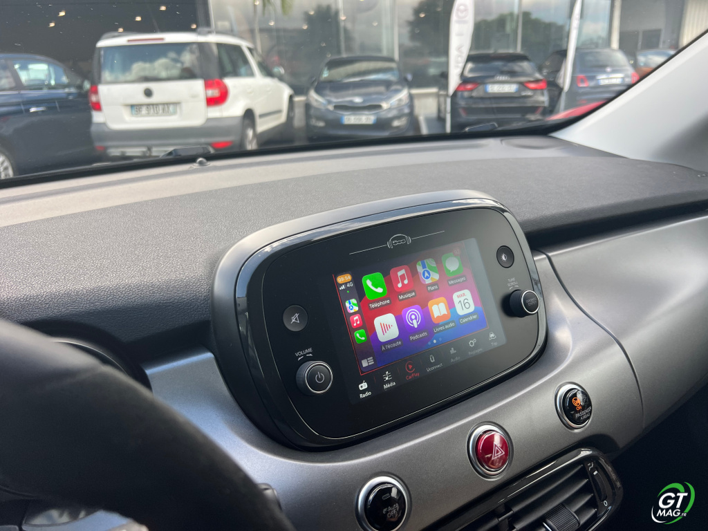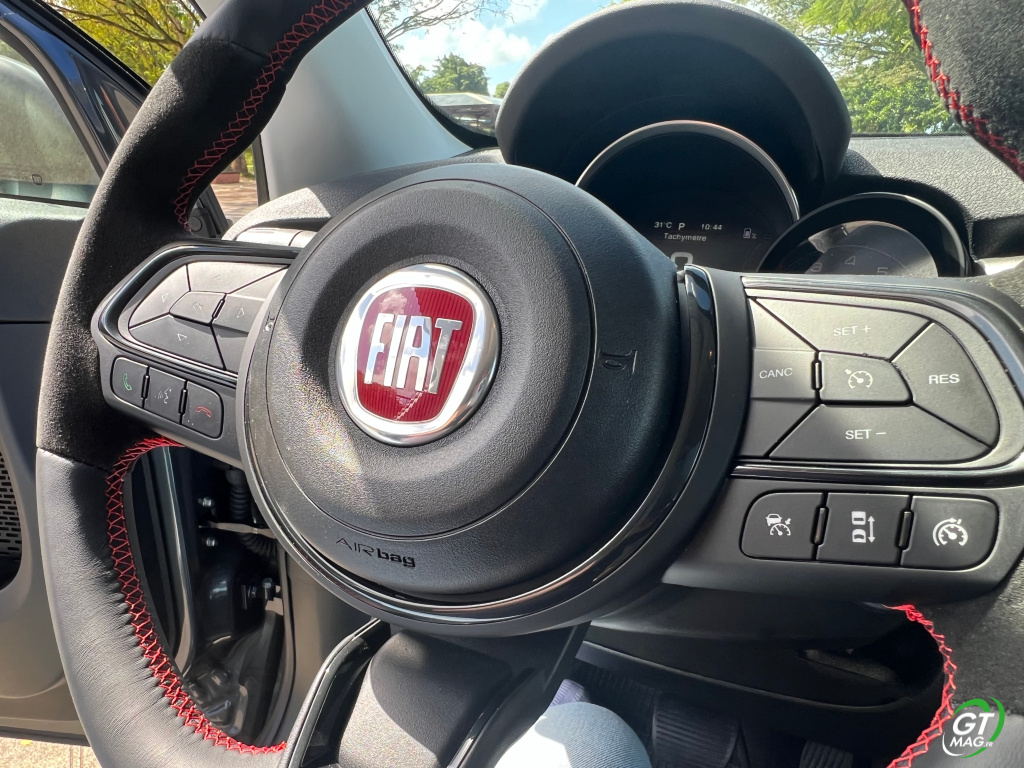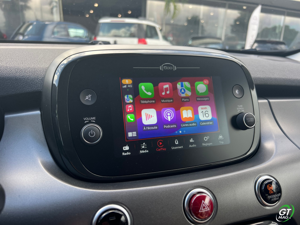 On retrouve les bases de la 500X mais Fiat propose à ses aficionados un volant sportif, des surpiqures rouges sur les sièges, un pommeau de vitesses en aluminium pour la version manuelle, quelques logos ici et là ainsi qu’un tableau de bord exclusif avec une finition « titane ». Pour le côté communication la Fiat 500X sport aligne un écran tactile de 7 pouces plus petit que sur la version tout électrique et deux prises USB qui permettent de connecter des appareils sous la console centrale.