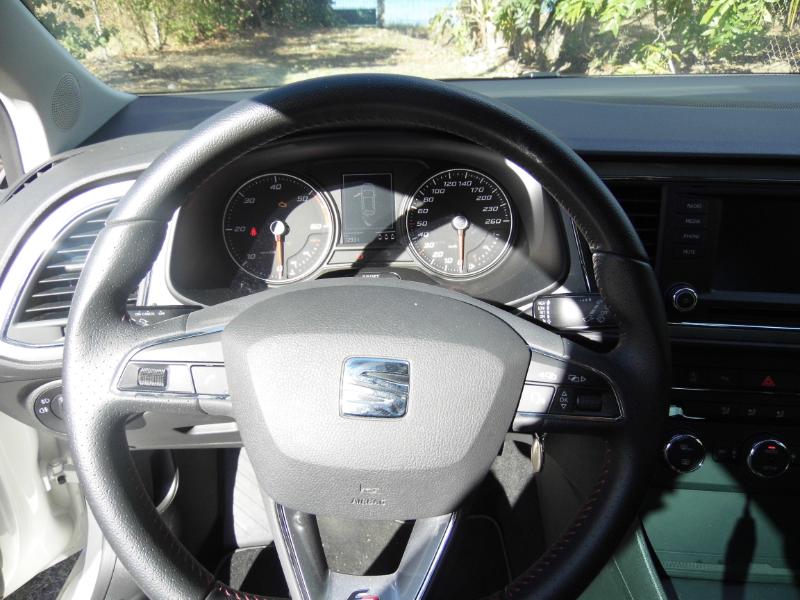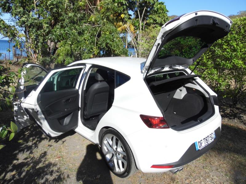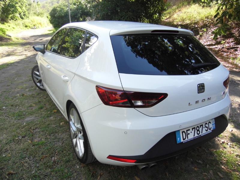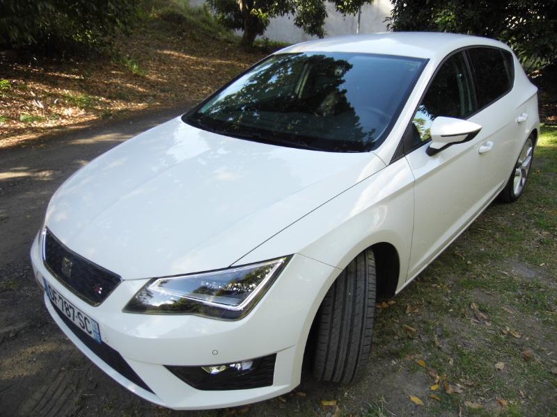 à côté de chezAutosgm nous nous rappelons quela Leon déclinée dans plusieurs carrosseries, notamment avec uncoupé Leon SC inédit et un break ST. La dernière née de Martorell est plus ambitieuse que jamais, et elle arrive sur le devant de la scène avec les moyens de ses ambitions. Un style en rupture La nouvelle Seat Leon adopte un style en rupture avec celui de la précédente génération. Elle gagne en sérieux et en muscle ce qu’elle perd en originalité. Mais ses lignes demeurent nettement moins consensuelles que celles de la cousine Golf 7. Latine, la Leon revendique une nouvelle maturité. Elle reprend la recette des lignes tendues et angulaires de l’Ibiza, et conserve ainsi la saveur latino chère à Seat. Cette version FR est la plus sportive et la mieux équipée de la gamme, et peut même recevoir des optiques Full LED dignesd’une nouvelle Audi A3 ! Cette signature lumineuse apporte elle aussi de la classe qu’on ne connaissait pas à l’ancienne génération de Leon. Les feux arrière sont acérés, et les rétroviseurs profilés façon concept de salon : les designers n’ont pas été bridés. Plus mâture, la nouvelle Leon semble encore faire référence à l’ancien slogan auto emocion, et on ne va pas s’en plaindre ! A conduire Cette Seat Leon 3 ne déçoit pas non plus au chapitre conduite, avec de réelles qualités routières. Partageant sa plate-forme avecles nouvelles Golf et A3, la dernière née de Martorell ne manque pas d’arguments dynamiques, notamment avec le plus puissant des moteurs diesel proposés.Ce 2.0 TDI de 184 ch couplé à une boîte manuelle à 6 rapports donne l’impression d’être un avant-goût de la version Cupra. Son équilibre est une vraie bonne surprise, et profite au maximum au plaisir de conduite. La direction est parfaitement calibrée, et apporte précision et sérénité au conducteur. Plus légère que l’ancienne Leon,la Seat Leon 3 est dotée d’un châssis plus rigide qu’auparavant, avec un toucher de route nettement plus précis. Sur la route de la trace qui manque de grip, la Leon nous a bluffé par ses performances et les réglages de son châssis. Même avec un châssis sport et des pneumatiques taille basse en 18 pouces, la Seat Leon FR réalise une belle équation entre efficacité et confort. Le couple généreux du 2.0 TDI 184 ch permet de conduire tout en souplesse, et avec une aisance qui permet de s’intégrer et de s’extirper très facilement du trafic. La boîte DSG6 reste réservée dans l’immédiat au 2.0 TDI 150, mais heureusement la boîte manuelle est bien guidée et pas désagréable à manier. A vivre Dans l’habitacle, la Seat Leon semble très germanique avec un dessin de planche de bord moderne et sobre, et une qualité perçue en progrès notamment avec un revêtement moussé pour la partie supérieure. Les plastiques employés sur les parties inférieures ne sont pas du même niveau que dans une Golf, mais la montée en gamme est déjà appréciable dans cette Leon. La console centrale met en avant un écran tactile 5 pouces pour l’ordinateur de bord, le contenu multimédia, mais aussi la navigation optionnelle. On s’y sent rapidement à l’aise et il est facile de trouver ses marques. Avec un empattement qui progresse de 58 mm par rapport à l’ancienne Leon, la nouvelle compacte ibérique gagne de la place pour les passagers arrière en espace aux jambes mais aussi en garde au toit.Comme un bonne compacte, la Leon propose aussi une contenance de coffre tout à fait honorable, de quoi conquérir le coeur des familles. La variante break ST pousse encore ses prétentions familiales. La gamme Seat Leon débute en diesel, avec le petit TDI 90 ch et la finition d’entrée de gamme Leon. Le deuxième bloc 1.6 TDI 105 est proposé avec le coeur de gamme Référence. Ce niveau d’équipement comprend déjà un écran tactile 5 pouces monochrome, la connexion USB et cartes SD, la climatisation manuelle, les 4 vitres électriques, le volant multifonctions, la banquette 2-3/1-3 et les rétroviseurs électriques. Cette version FR comme je vous le notais est la plus équipée de la gamme avec les jantes alliage 17 pouces, un système audio 8 haut-parleurs, le système Seat Drive Profile avec 4 modes, les radars avant et arrière, l’affichage de la pression des pneus, les feux de bifurcation, l’aide au démarrage en côte, les vitres arrière électriques surteintées, les feux arrière à LED, les boucliers sport, le volant sport, le pack chrome intérieur, le pack technique et les sièges sport. Rien à dire elle adore nos chauds bitumes... Pour essayer gratuitement la Seat Leon FR chez SODAUTO la Galléria appuyez ici !!!