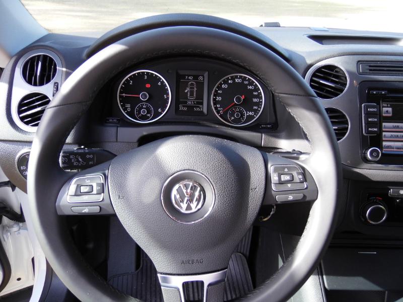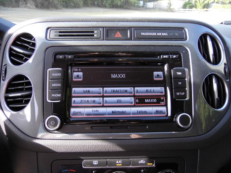 Lorsqu’on lève le pied de l’accélérateur, la transmission se met en mode « neutre » et découple la force motrice des roues. Une technique qui permet de profiter pleinement de l’élan de la voiture sans demander aucun effort au moteur. Il suffit de faire preuve d’anticipation dans la circulation pour profiter pleinement de ce système aussi simple qu’efficace. Châssis actif Le nouveau Tiguan à roues avant motrices bénéficie désormais en option du blocage de différentiel électronique XDS. En virages, cette extension de l’ESP accroît la motricité du train avant en empêchant la roue intérieure, délestée, de patiner en intervenant de manière ciblée sur le freinage. Autre nouveauté intéressante : lecontrôle dynamique du châssis DCC. Il inclut trois programmes (Normal, Sport et Confort) que l’on sélectionne via un petit bouton sur le tableau de bord. Ici encore, la technologie utilisée est aussi simple qu’efficace.Une soupape présente sur chaque amortisseur modifie le flux d’huile qui circule verticalement. On obtient donc une suspension plus ou moins ferme selon les envies ou les besoins. Pour l’avoir testé sur les routes chaotiques de la trace, je peux vous dire que ce DCC donne entière satisfaction. Un vrai tracteur Pour le reste, c’est principalement au niveau des équipements d’assistance à la conduite que le Tiguan monte en gamme. Le client peut s’offrir un détecteur de fatigue, des phares actifs (Light Assist), un système d’alerte de franchissement de ligne (Lane Assist) et un dispositif d’aide au stationnement. Ce dernier ne permet pas uniquement de faire de jolis créneaux sans les mains, mais peut aussi garer la voiture toute seule perpendiculairement à la route. Le Tiguan est également capable de tracter jusqu’à 2,5 tonnes (aucun SUV compact ne fait mieux) et son système d’attelage s’escamote en un tournemain. Cerise sur le gâteau : une caméra de recul permet de ne jamais louper son coup. Le Tiguan 2.0 TDI 110 chevaux BlueMotion Technology s’échange à 34 990 euros chezAutosgm en version deux roues motrices. Sensation au volant Le 0 à 100 est atteint en 11,9 secondes et la vitesse maximale est communiquée pour 174 km/h. Outre des performances ordinaires sur le papier, il convient de saluer l’agrément de conduite que procure ce moteur : discrétion, souplesse et sobriété sont au rendez-vous. Les 280 Nm de couple moteur suffisent à prodiguer des accélérations linéaires suffisantes. En plus de sa souplesse d’utilisation à bas régime,le bloc TDI 110 ne rechigne pas à la tâche et fait montre d’une certaine élasticité appréciable lors de notre passage en ville. Soulignons également la discrétion de ce moteur qui reste quasiment inaudible même à 90 km/h sur la rocade et tel un vrai chameau ses records de faibles consommations. Pour faire l’essai du Tiguan TDI chez Volkswagen Martinique 'Autosgm' appuyez ici ! La fiche: motorisation transmission châssis poids et mesures performances consommation infos complémentaires