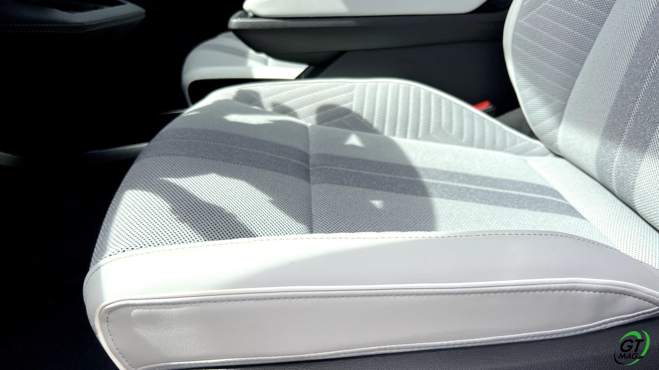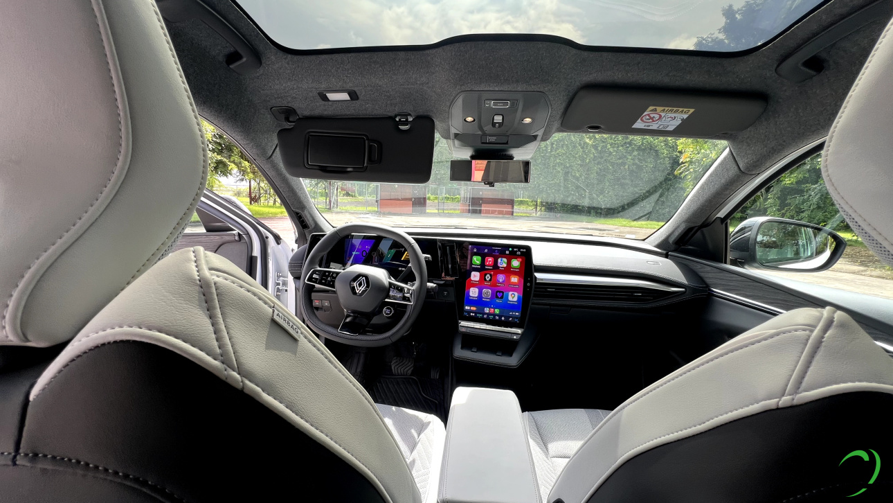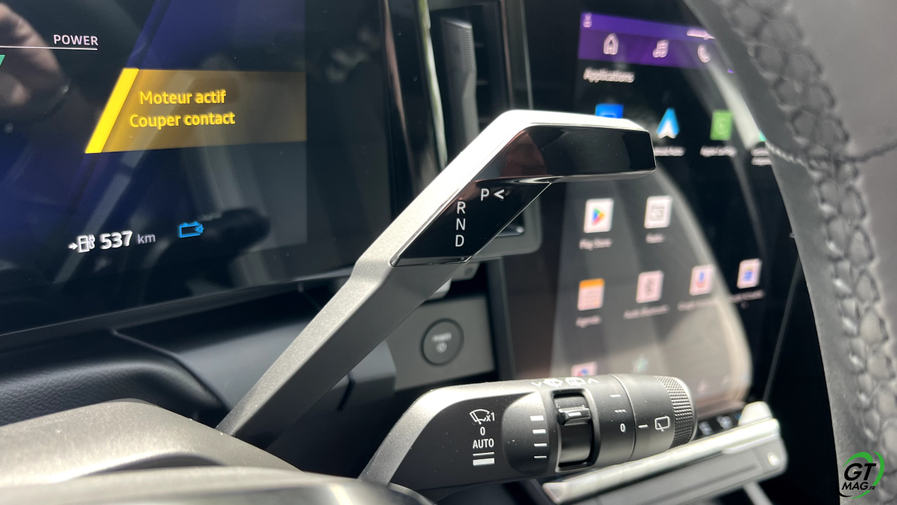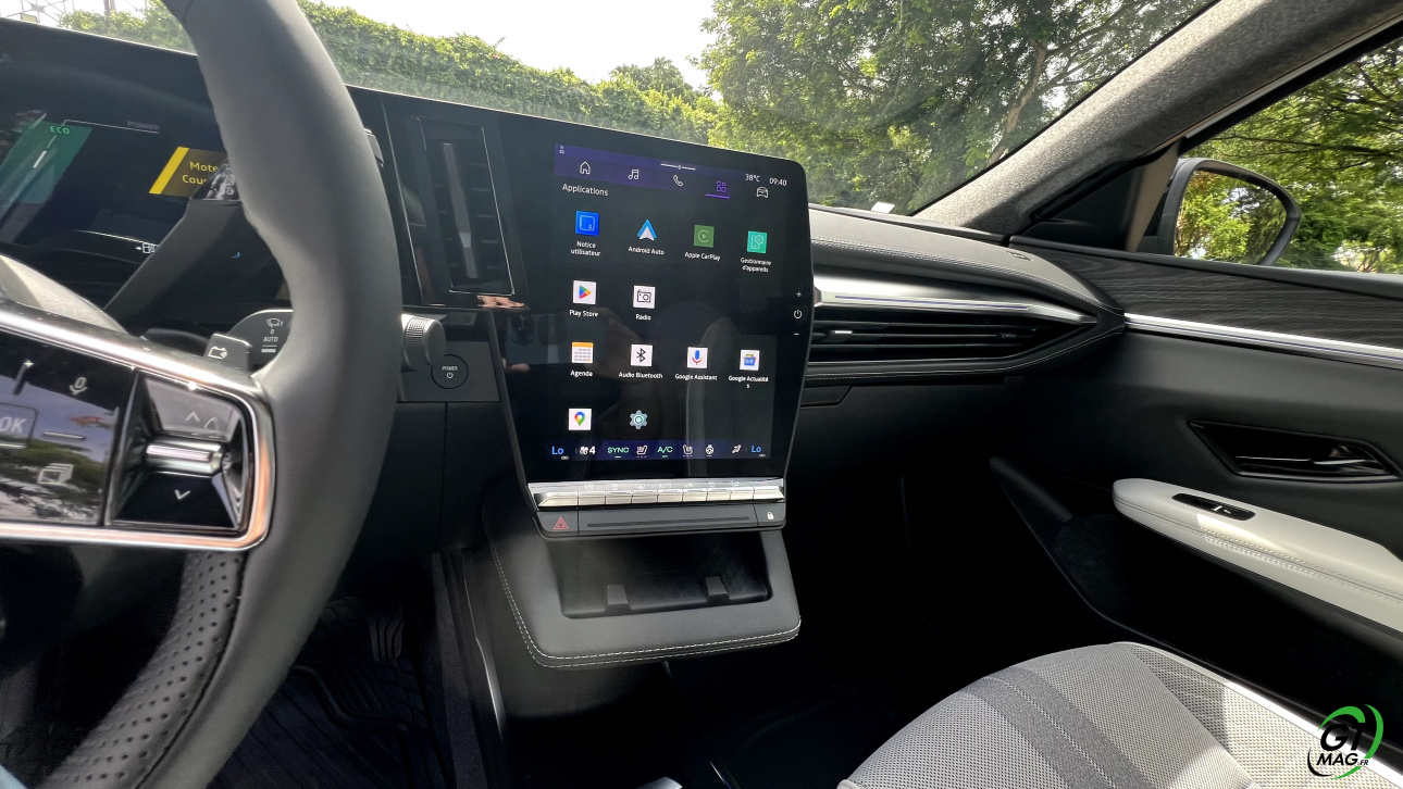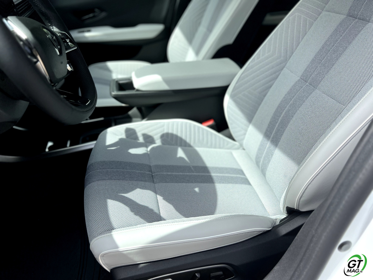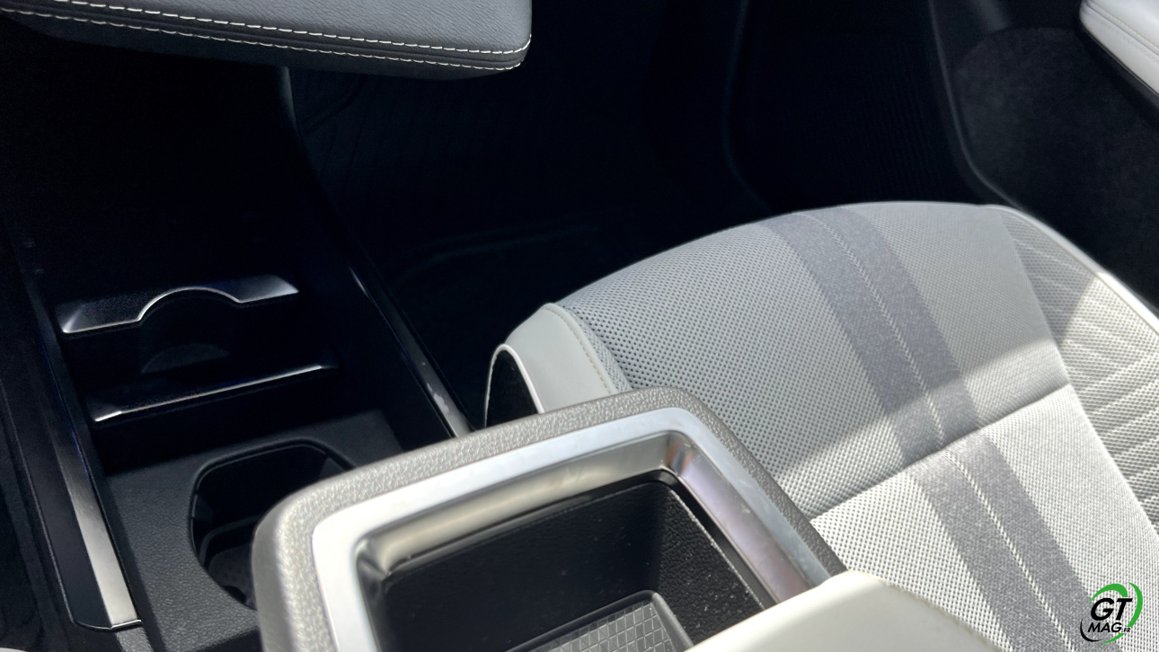 À l’intérieur, le constat est le même : la planche de bord – empruntée à la Mégane E-Tech – fait le plein de style et de technologies. Elle se compose de deux écrans de 12 », disposés en forme de L. Les équipements multimédia se commandent aisément et les rares commandes physiques permettent de contrôler facilement certaines fonctionnalités, dont la climatisation. La présentation globale se veut relativement soignée, bien que les plastiques puissent paraitre un peu durs à certains. Notons d’ailleurs que la 5e génération du Renault Scénic abandonne totalement le cuir, y compris dans ses versions haut de gamme, au profit de matériaux recyclables et recyclés. 40% de matériaux sont d’ailleurs recyclables dans le Scénic E-TECH !