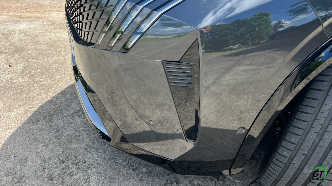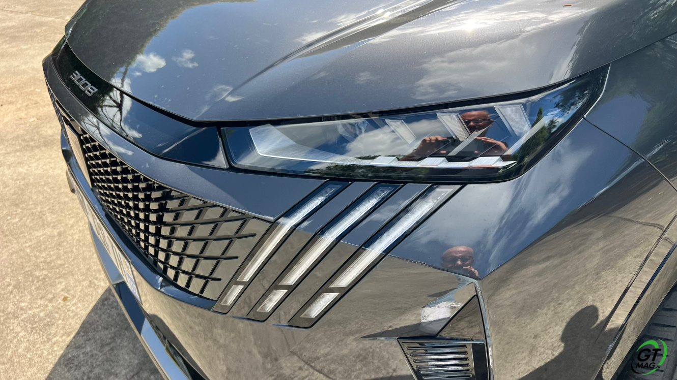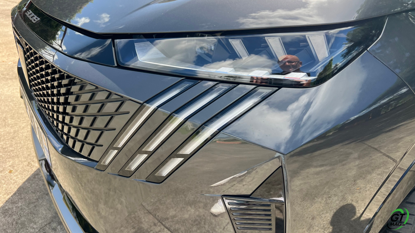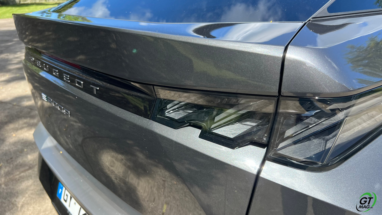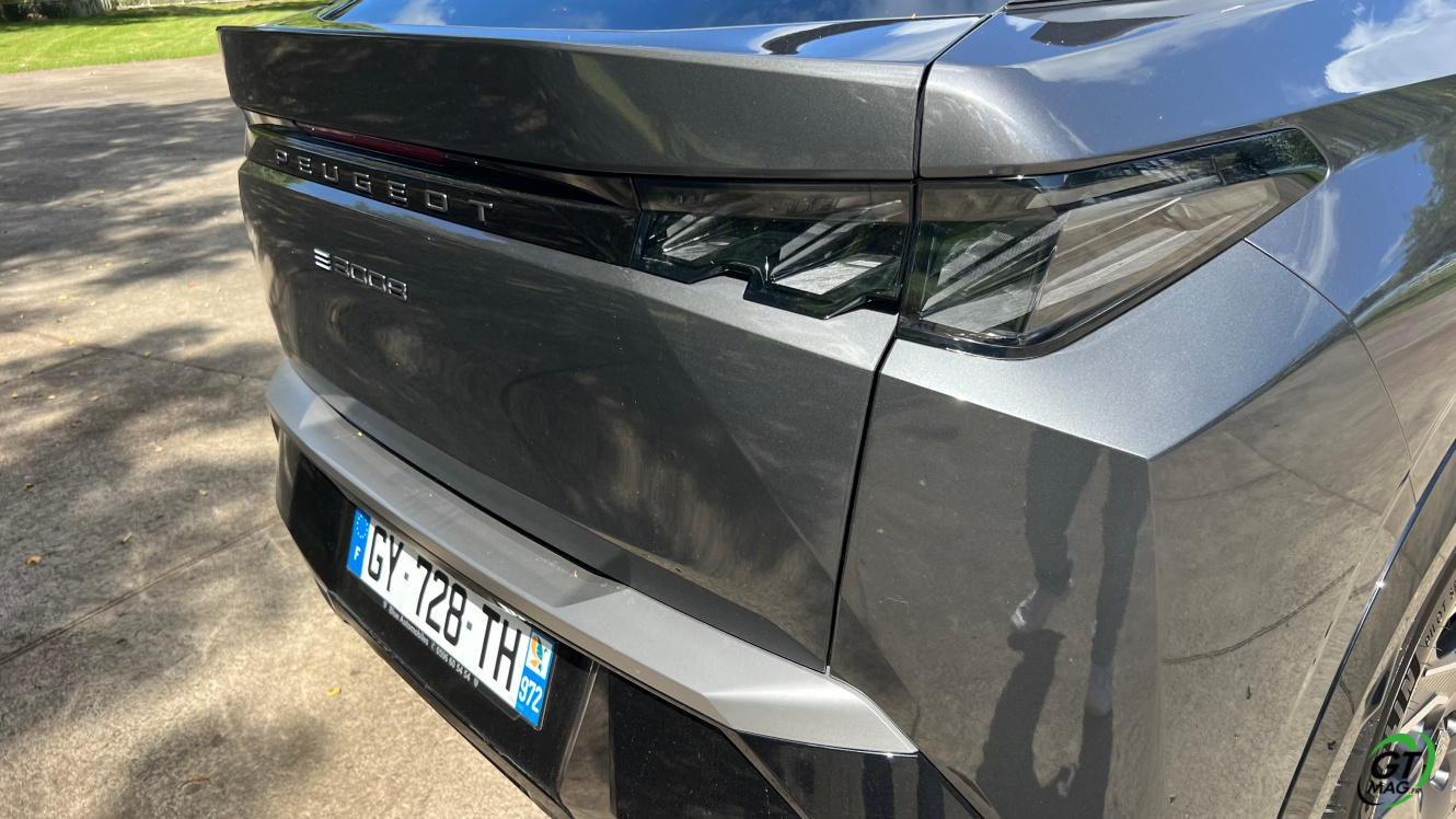 Côté esthétique justement difficile de rester indifférente ou indifférent devant cette poupe plutôt agressive… Le nouveau 3008 change tout ou presque en termes de style avec un esprit de SUV coupé. Peugeot a donc choisi un profil “fastback” plutôt dans l’air du temps pour son SUV. Les changements sont bien perceptibles à l'avant, le nouveau 3008 s’éloigne assurément de sa seconde génération. La calandre sans délimitation est imposante, comme le bouclier d'ailleurs… Les phares Matrix Led plus fins sont positionnés très haut, juste sous le capot. Les trois griffes caractéristiques des nouveaux modèles de la marque se prolongent jusqu'aux phares, dont la signature lumineuse forme désormais trois lignes. L'arrière est massif et sculpté ce qui rend ce nouveau 3008 très dynamique sachant que les designers de la marque qui malgré un véhicule plus haut et plus long sont parvenus à abaisser son Cx de 0,31 sur la précédente version, à 0,28 sur ce nouveau E-3008. On remarquera également le nouveau lettrage Peugeot sur ce nouveau e-3008.
