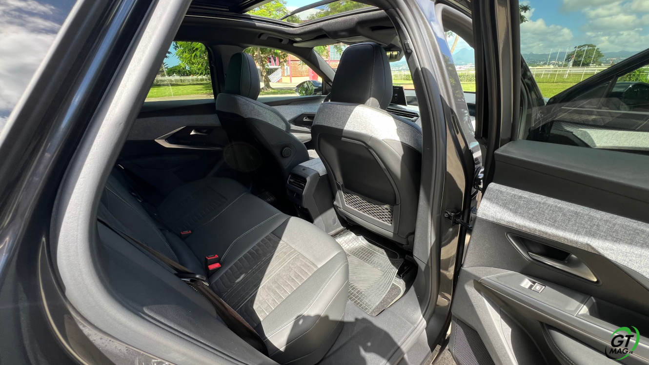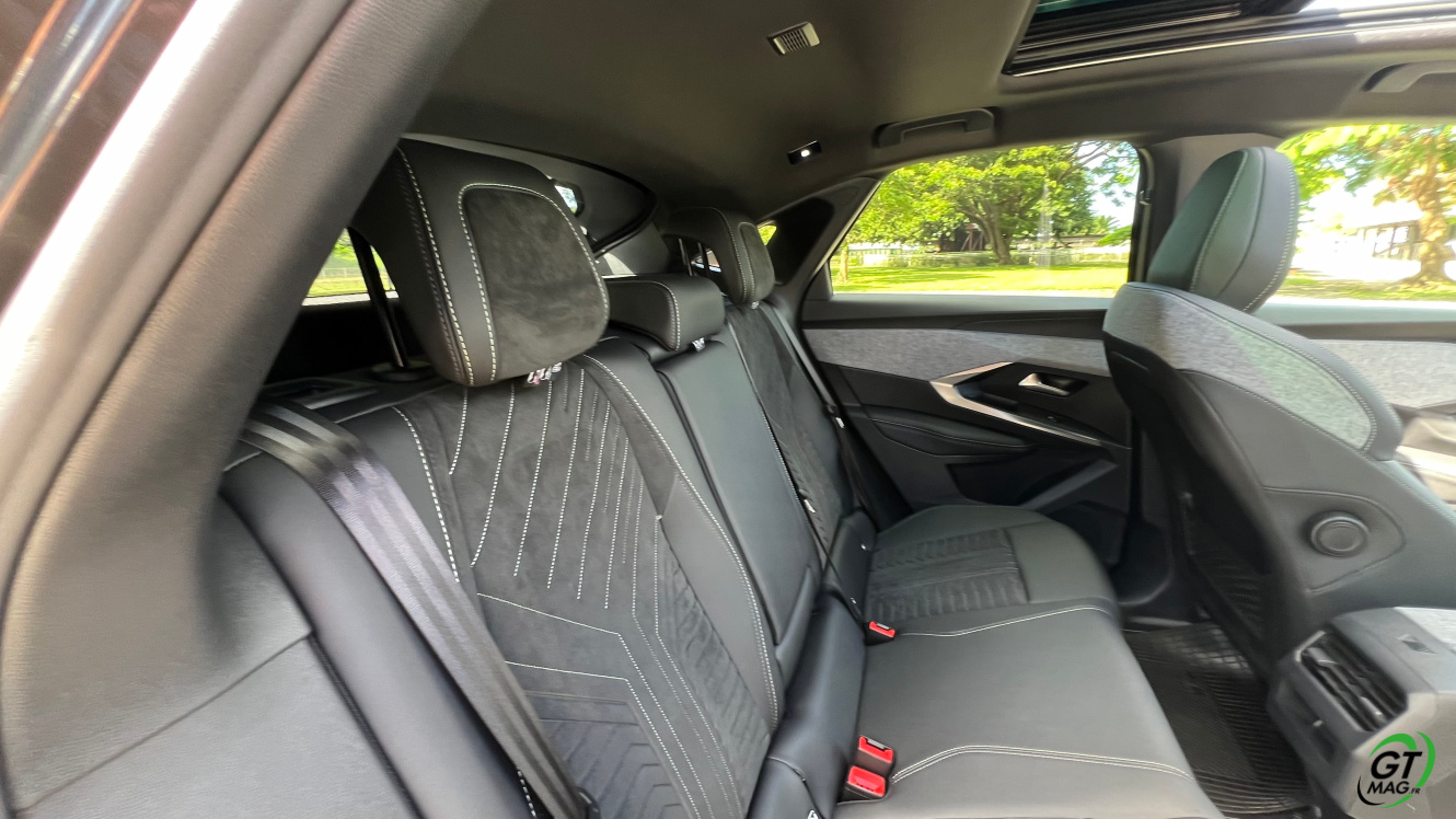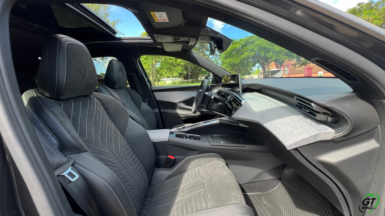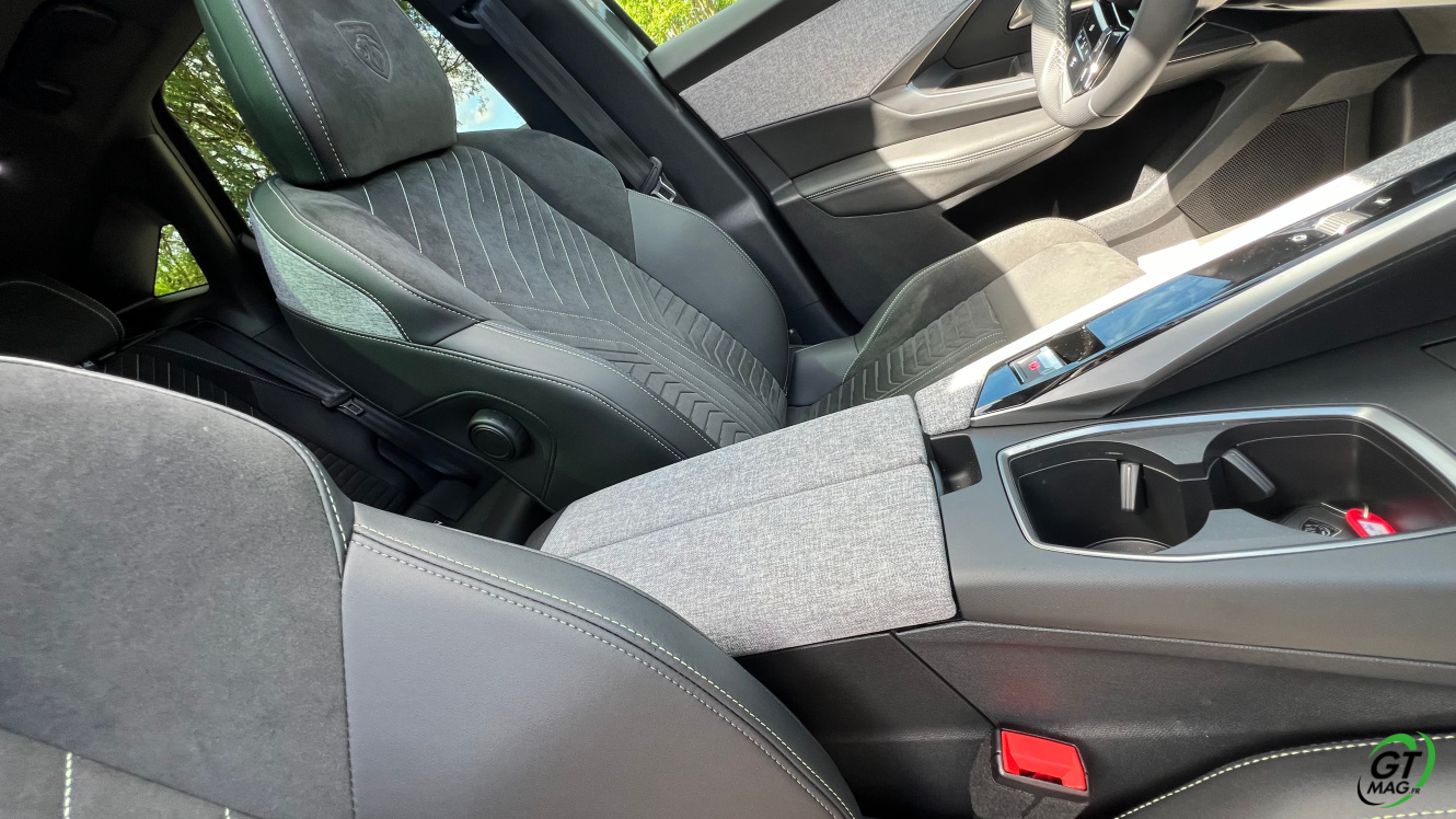 Concernant l’intérieur du 3008 hybrid, ici en finition GT, le conducteur choyé avec comme pour son passager une très bonne assise, et l'ergonomie est plutôt intuitive on peut dire qu’il assomme ses concurrents du segment. Le tissu chiné Rimini chaleureux vous accueil… Il mêle cuir Nappa et Alcantara profite d’un rembourrage idéal, d’un excellent maintien et d’appuie-tête bien disposés. Rien de surprenant, ces sièges ont la certification AGR et disposent même du maintien latéral adaptatif. Ils ont également une fonction massage avec notamment le mode Patte de chat. Bien pensé aussi : l’espace réfrigéré sous l’accoudoir, pour garder les boissons au frais.