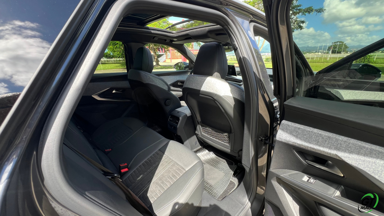 Notre modèle d’essai dispose en Martinique de l’unique motorisation électrique actuellement proposée : le “petit” moteur de 210 chevaux, synchrone à aimant permanent, agissant sur les roues avant. La batterie de type NMC, d’une capacité utile de 73 kWh a une tension de 400 V et pèse tout de même 520 kg : c’est colossal. Elle repose sur une chimie spécifique composée à 60 % de Nickel, 20 % de Manganèse et 20 % de Cobalt. La batterie de la version Grande Autonomie, à 98 kWh, aura un meilleur ratio avec respectivement 80, 10 et 10. Précisons aussi que le Peugeot 3008 III est entièrement fabriqué en France, dans l’usine de Sochaux. Actuellement, les batteries sont produites par le groupe chinois BYD. Il est prévu de rapatrier la production en France dès l’année 2025.