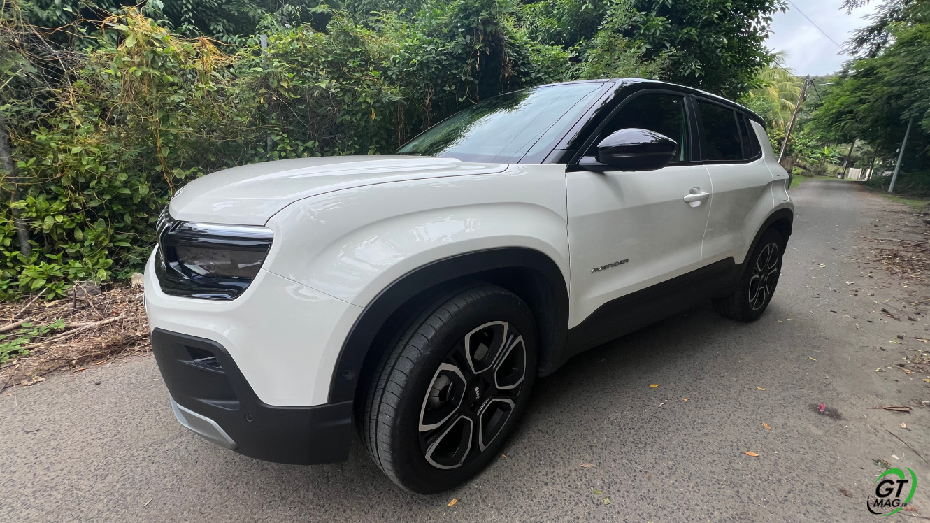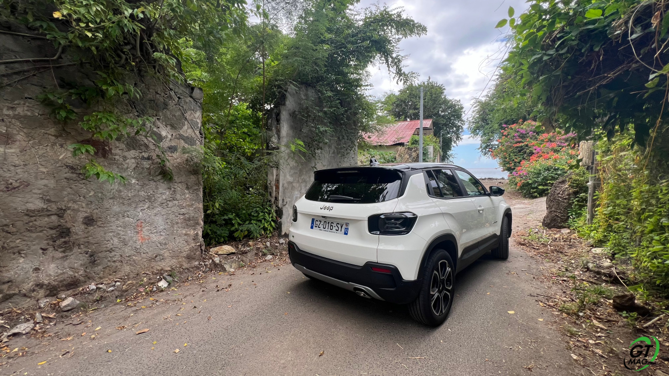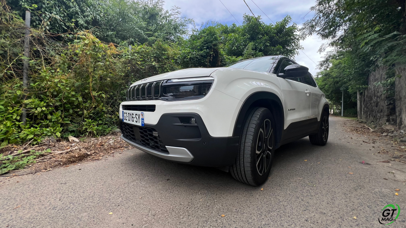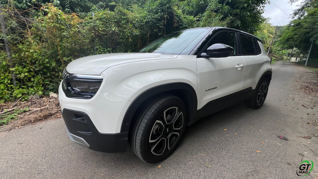 Avec ses accents de super-héros, le plus petit représentant de la gamme adoucit ses angles et peaufine des airs de citadins prêt pour de grandes balades dans le Nord de notre île par exemple… je retrouve sa calandre verticale à sept barrettes et ses élargisseurs d'aile qui lui sied à ravir et lui conserve un petit air de baroudeur. Avec 4,08 m en longueur, l'Avenger est un SUV de poche très à l'aise en ville de fait, surtout lorsqu'il est doté de la motorisation électrique avec laquelle il a été lancé en janvier 2023 rappelons-le.