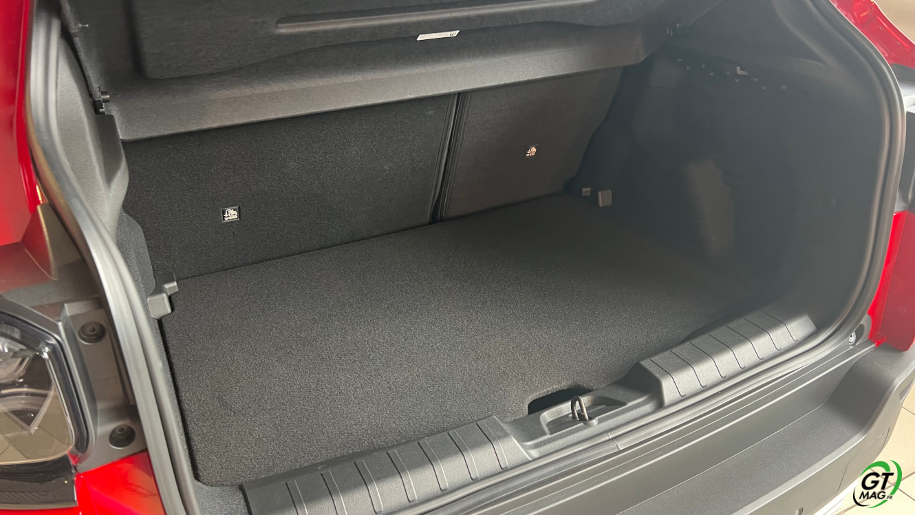 A l’intérieur, la présentation de la planche de bord est agréable même si les matériaux en plastique sont de qualité moyenne, mais l’assemblage est correct. L’écran central, tactile, est parfaitement lisible et clair. L ’affichage du compteur propose plusieurs variantes dont un compte-tour. À l’avant, on dispose de nombreux rangements,  devant le passager avec une grande boîte à gants, des rangements sont également disponible  à la base de la console centrale, entre les sièges. A droite du conducteur, on trouve une petite étagère transversale pratique pour poser les objets du quotidien. L’arrière offre un confort correct aux passagers mais pour les grands gabarits, il manque un peu d’espace pour les jambes. Le coffre contient 380 l dans la moyenne de la catégorie et 1 275 l quand les dossiers sont rabattus, sans obtenir un plancher vraiment plat.