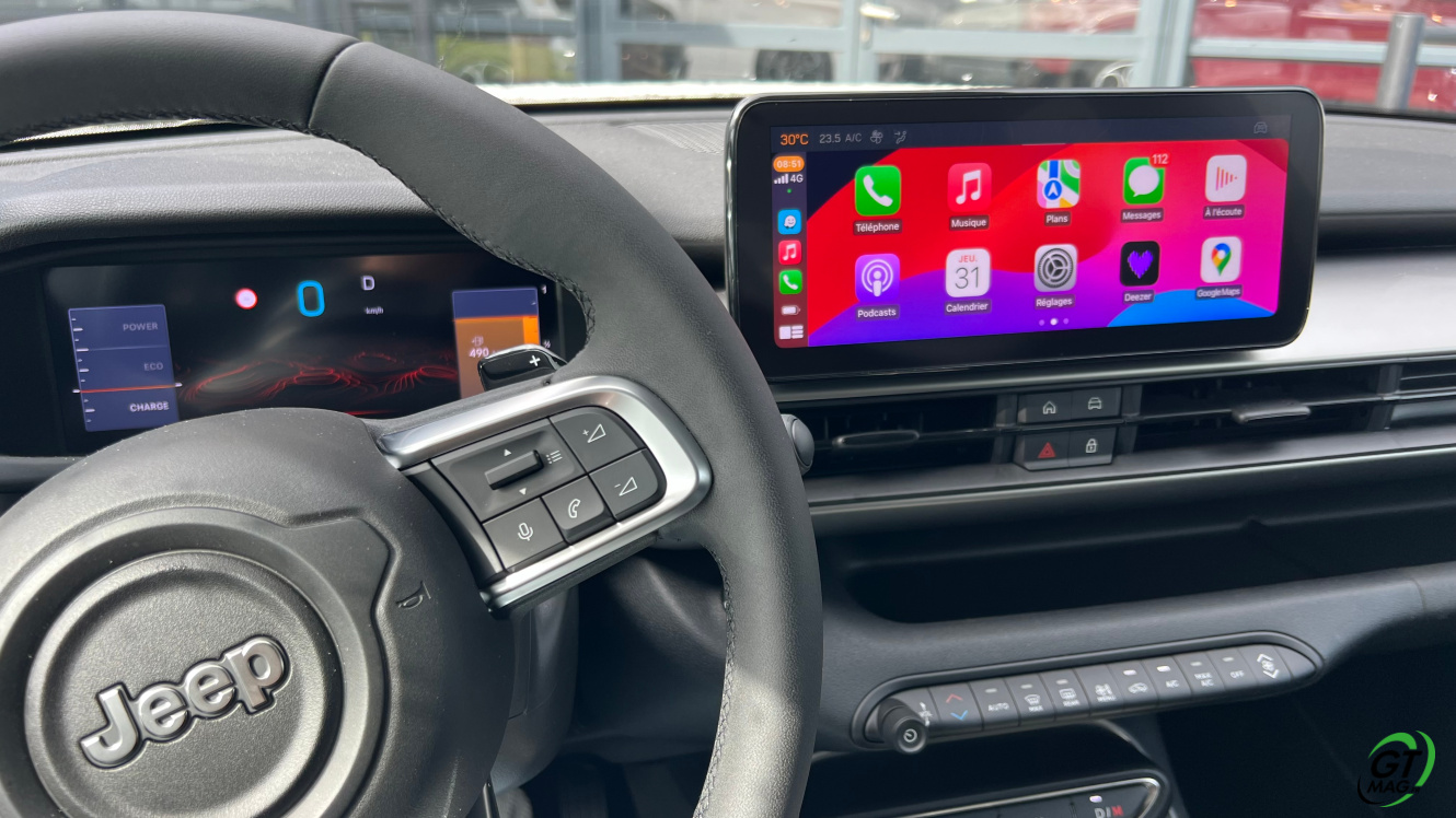Trois versions seront proposées : Longitude, Altitude et Summit (Notre essai de ce matin…), intégrant des jantes alliage allant de 16 à 18 pouces, un régulateur de vitesse adaptatif avec fonction Stop&Go, le freinage d’urgence, reconnaissance des panneaux de signalisation, l’alerte de franchissement de ligne, le démarrage sans clé, le chargeur sans fil, la surveillance des angles morts, la caméra de recul 180°, les radars de stationnement à 360°, la commande automatique des feux de route, les rétroviseurs rabattables électriquement ou encore le hayon électrique mains libres et la recharge par induction. Le Jeep Avenger e-Hybrid intègre trois modes de conduite Eco, Normal et Sport ainsi que l’assistance à la descente et le contrôle de traction en fonction des terrains Mud, Snow et Sand.